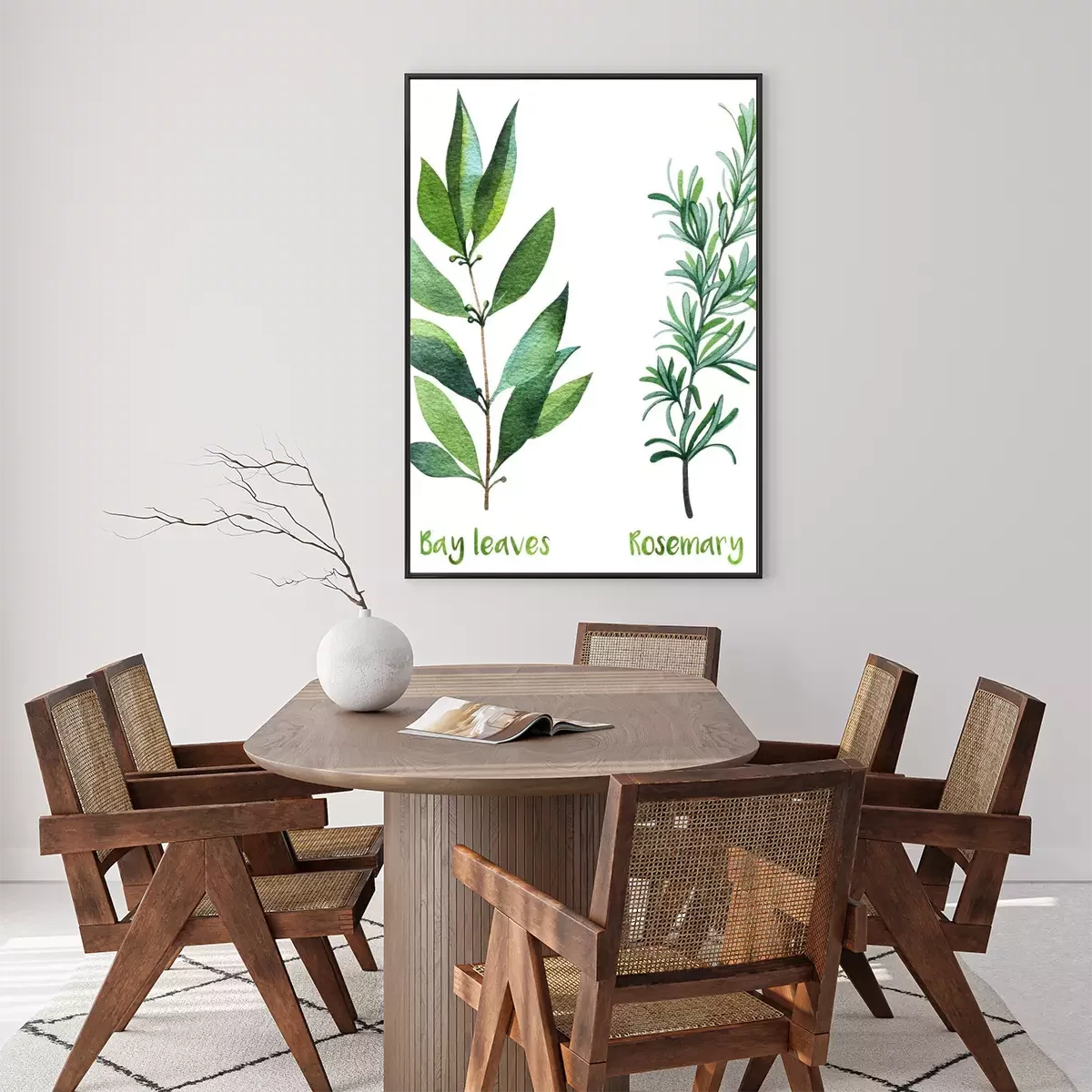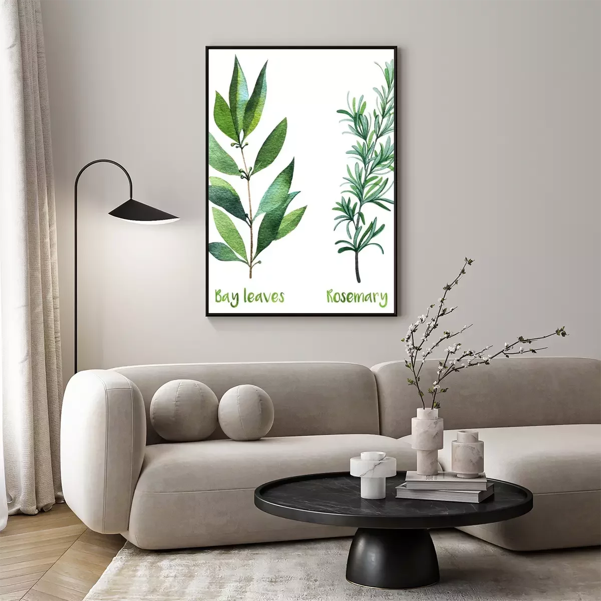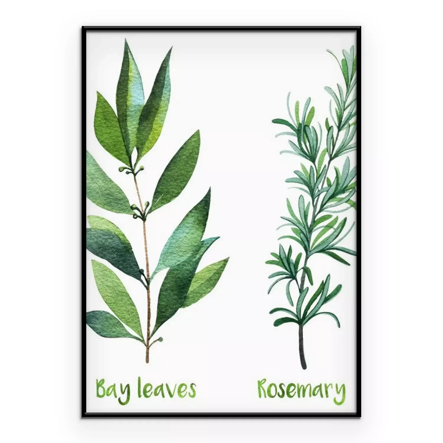 Poster: Rozemarijn en laurierblaadjes in aquarel