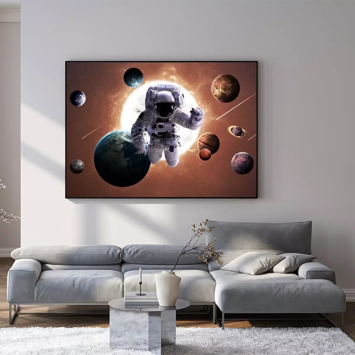 Kosmische ruimte 3d astronaut op de achtergrond van de planeet