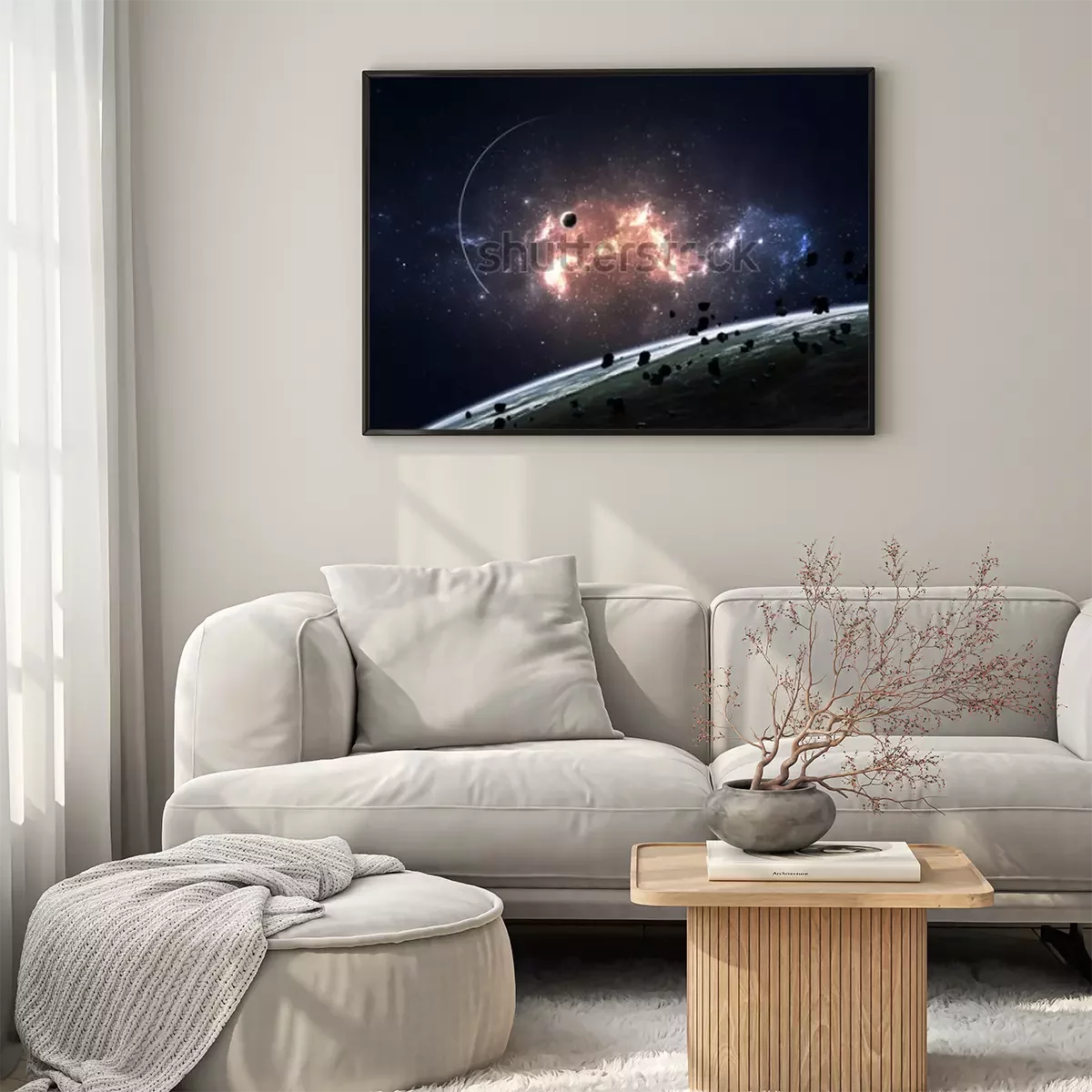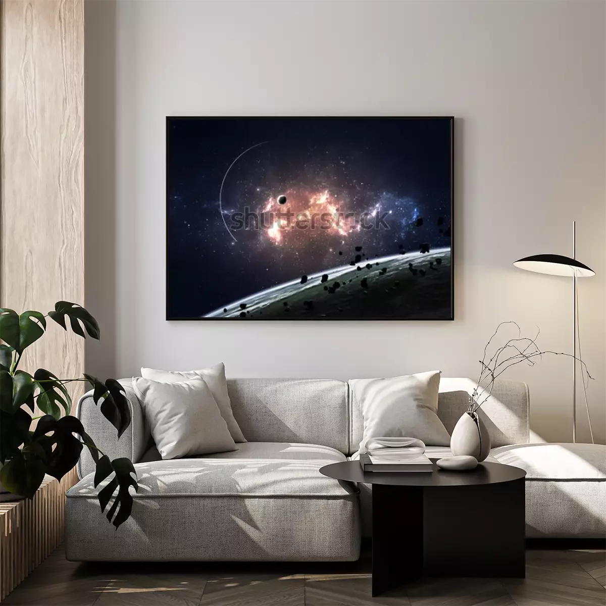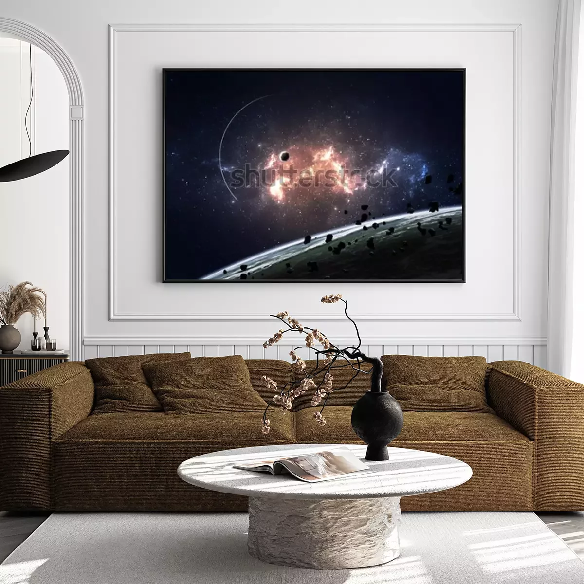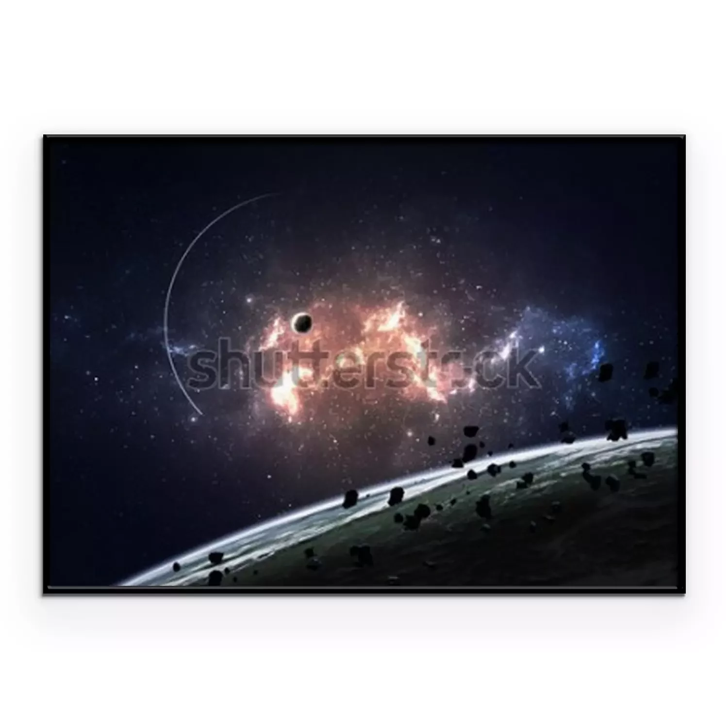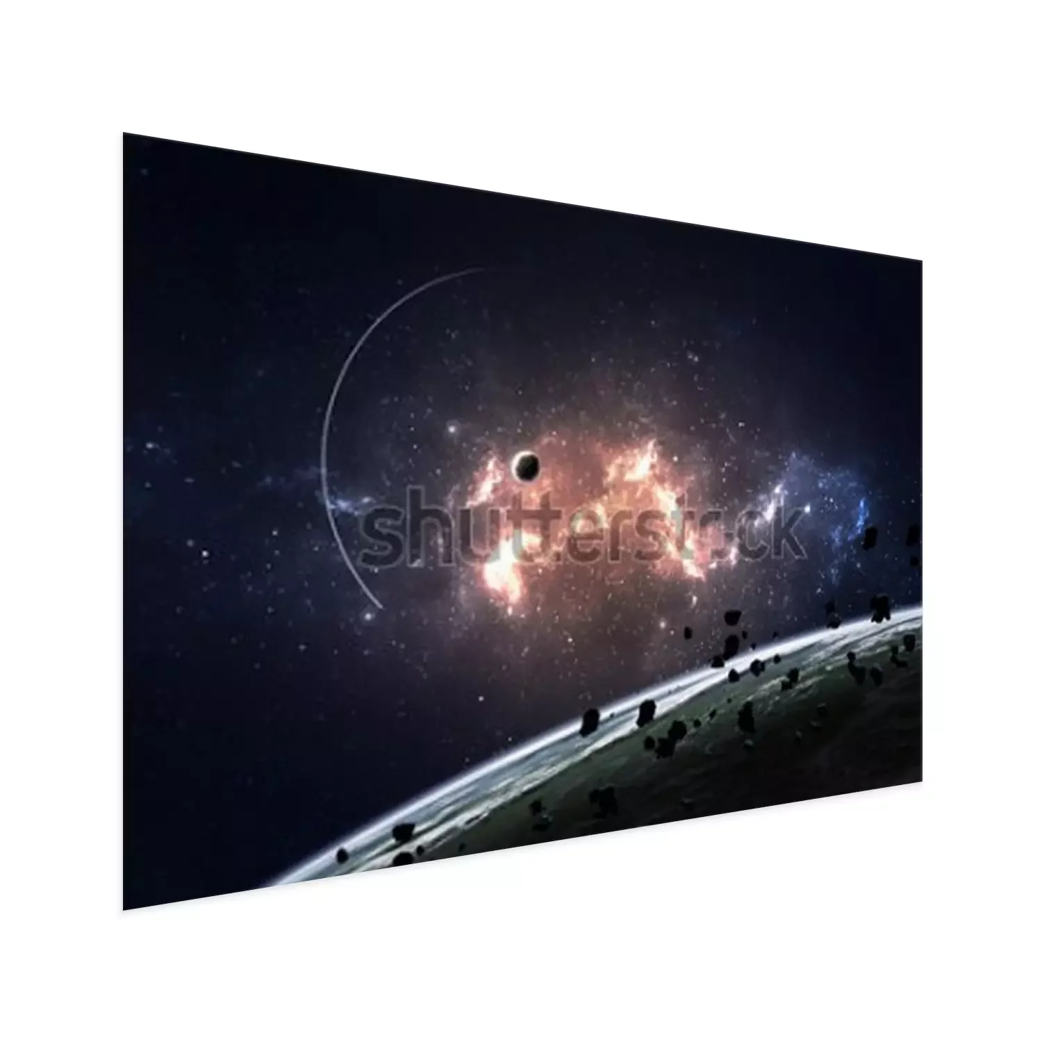 Poster: Ruimte vol sterrenstelsels en asteroïden