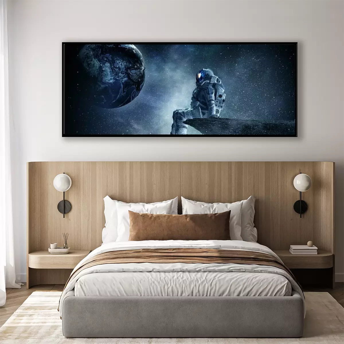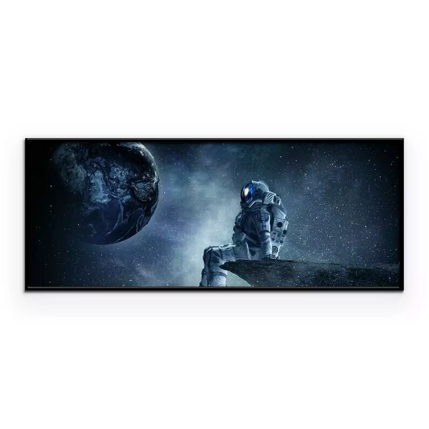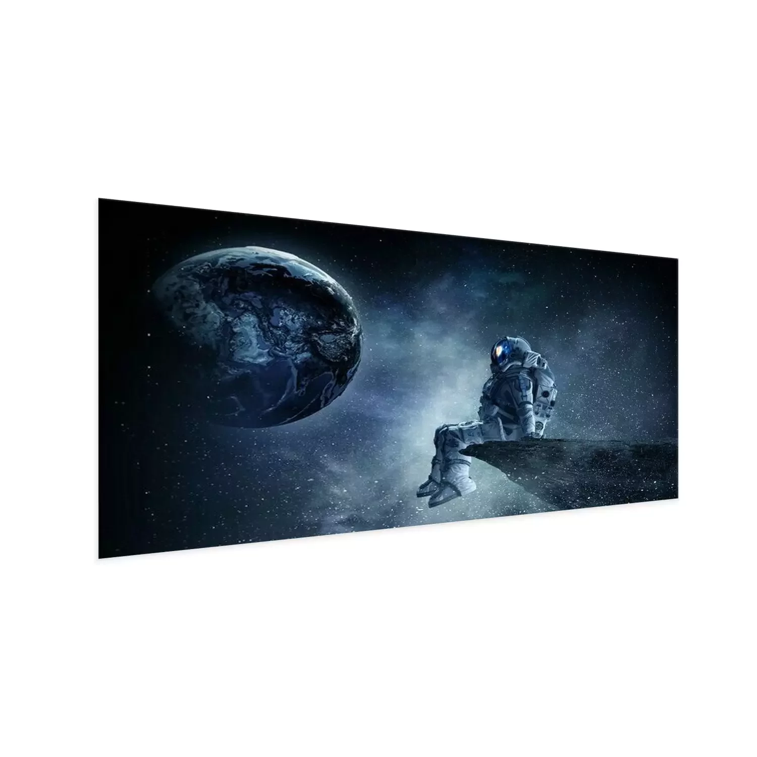 Poster Ruimtevaarder op rotsrand. Gemengde media