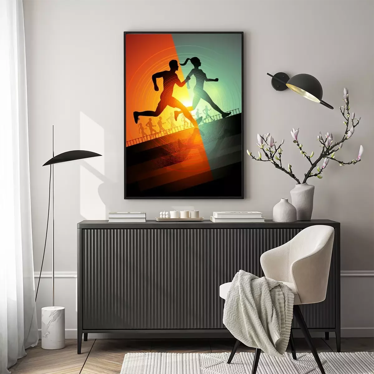 Deze posters zijn gedrukt in zeer hoge resolutie (1440 dpi) op papier van uitstekende kwaliteit. Het gebruik van HP Latex-technologie zorgt voor jarenlang levendige kleuren die bestand zijn tegen de schadelijke effecten van UV-straling. Posters zien er geweldig uit in aluminium lijsten met een plexiglas plaat, wat het een elegant karakter geeft. Premium posters worden gedrukt op halfglanzend papier.
