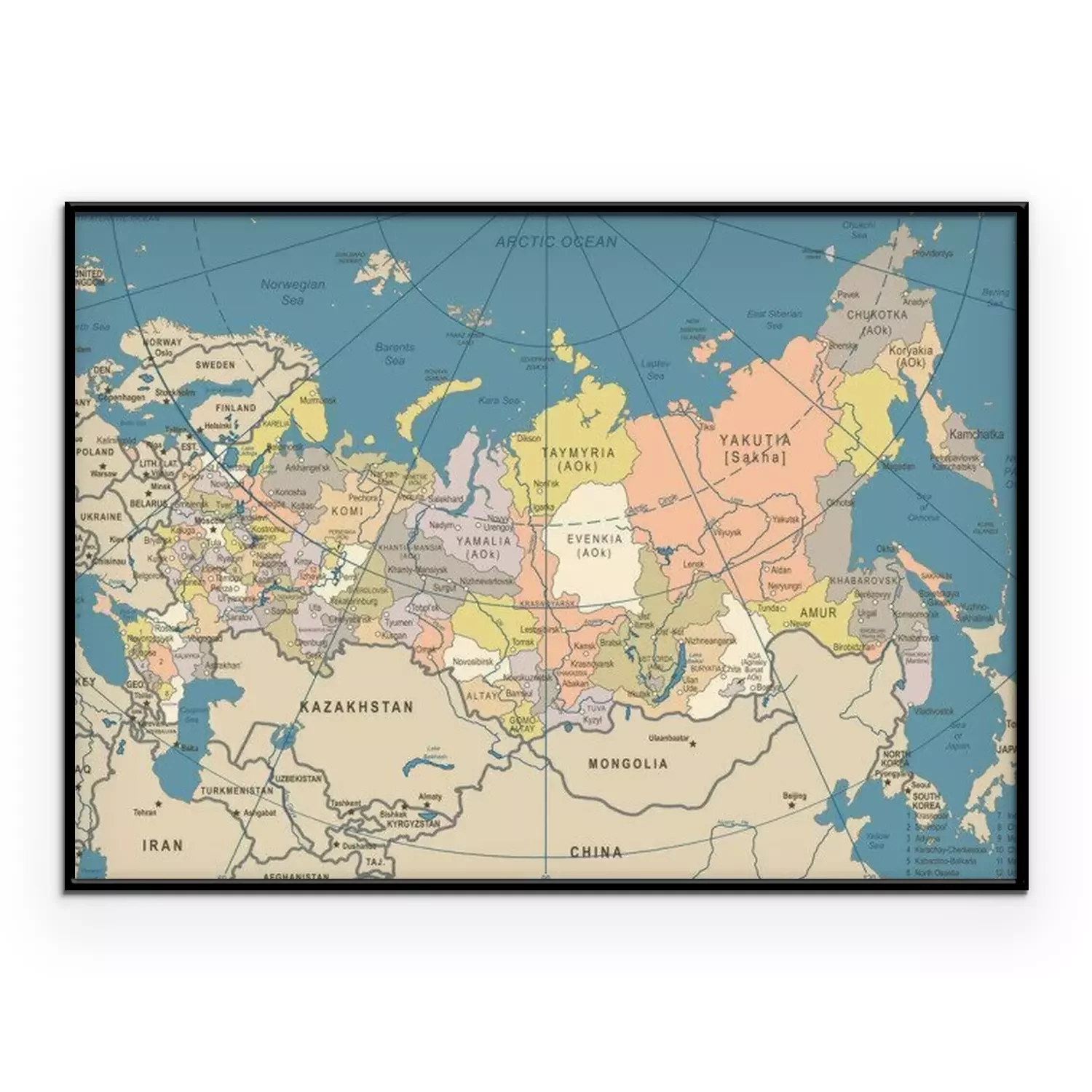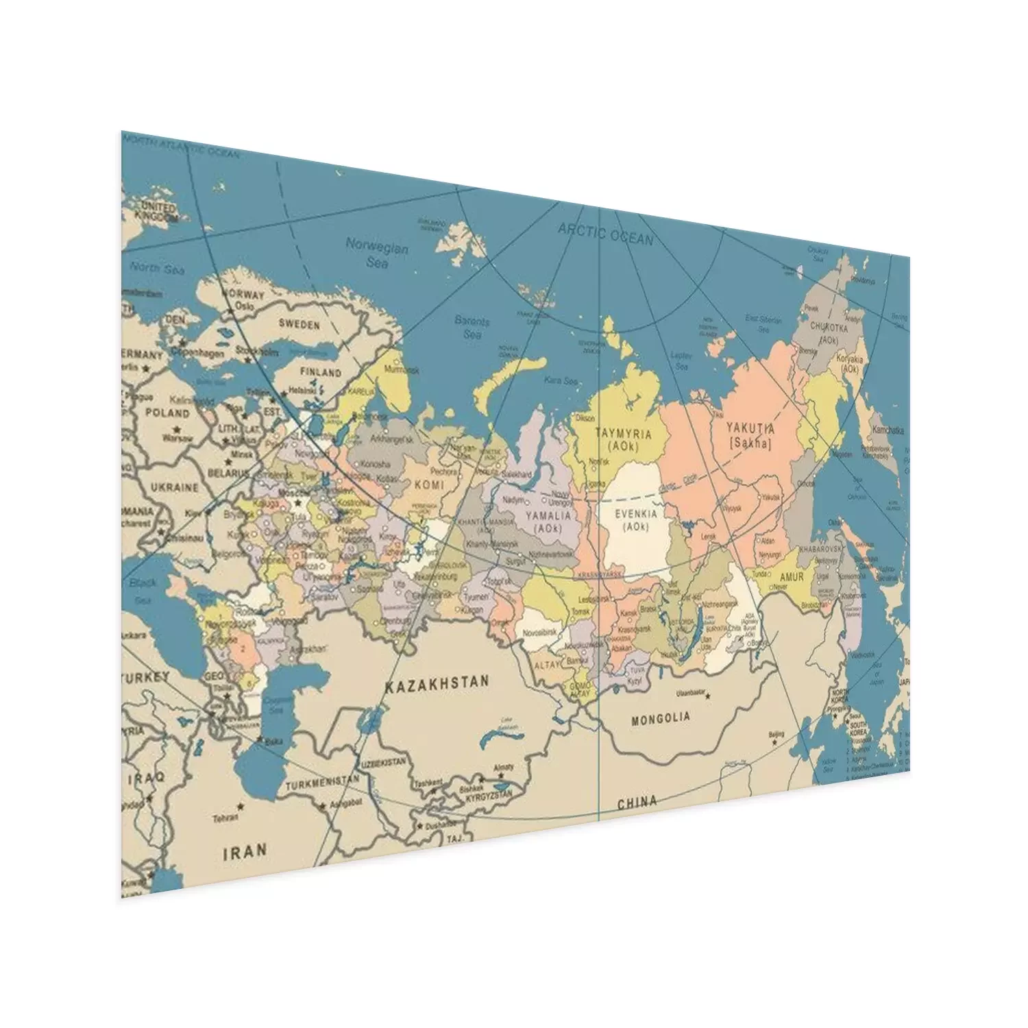 Poster: Rusland Kaart - Vintage Vector Illustratie