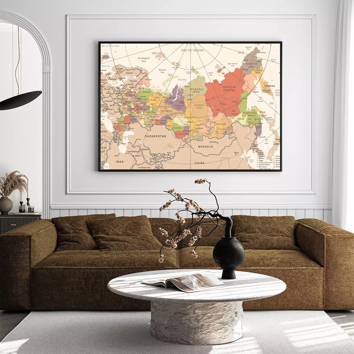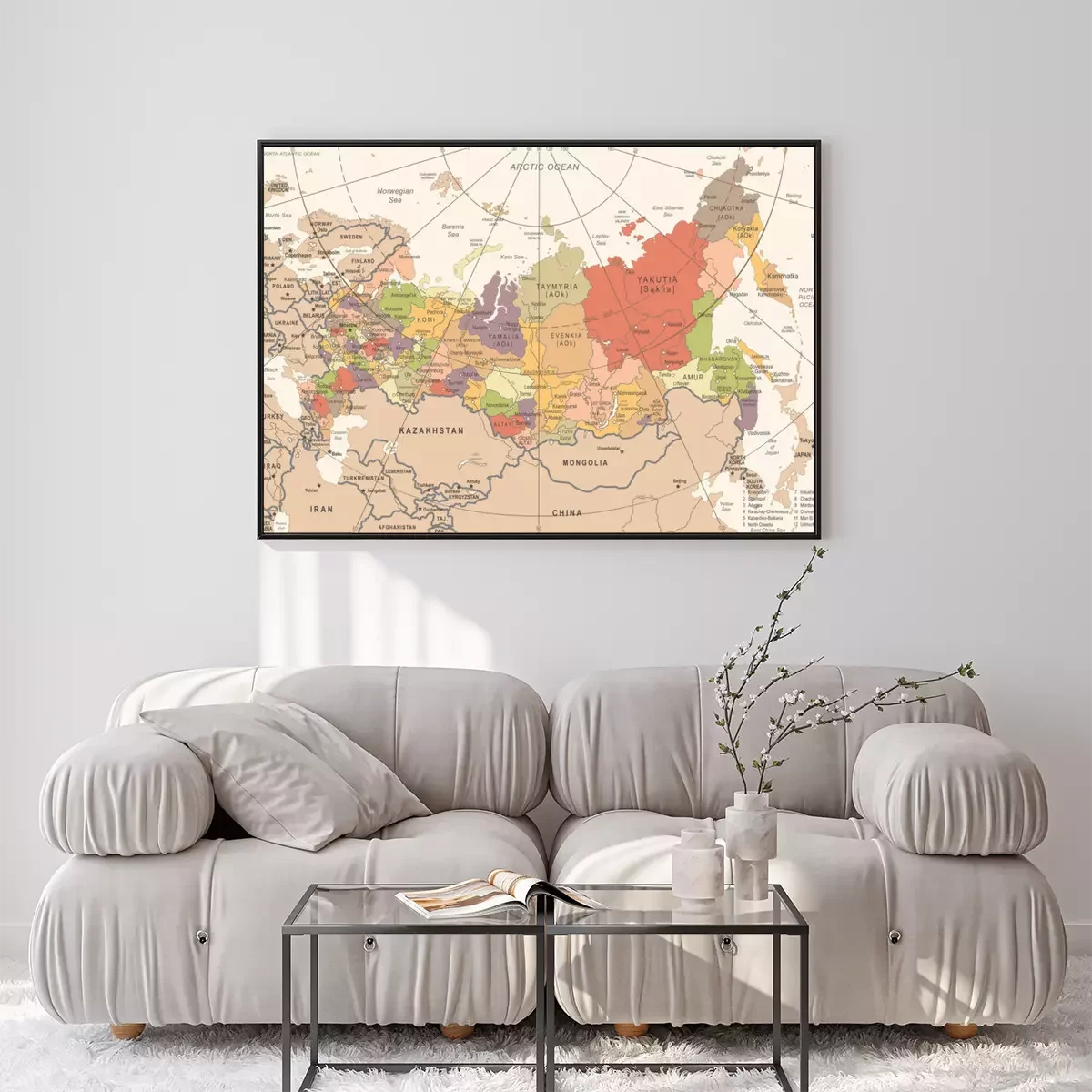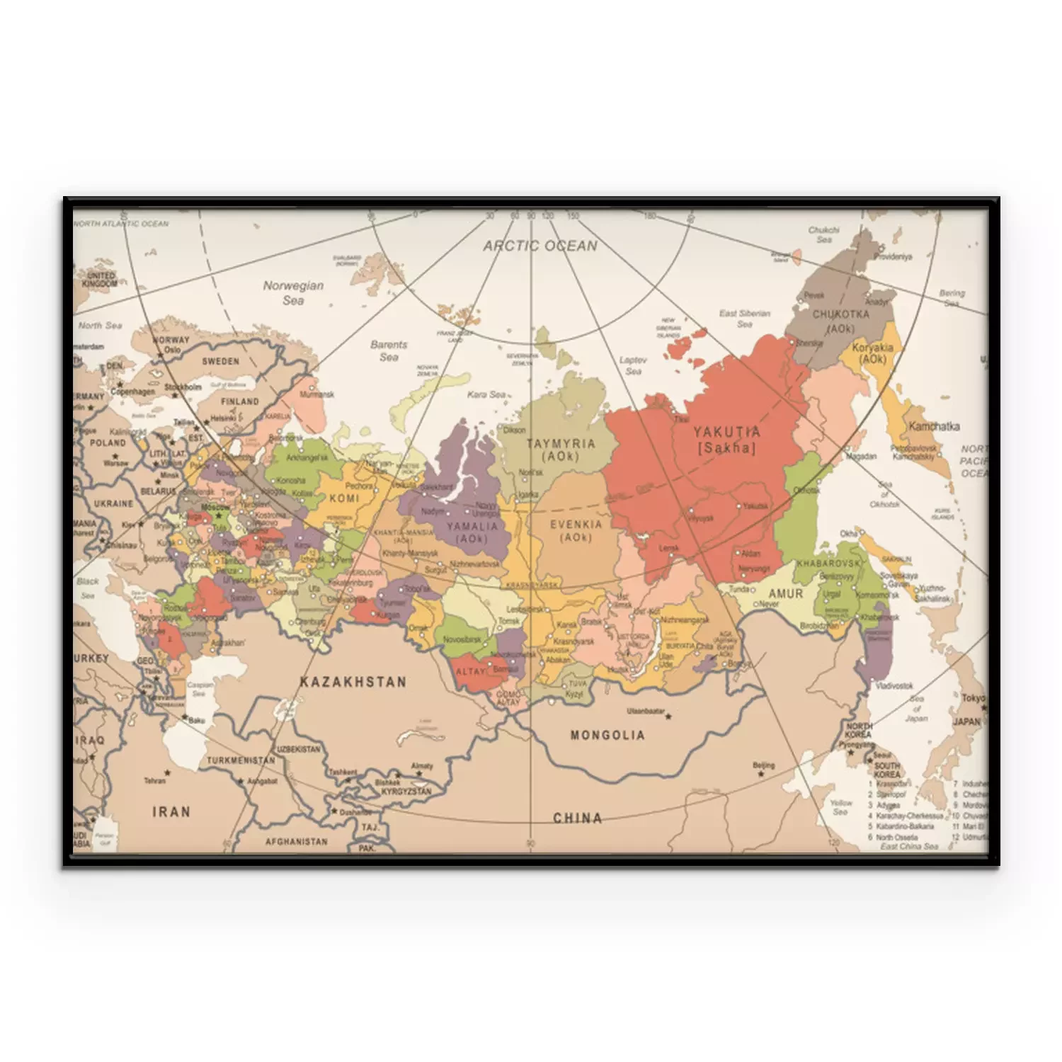 Poster: Rusland Kaart - Vintage Vector Illustratie