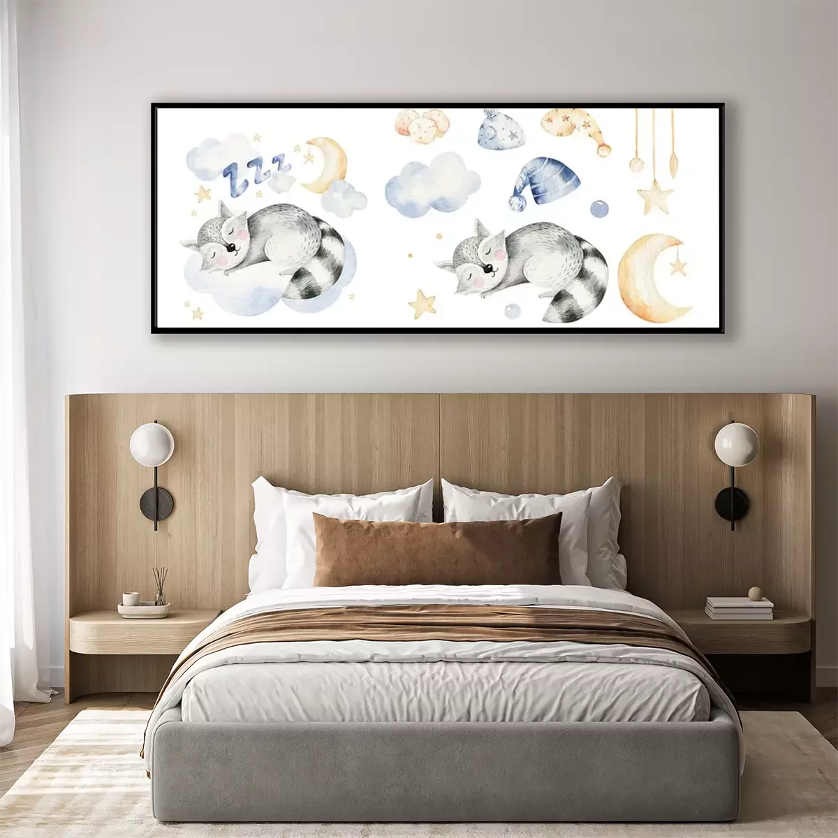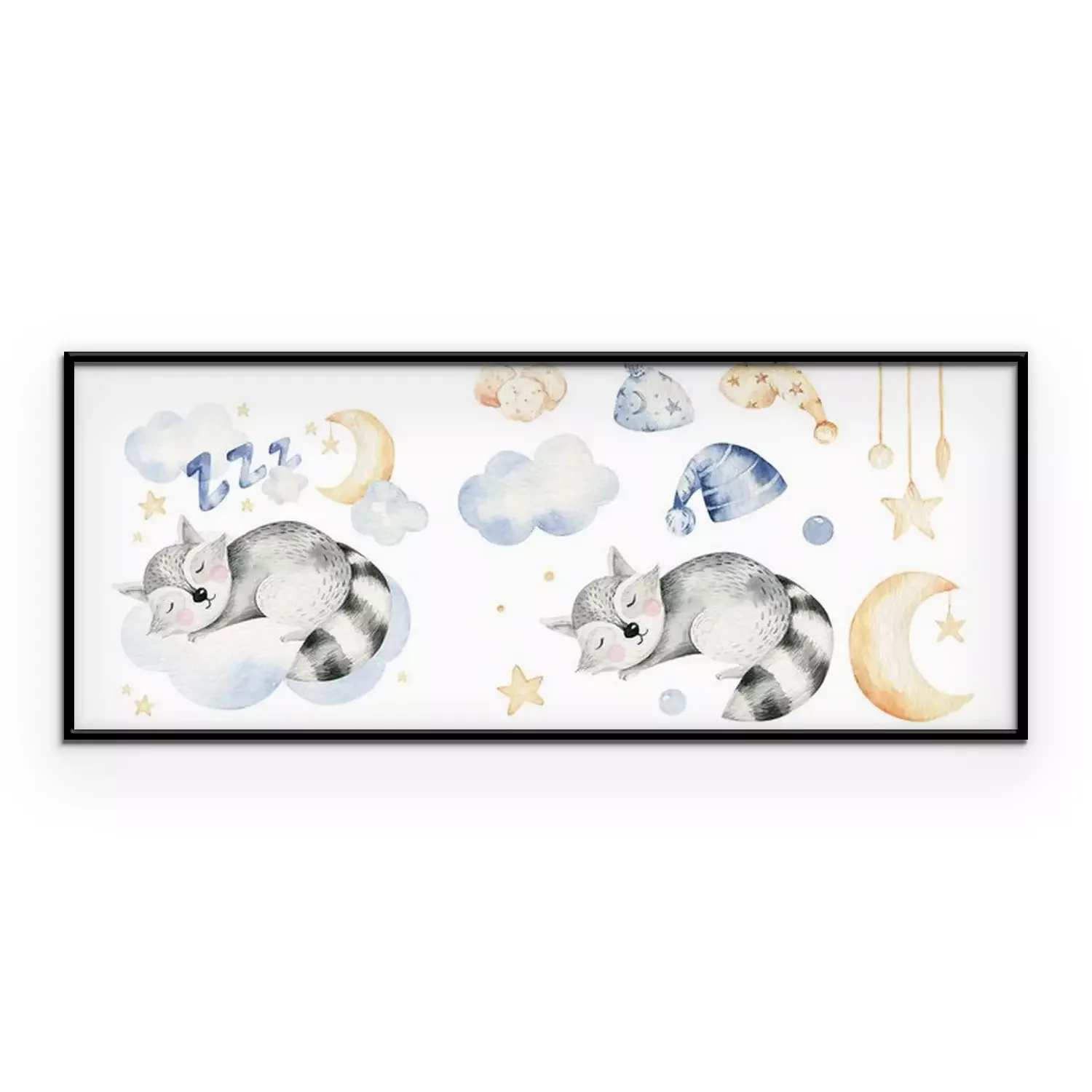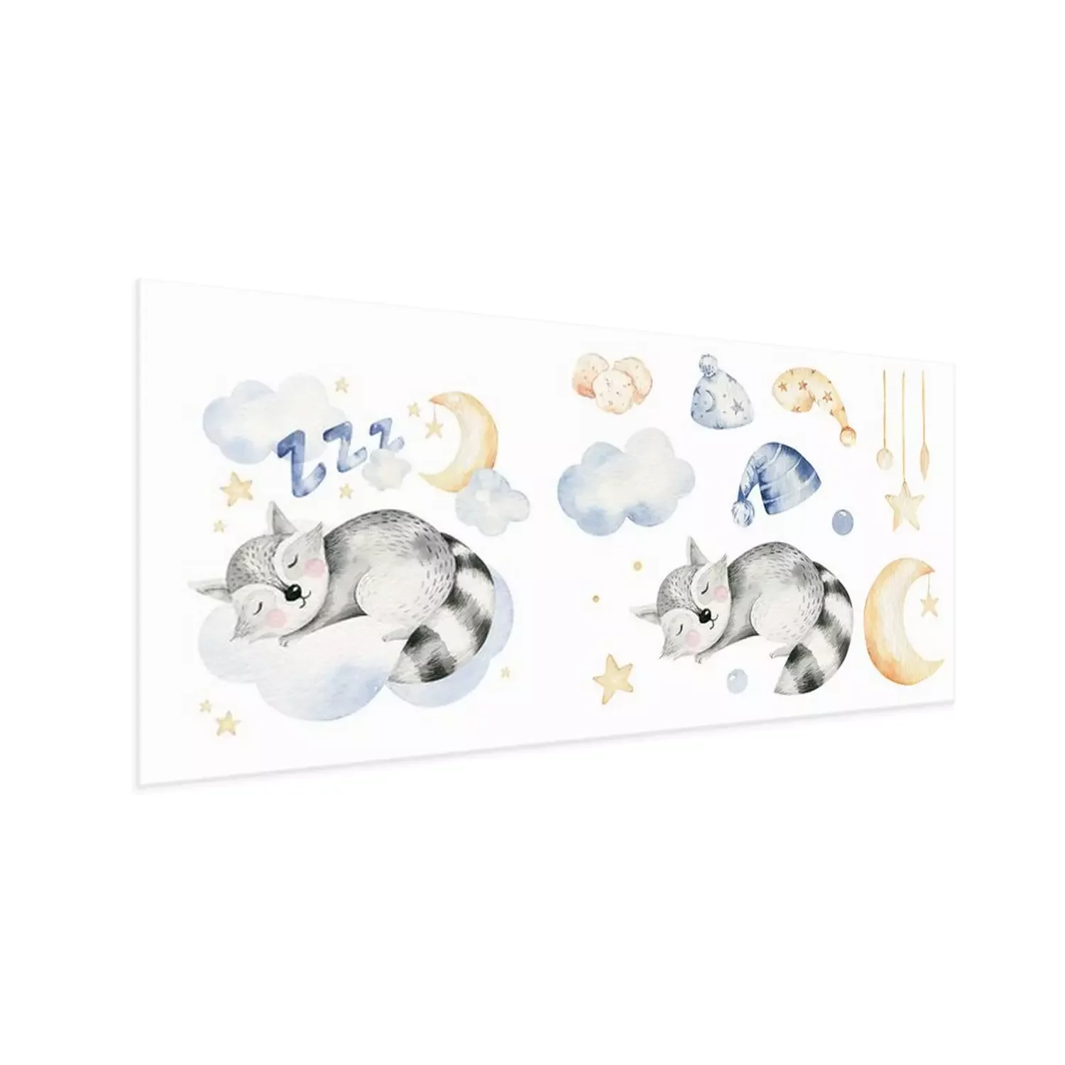 Leuke familie baby raccon, hert en konijn. dierlijke kinderdagverblijfgiraf, en beer geïsoleerde illustratie. Aquarel boho raccon tekening kwekerij naadloze patroon. Kinderen achtergrond, kinderkamer