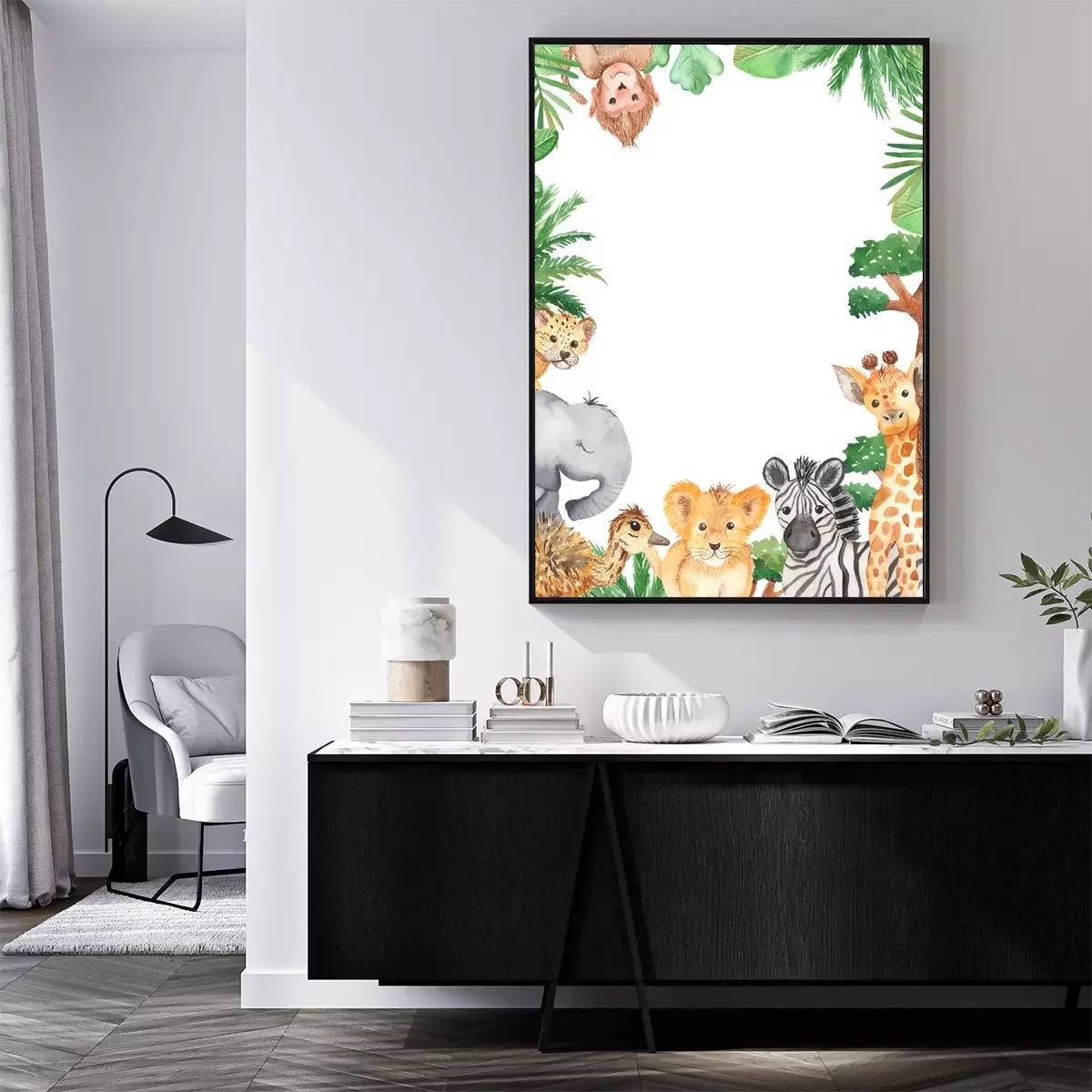Poster Safari dieren tekenen vormen een frame