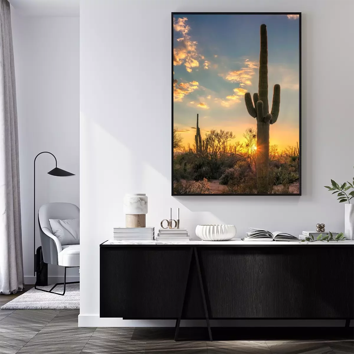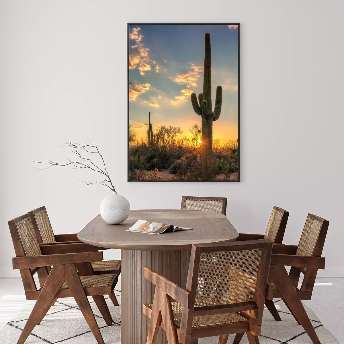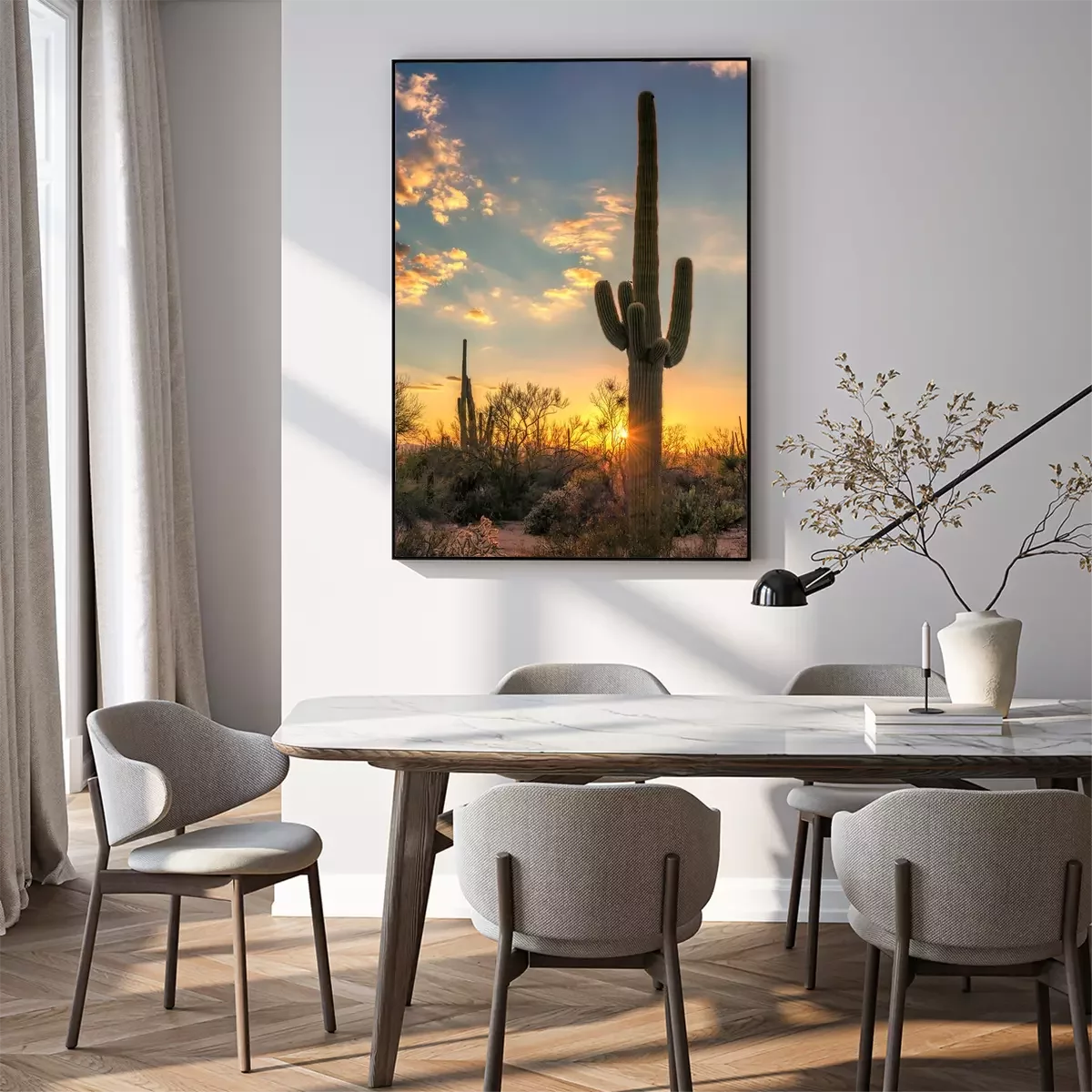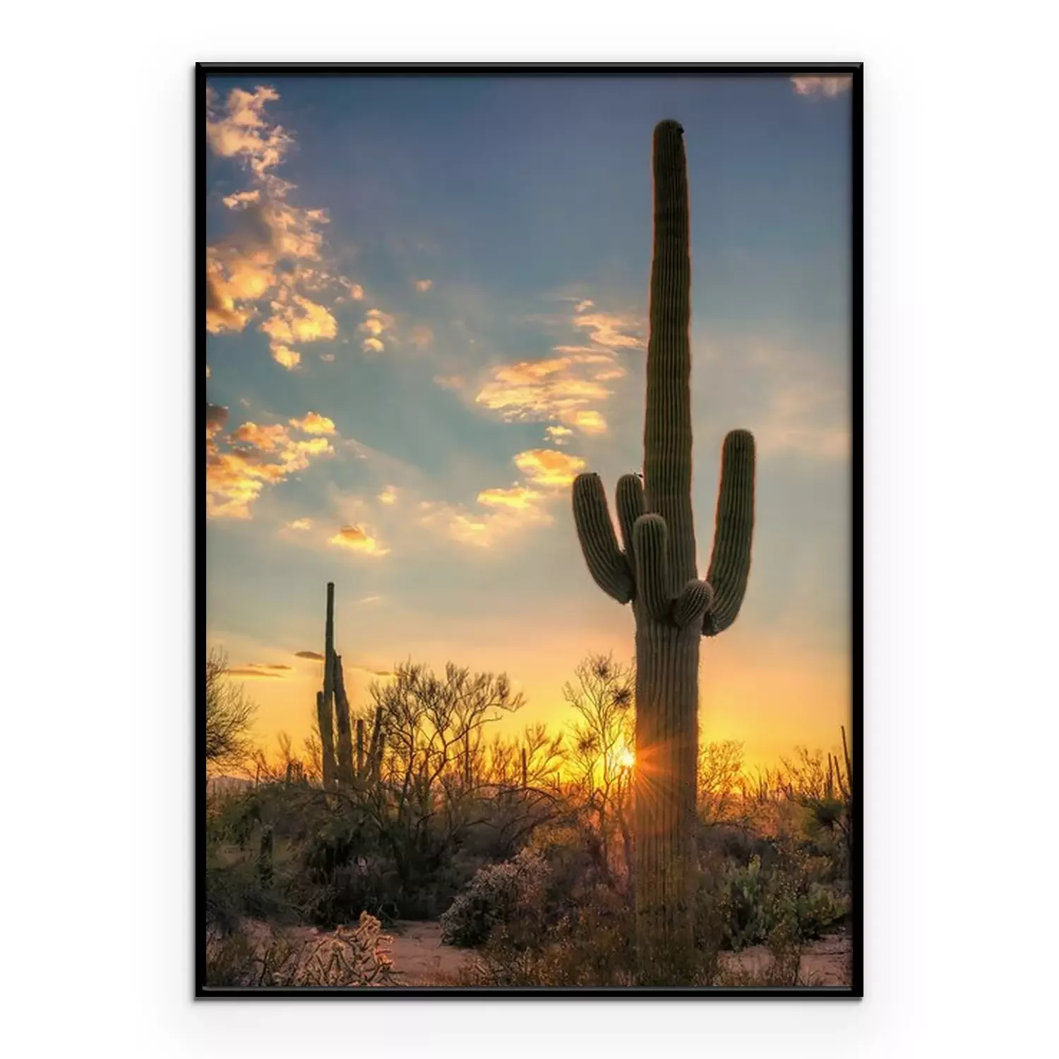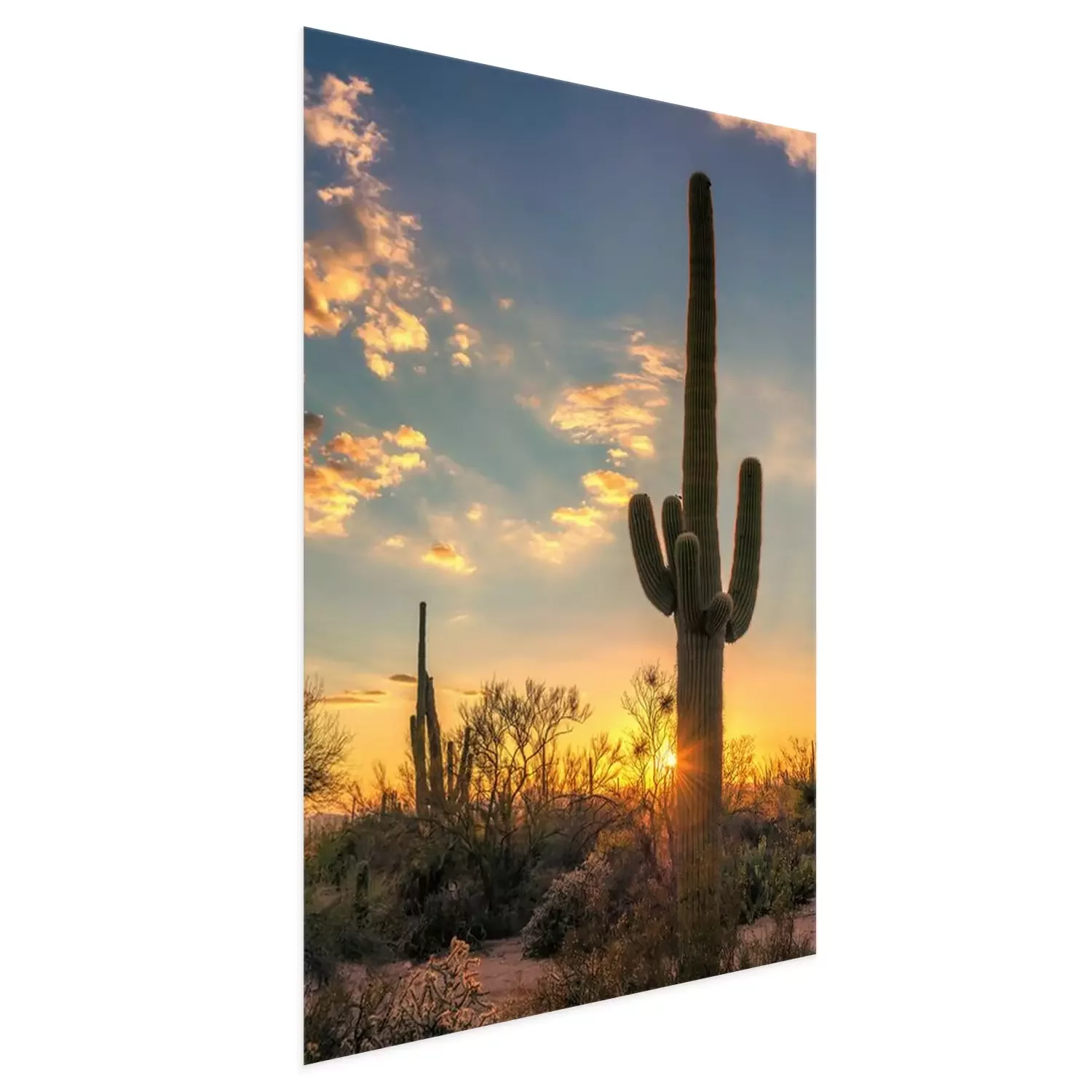 Poster: Saguaros bij zonsondergang in Sonora woestijn in de buurt van Phoenix, Arizona.