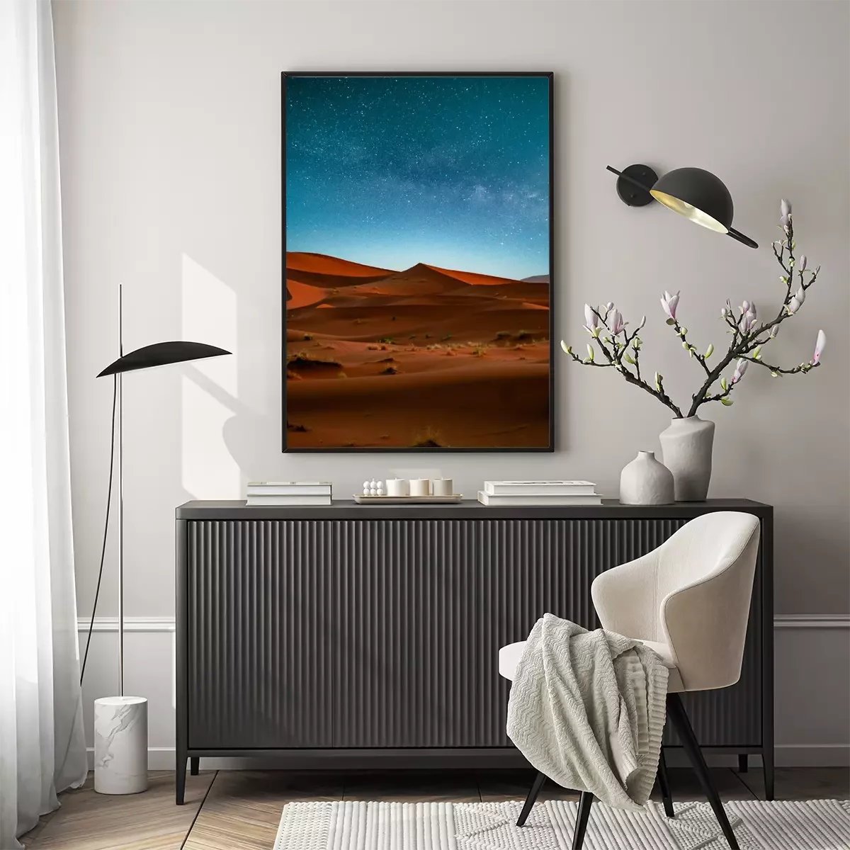 Deze posters zijn gedrukt in zeer hoge resolutie (1440 dpi) op papier van uitstekende kwaliteit. Het gebruik van HP Latex-technologie zorgt voor jarenlang levendige kleuren die bestand zijn tegen de schadelijke effecten van UV-straling. Posters zien er geweldig uit in aluminium lijsten met een plexiglas plaat, wat het een elegant karakter geeft. Premium posters worden gedrukt op halfglanzend papier.