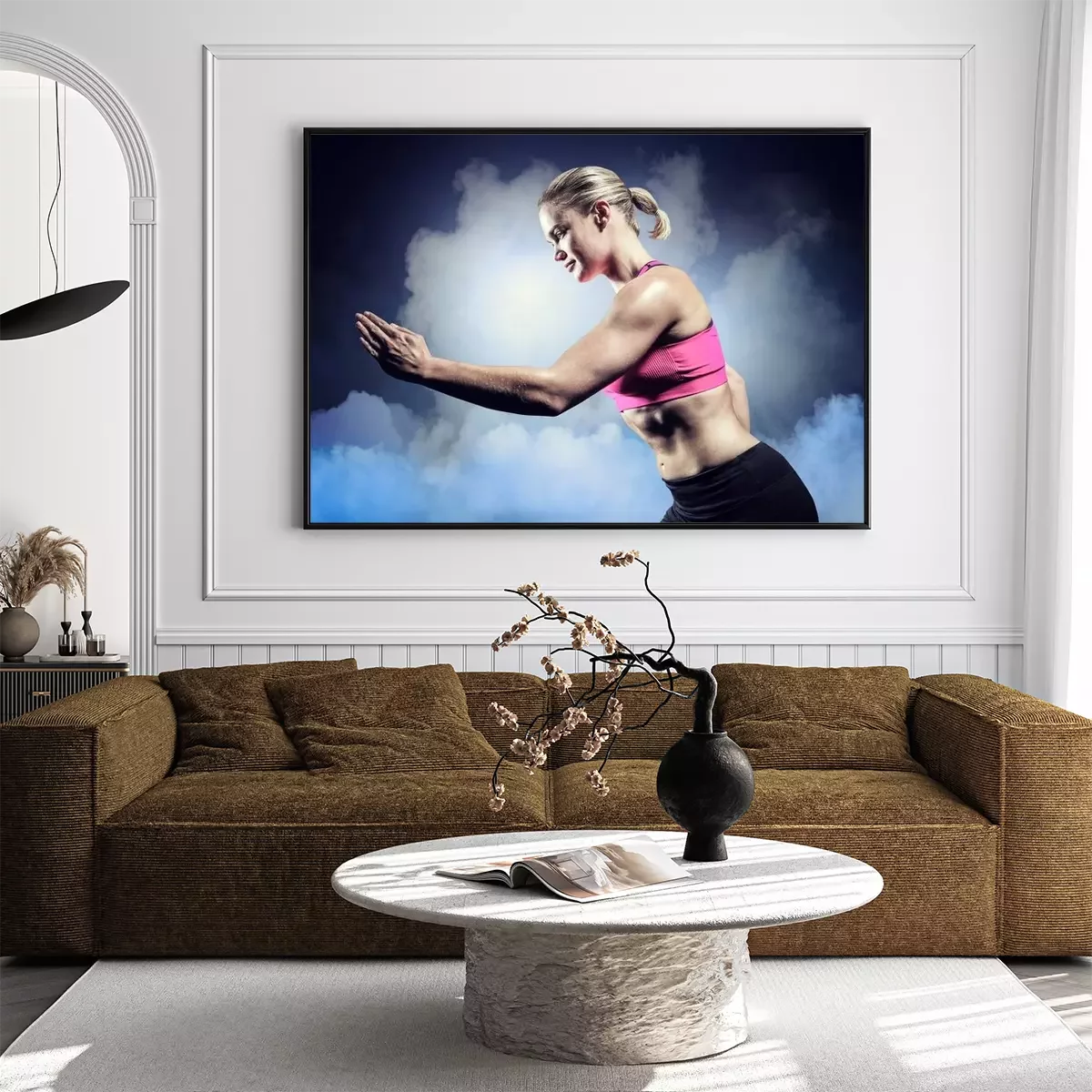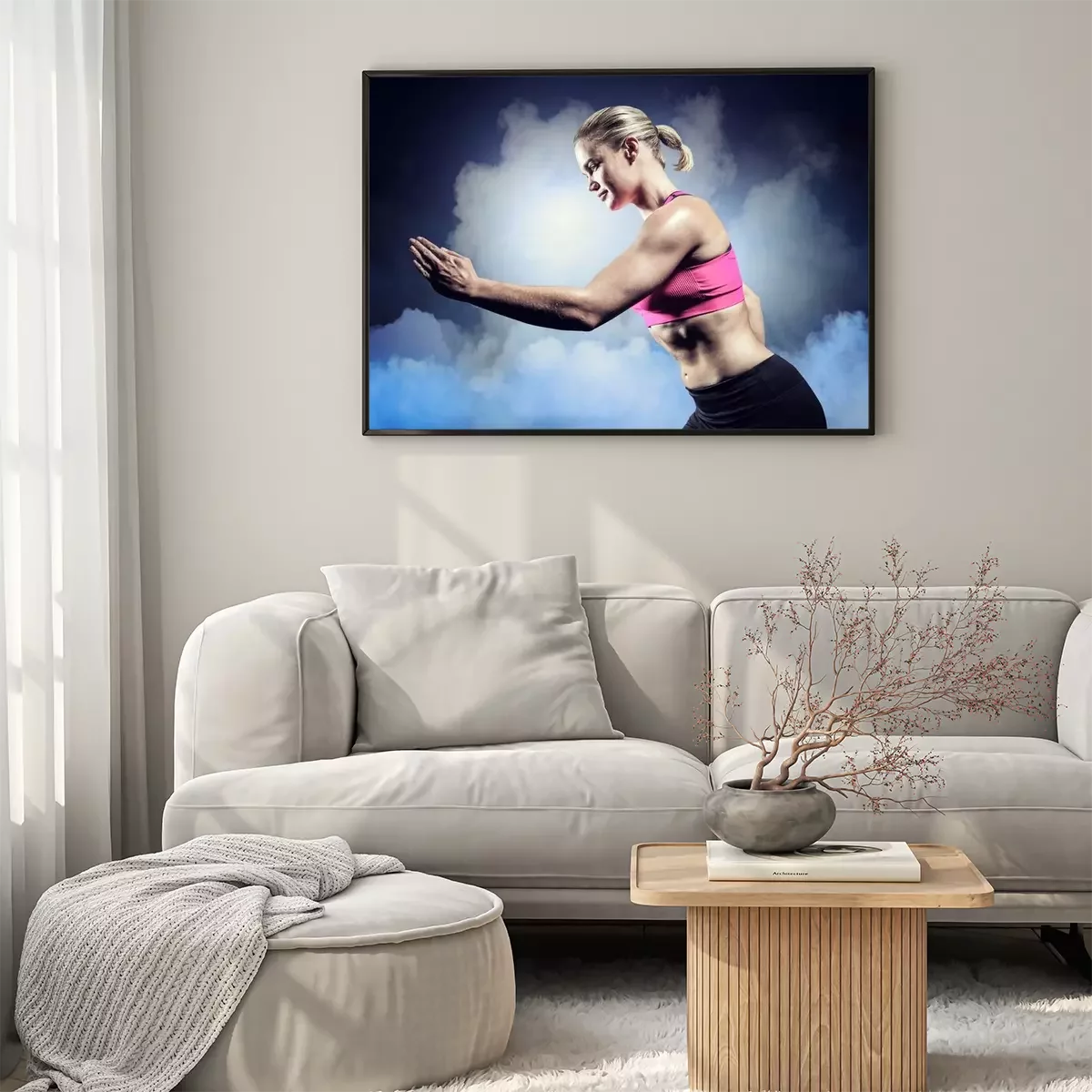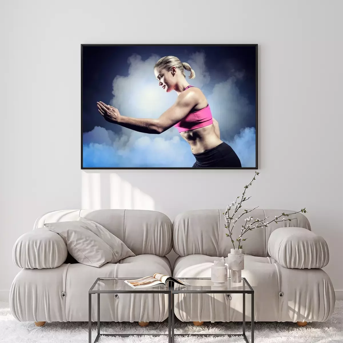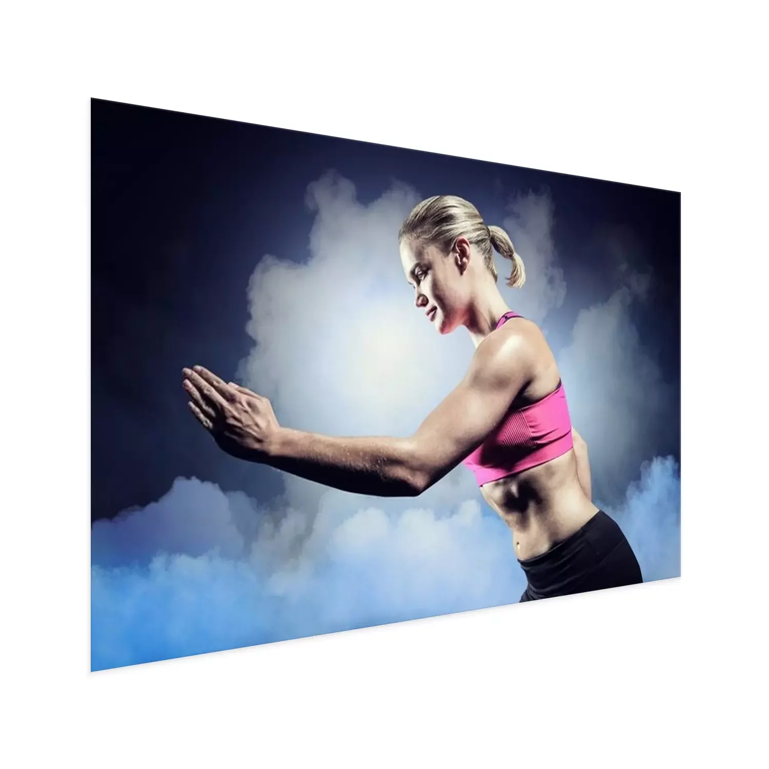 Poster: Samengesteld beeld van gespierde vrouw die in sportkleding