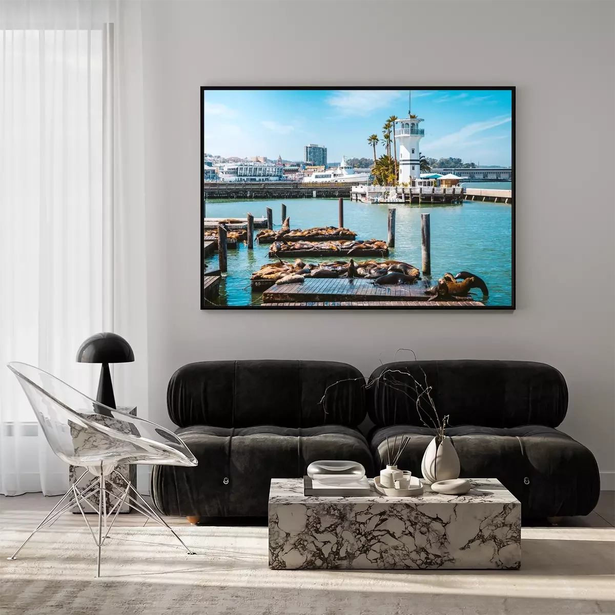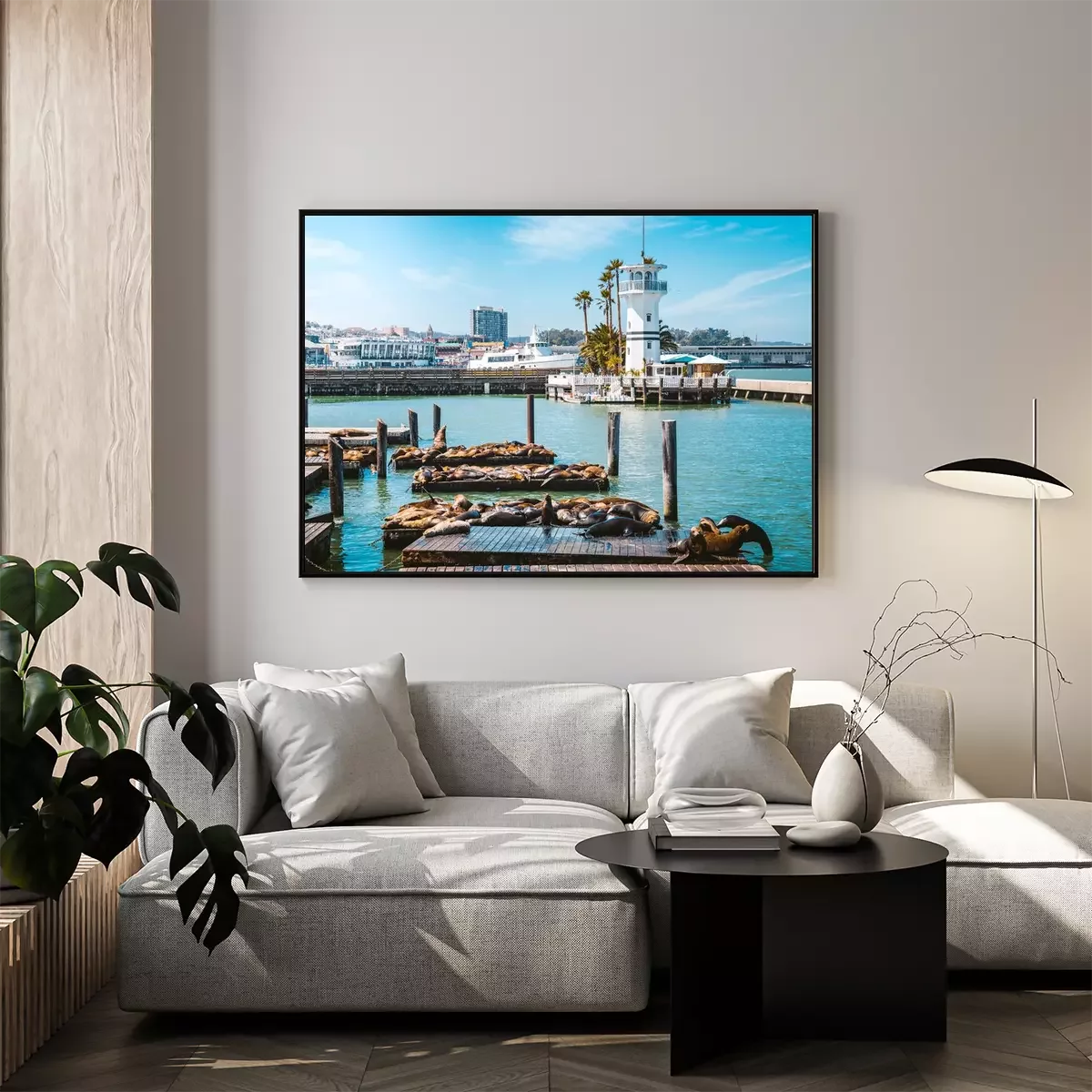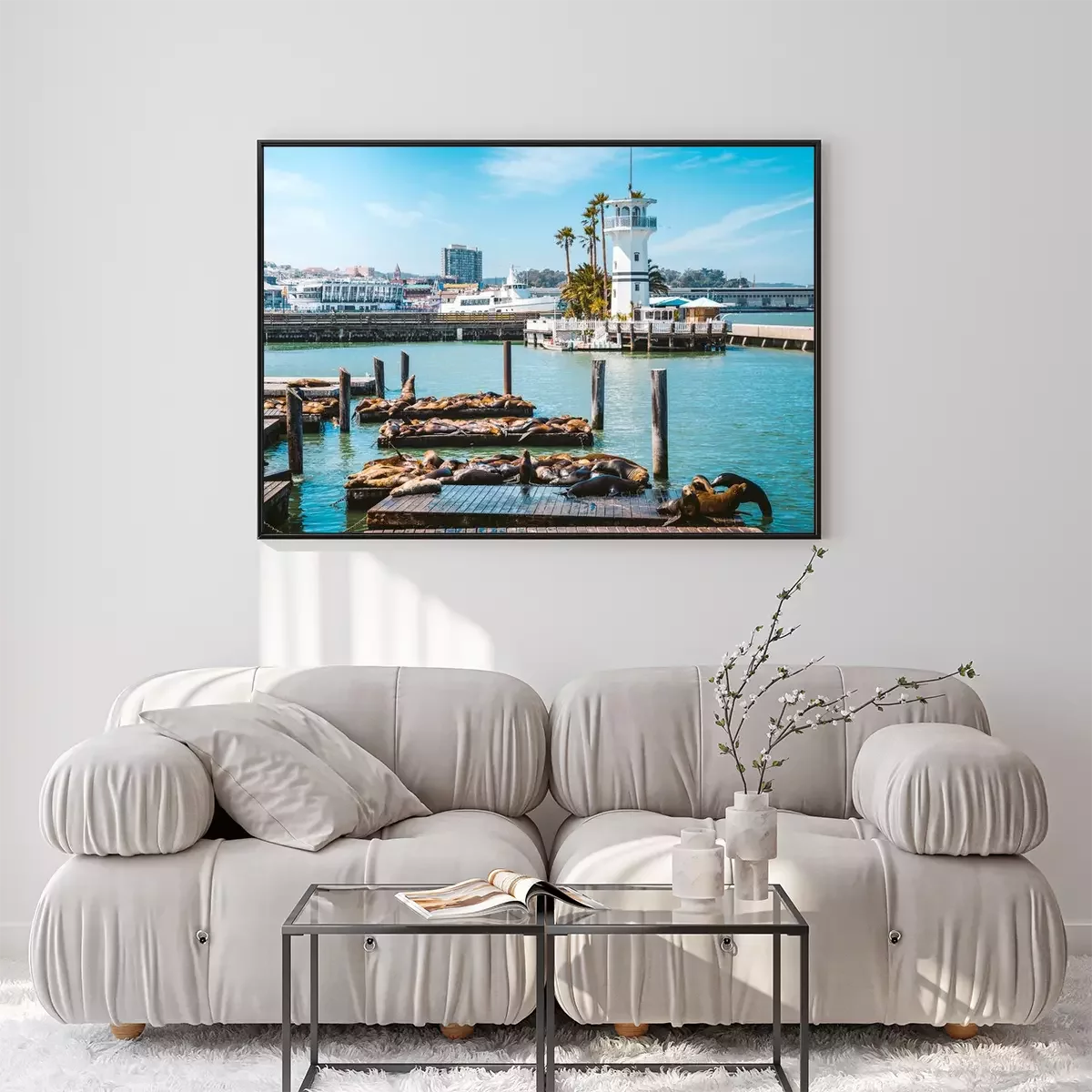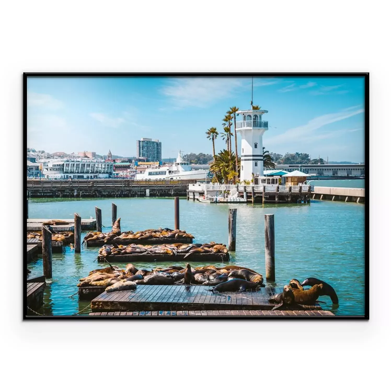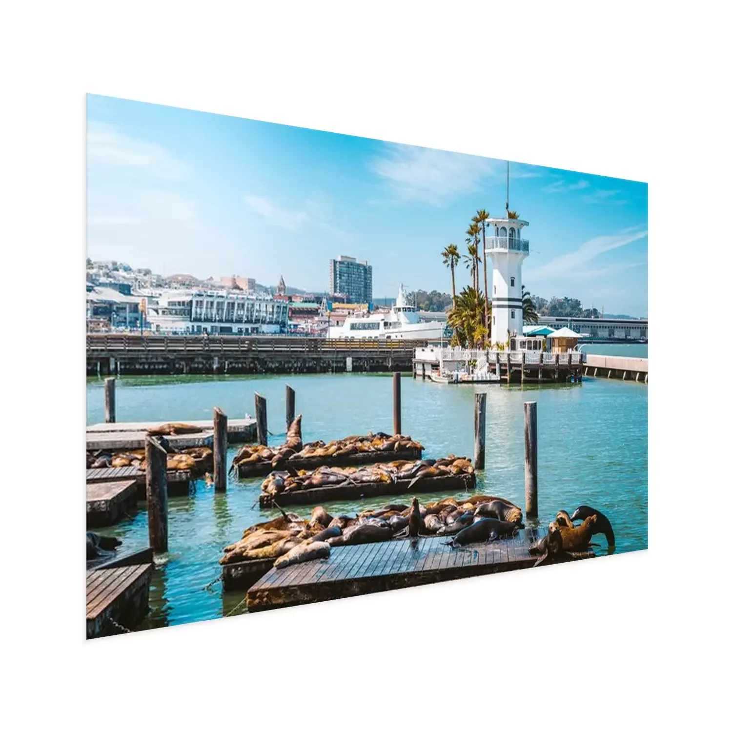Poster San Francisco Fisherman's Wharf with Pier 39 with sea lions, California, USA