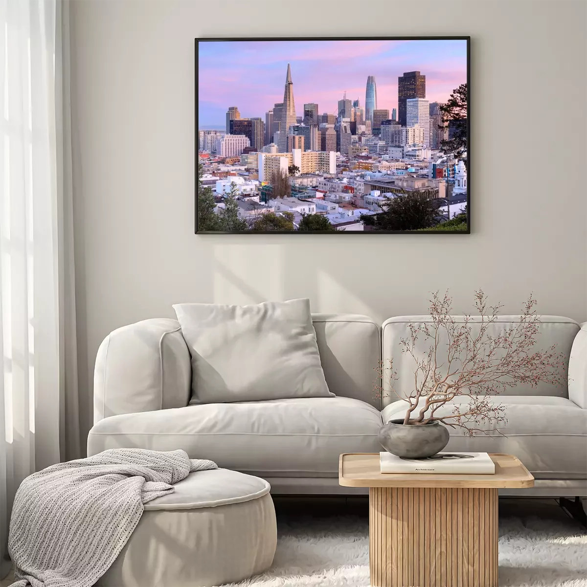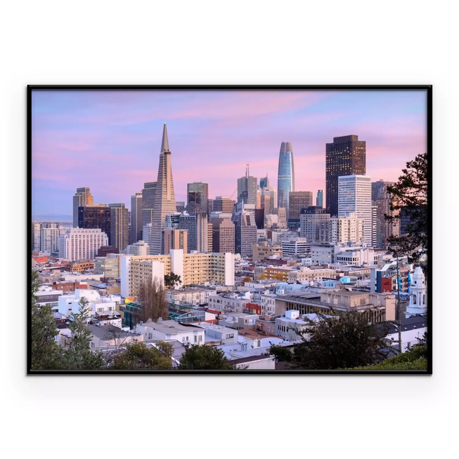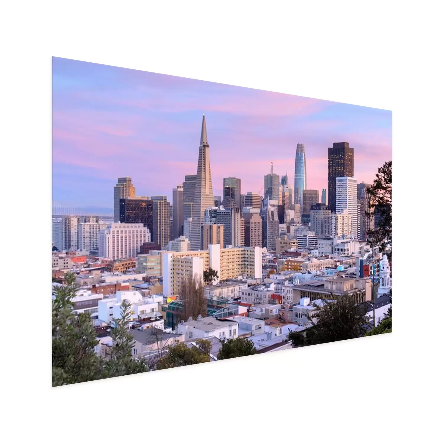 Poster San Francisco Skyline in roze en blauwe luchten. Ina Coolbrith Park, San Francisco, Californië, VS.