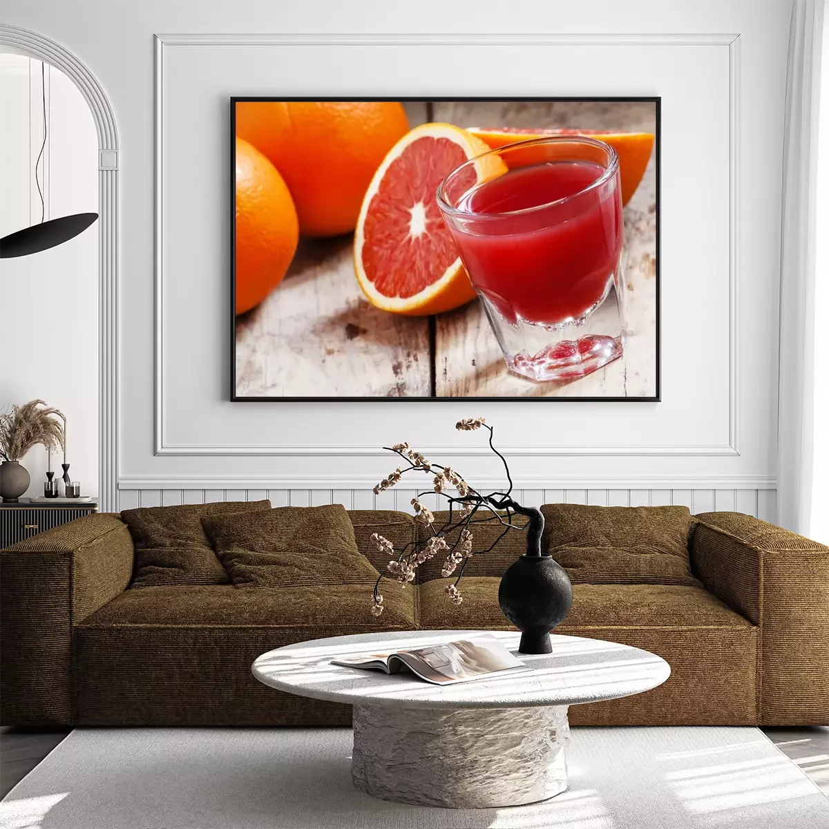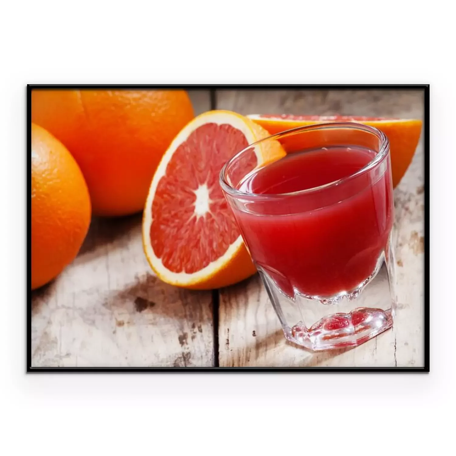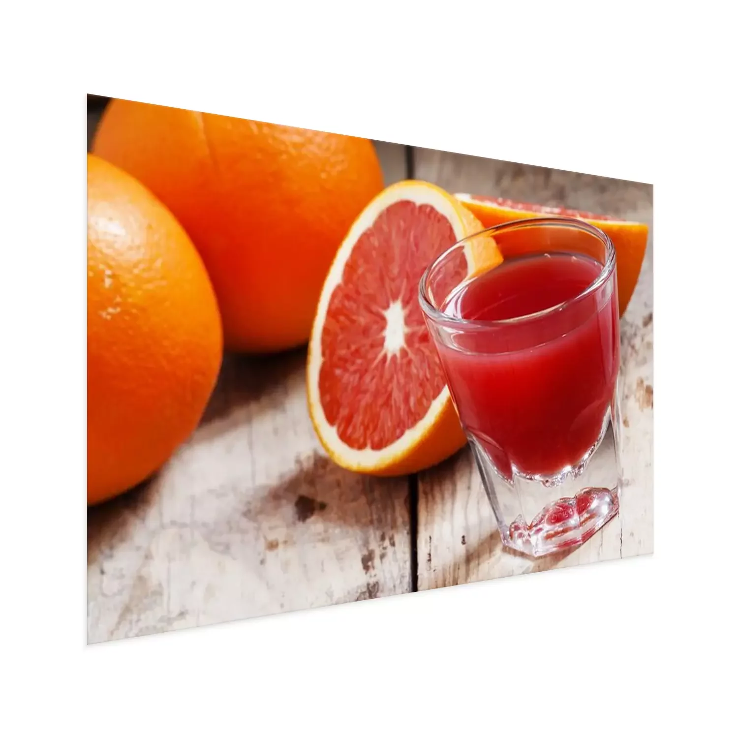 Poster: Sap van rode Siciliaanse sinaasappelen in een grote glazen, selectieve aandacht