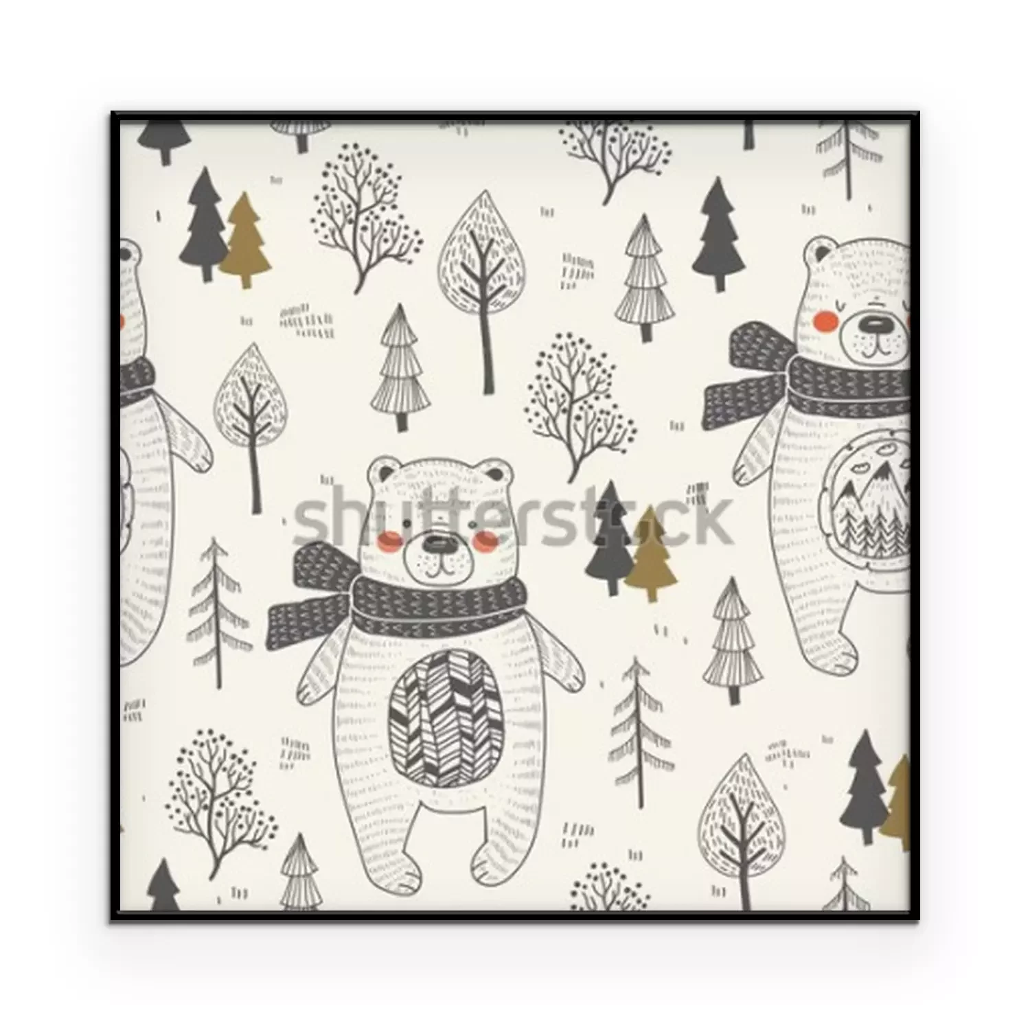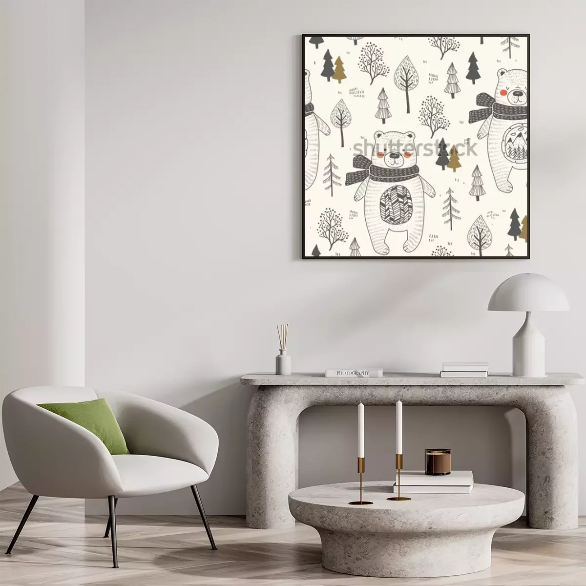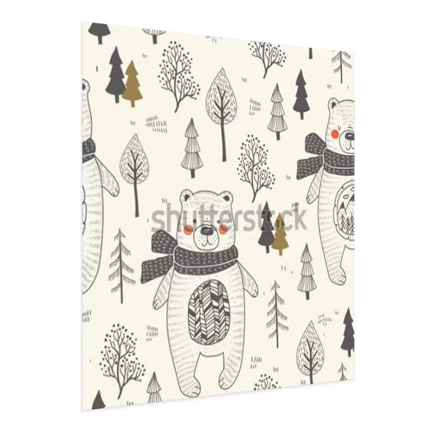 Poster: Scandinavische afbeeldingen van teddyberen in een sjaal en een kerstboom