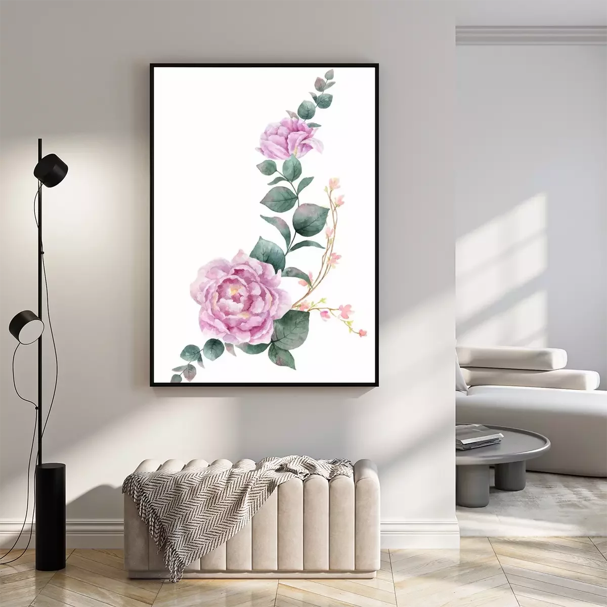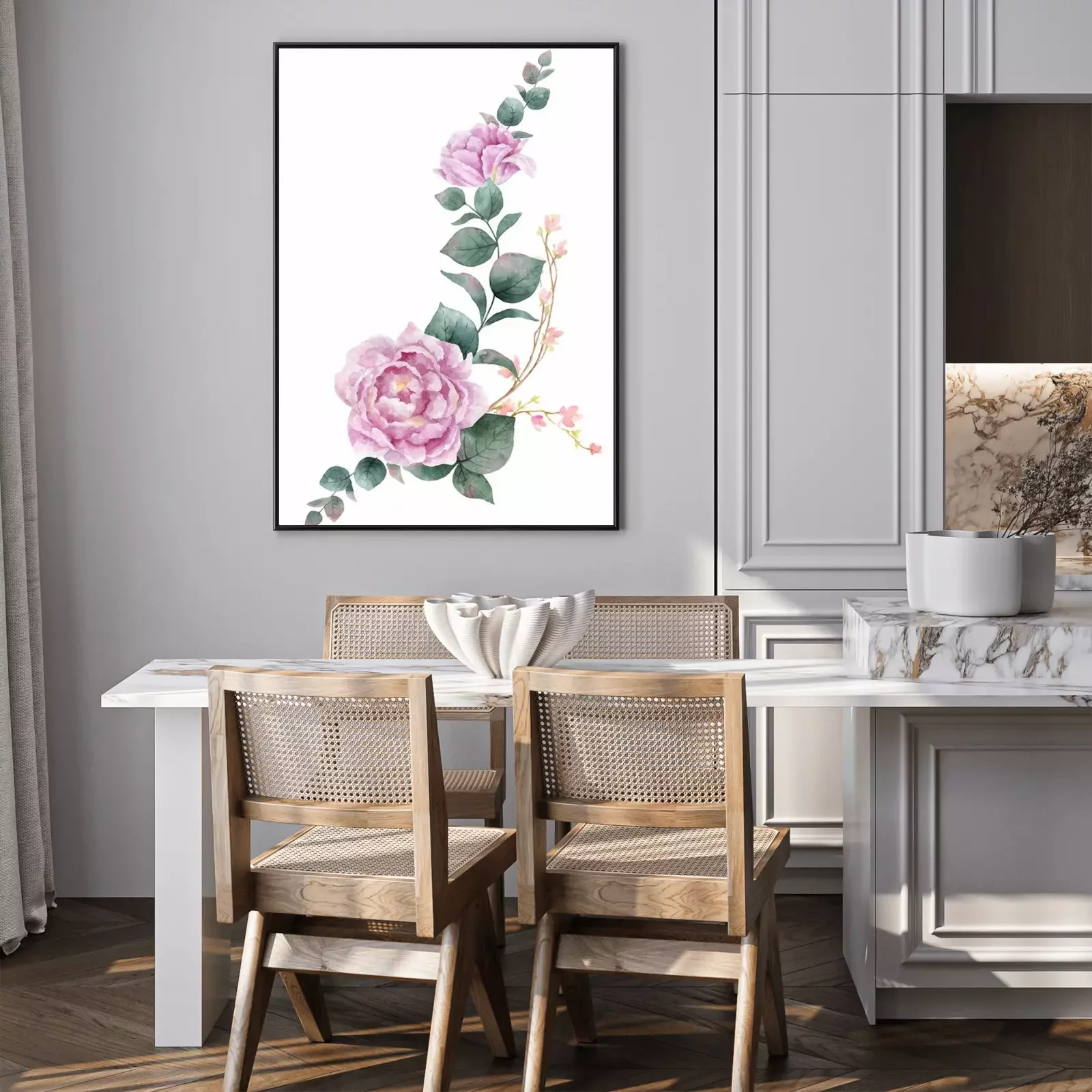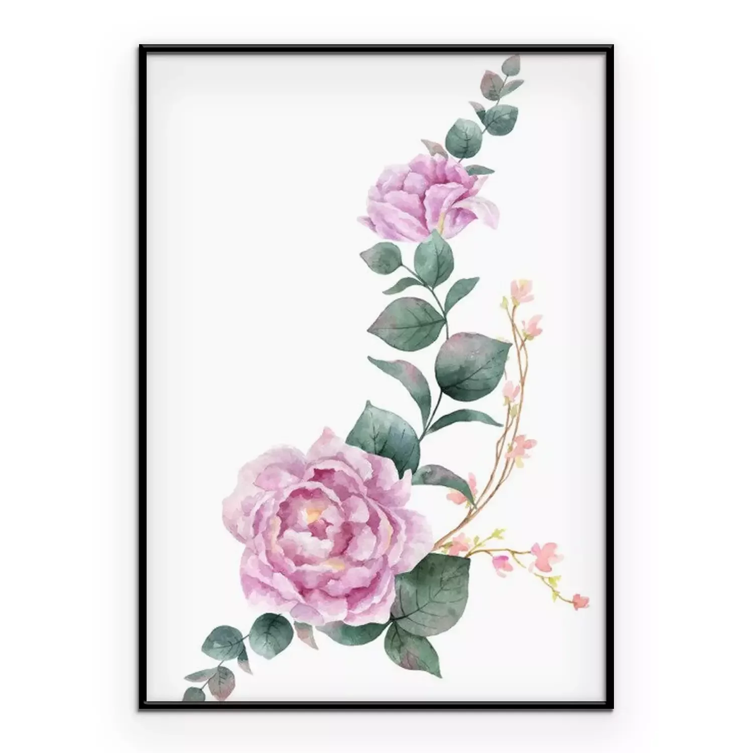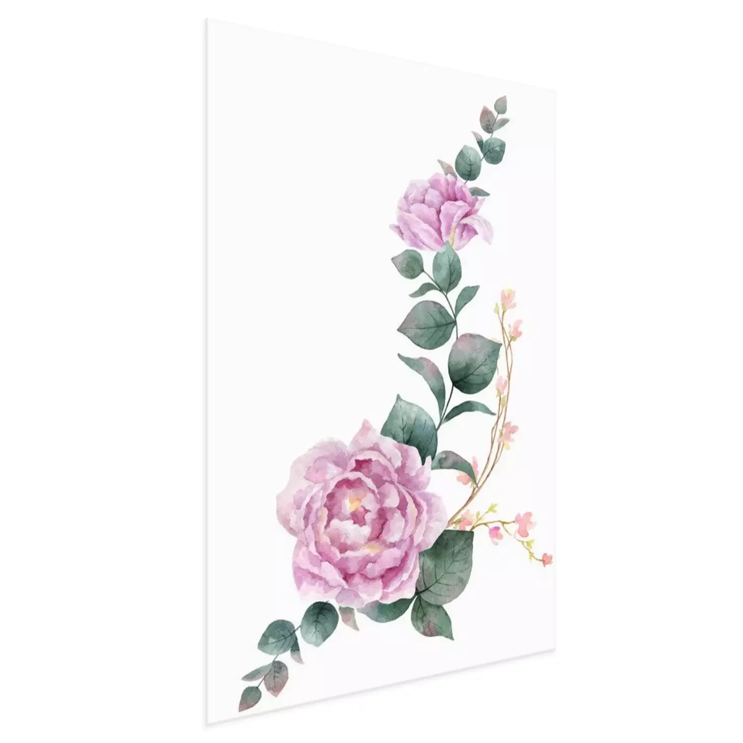 Poster Schaduwrijke bladeren en twee pioenrozen