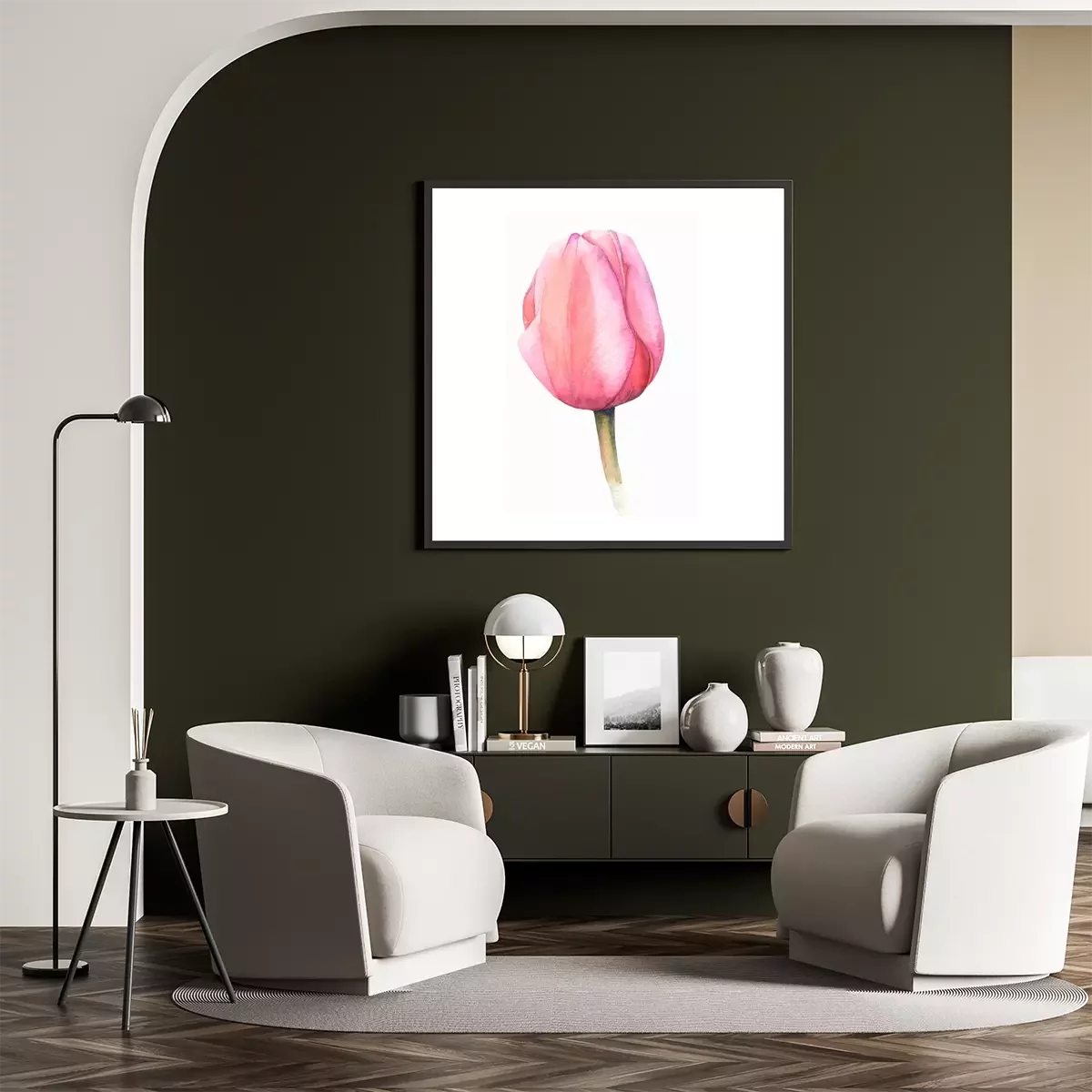 Poster: Schaduwrijke knop van een roze tulp