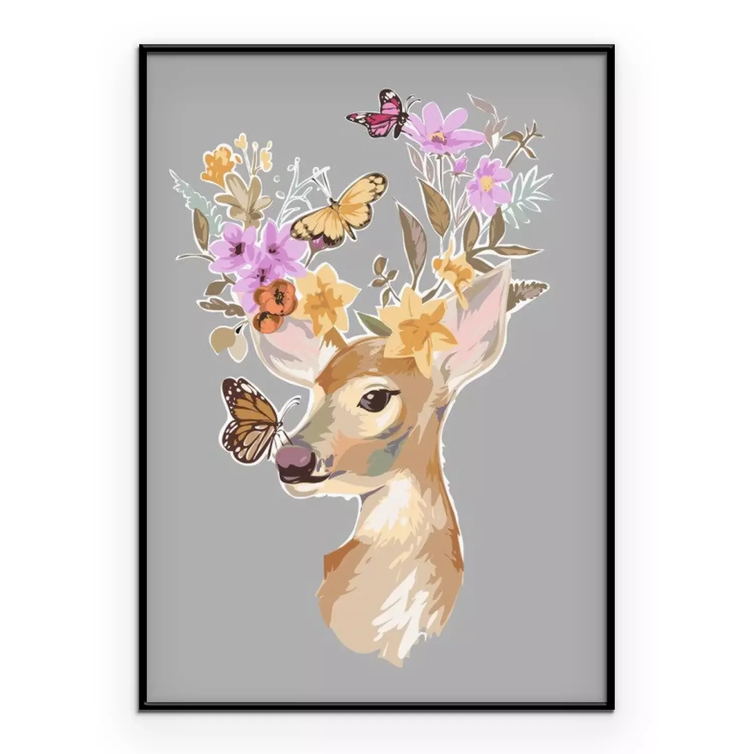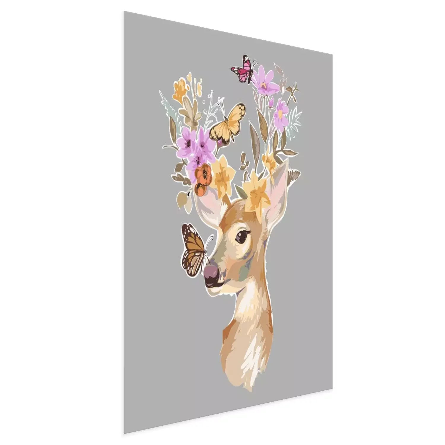 Poster Schattig bosdiertje met vlinders