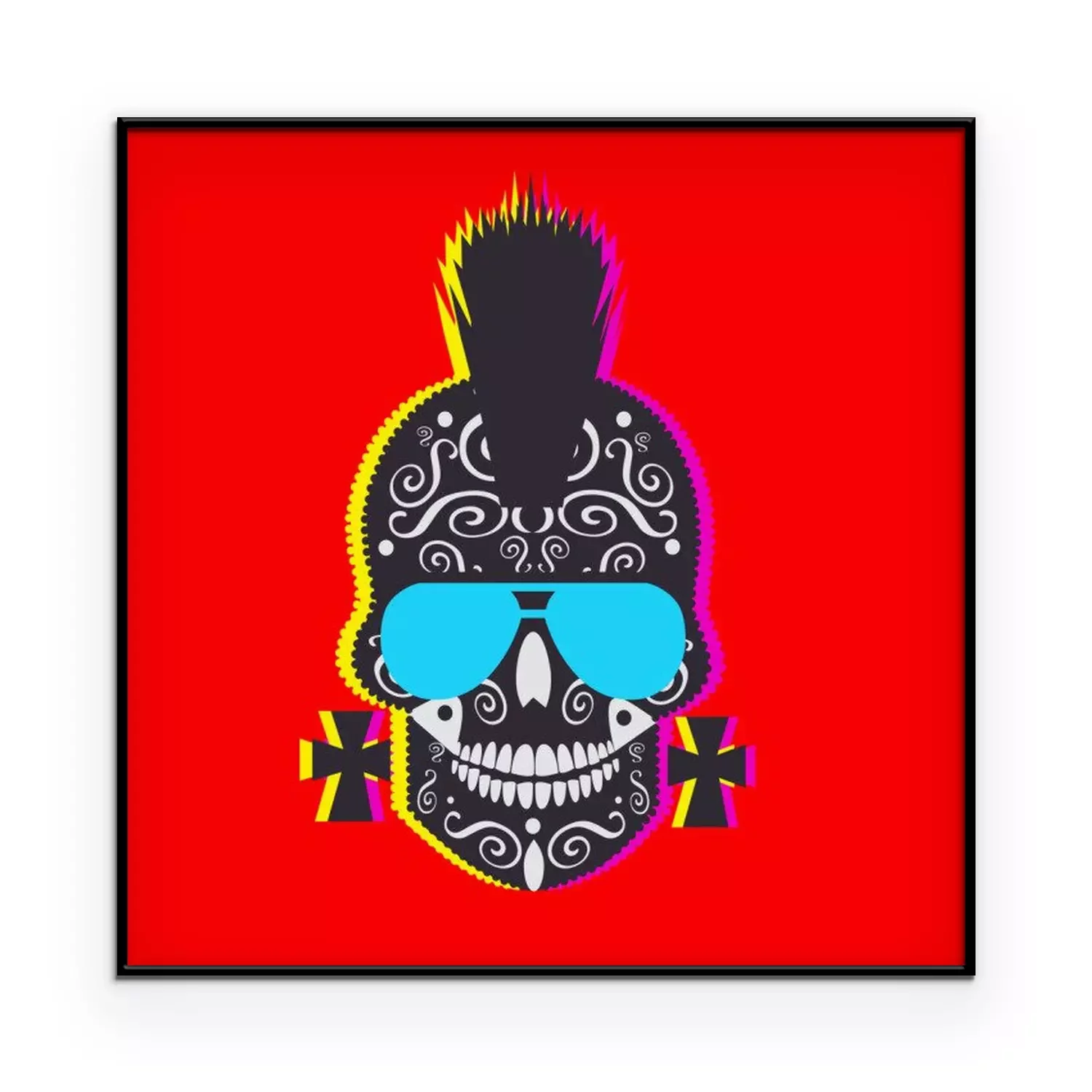 Poster Schedel pictogram modern, met zonnebril en Mohawk, duo schaduw ontwerp