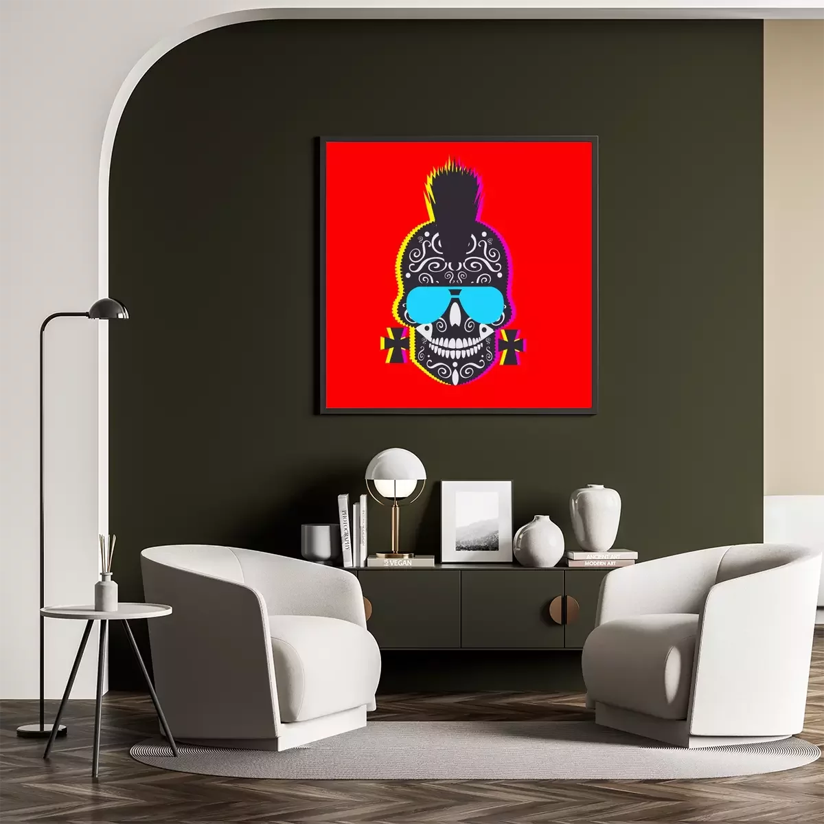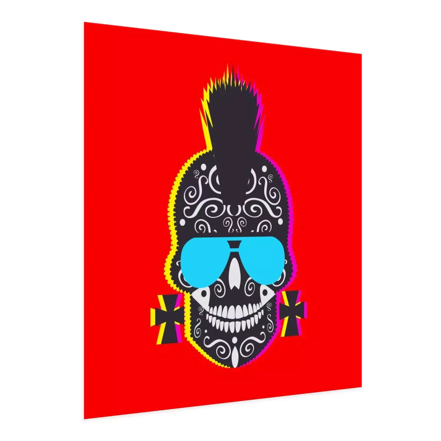 Poster: Schedel pictogram modern, met zonnebril en Mohawk, duo schaduw ontwerp