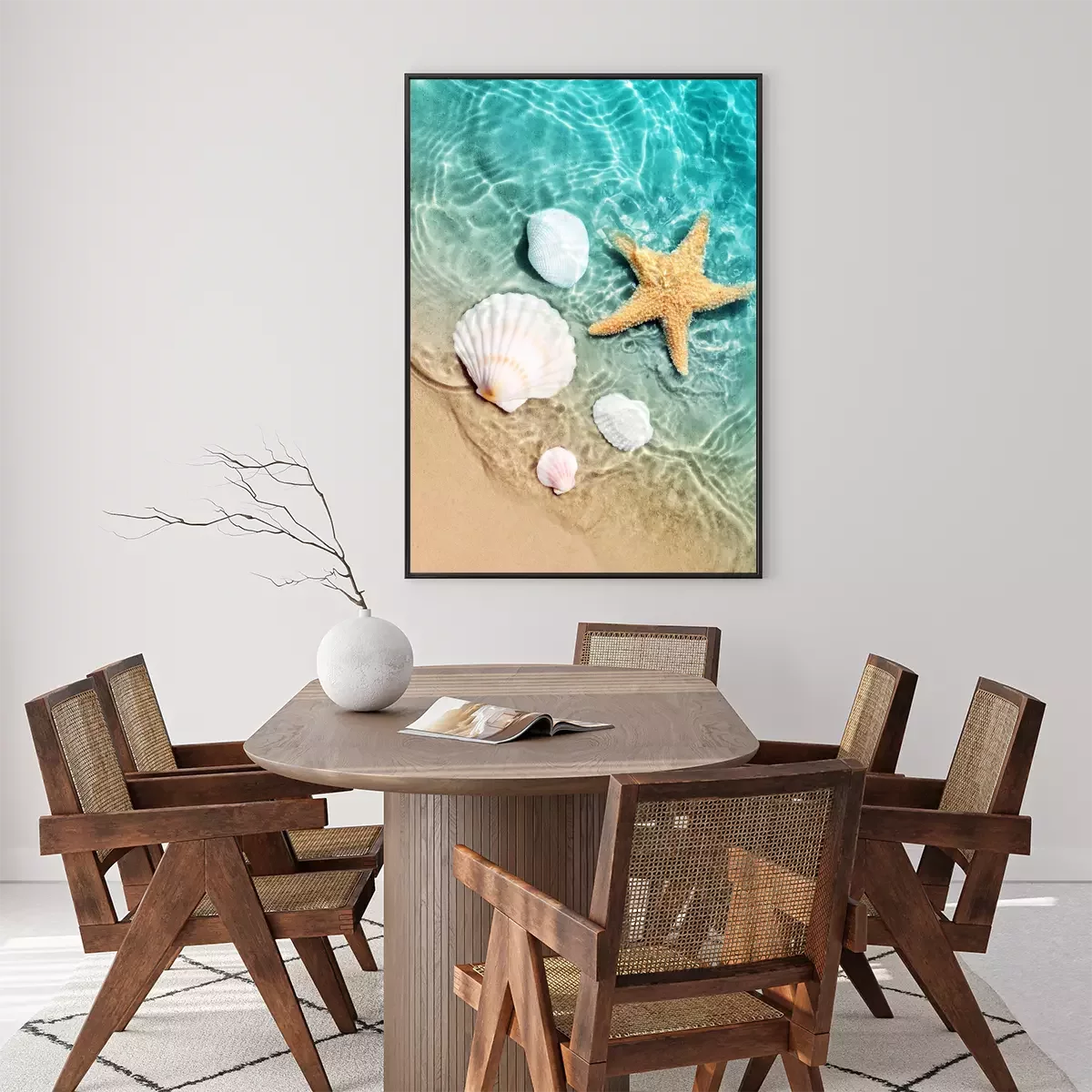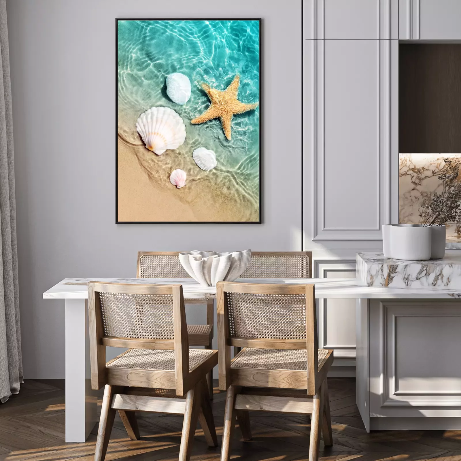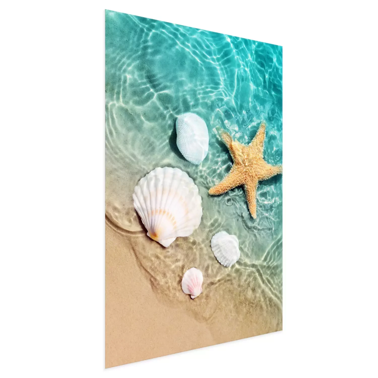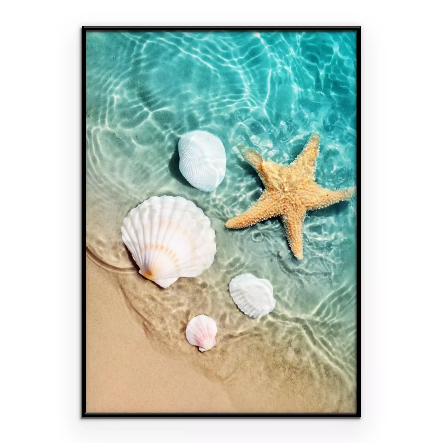 zeester en zeeschelp op het strand van de zomer in zeewater.