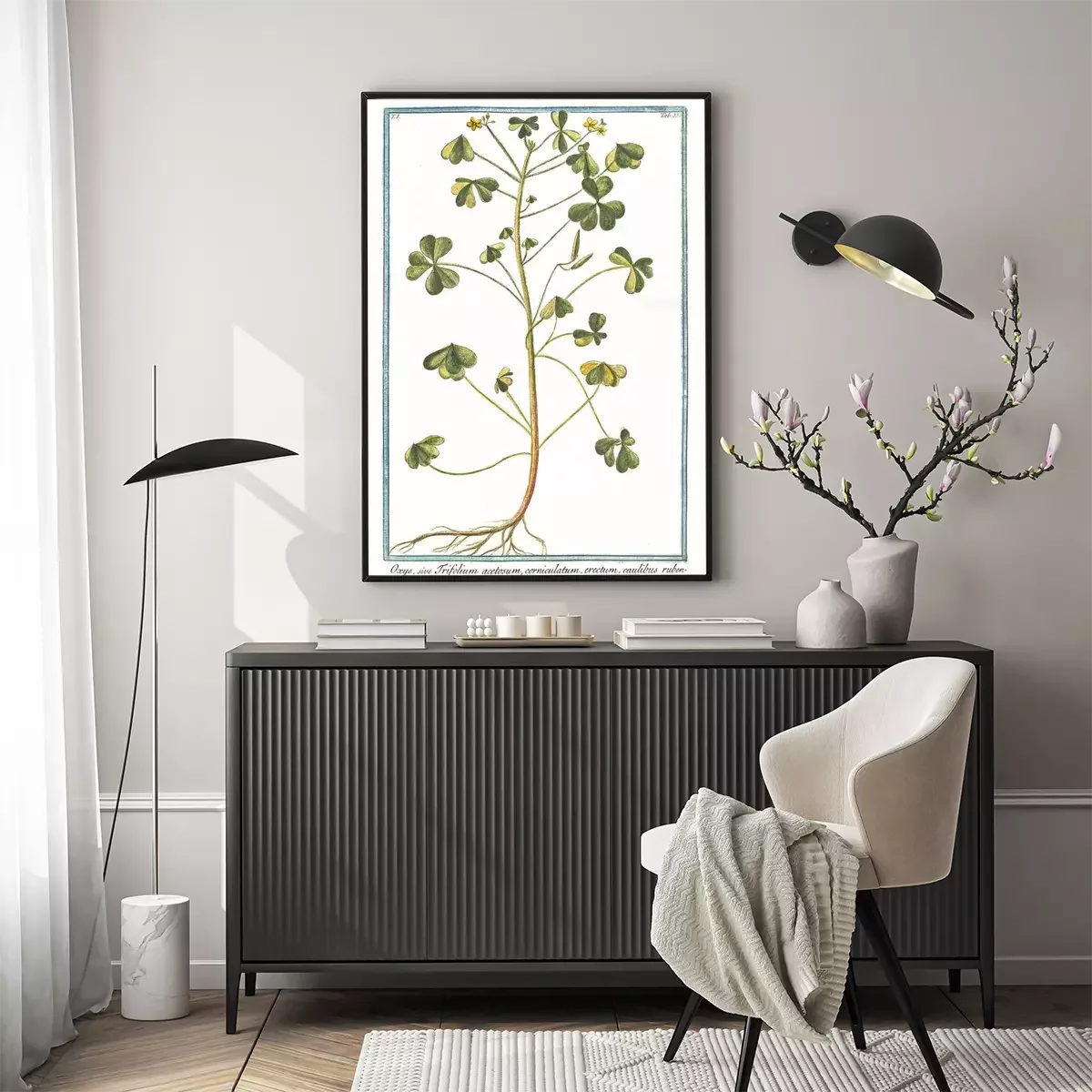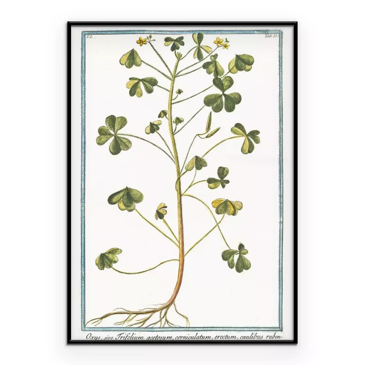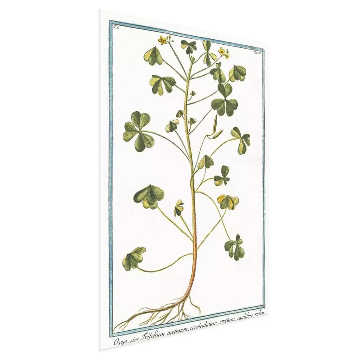 Botanische tekening van klaverzuring met bijschrift