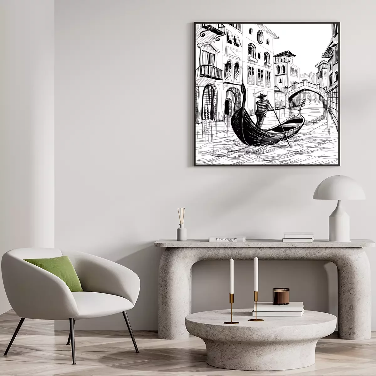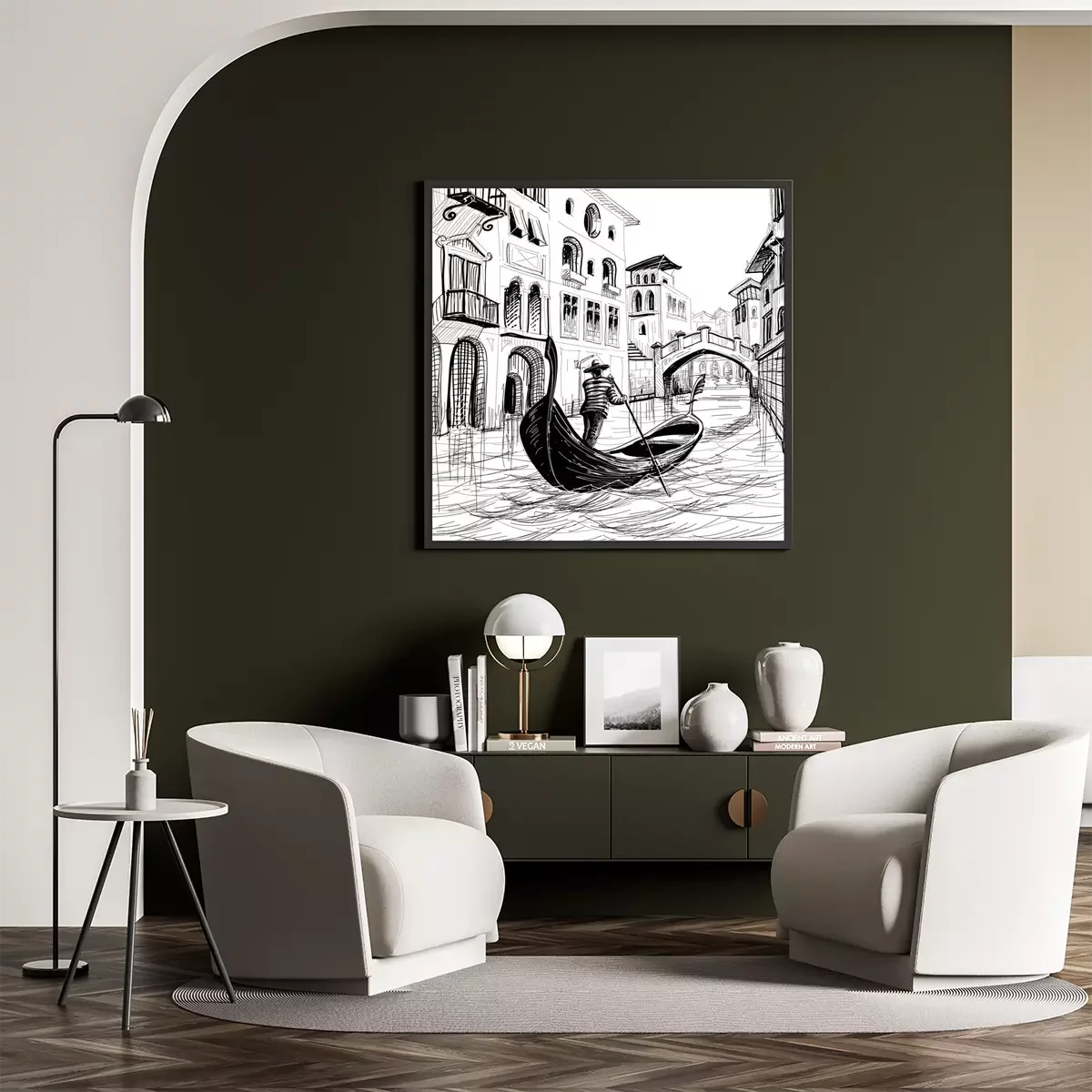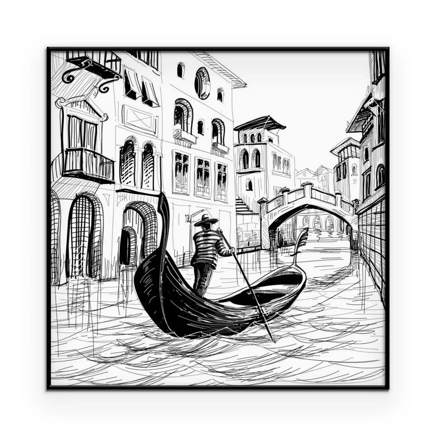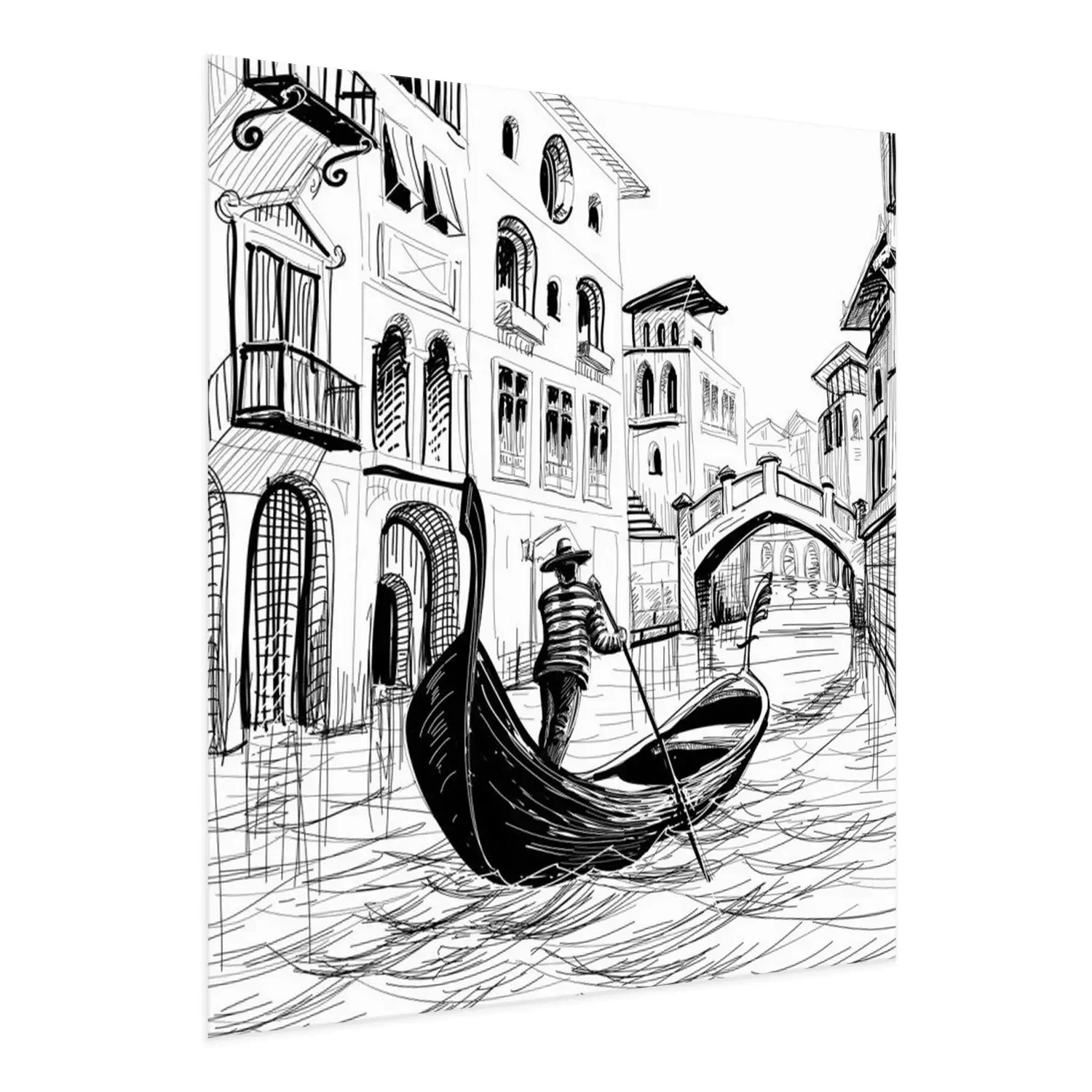 Poster Schets van een Venetiaanse gondel