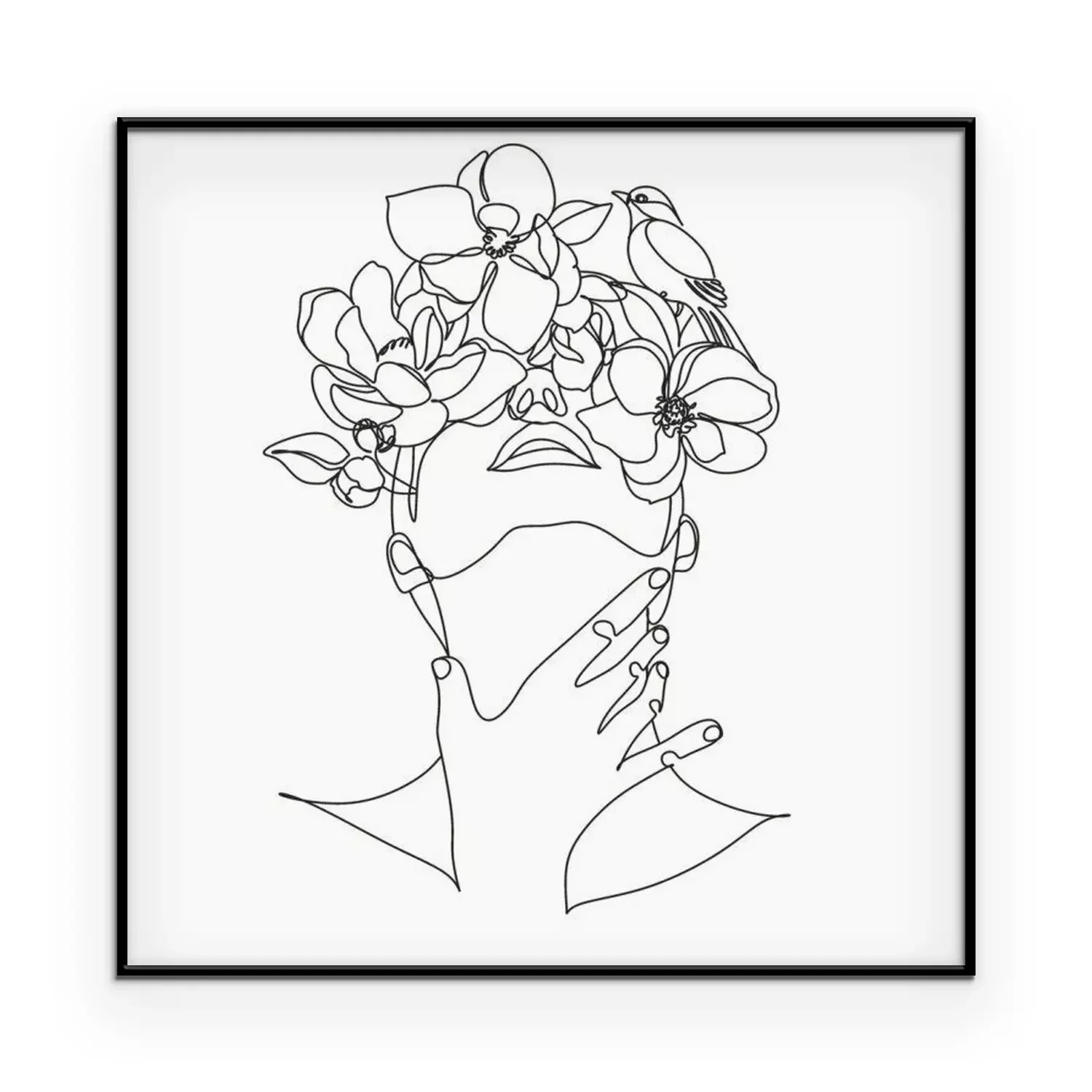 Poster: Schets van een vrouwelijk gezicht met bloemen