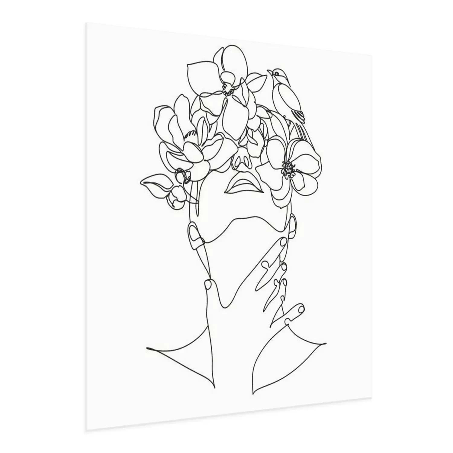 Poster Schets van een vrouwelijk gezicht met bloemen