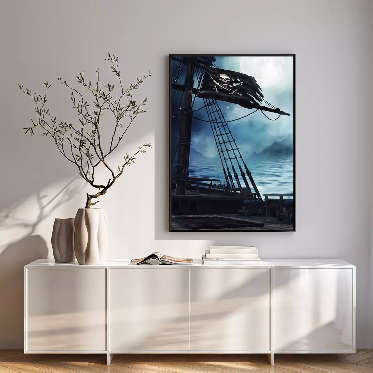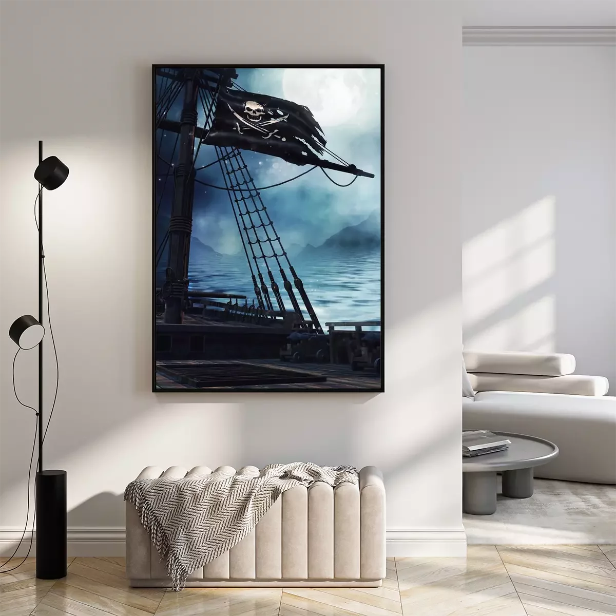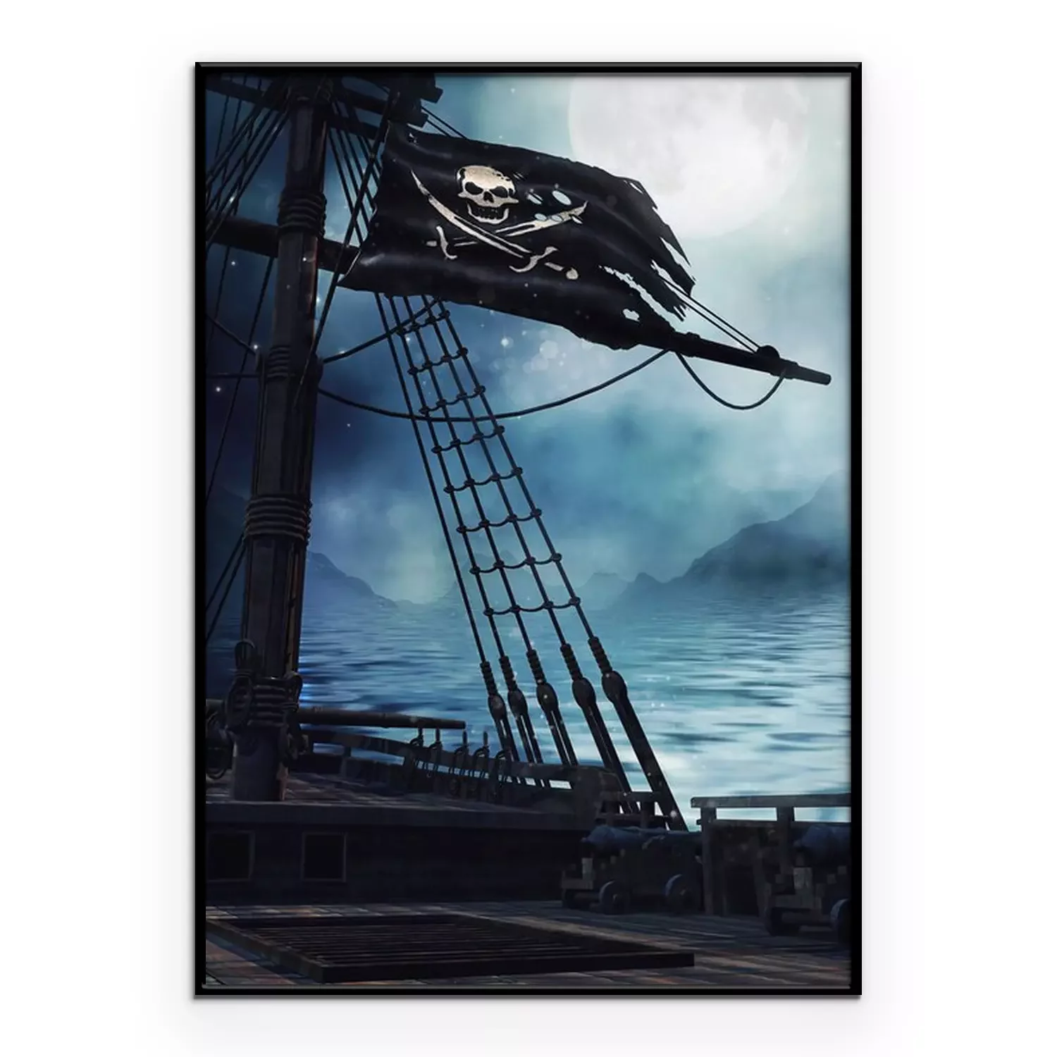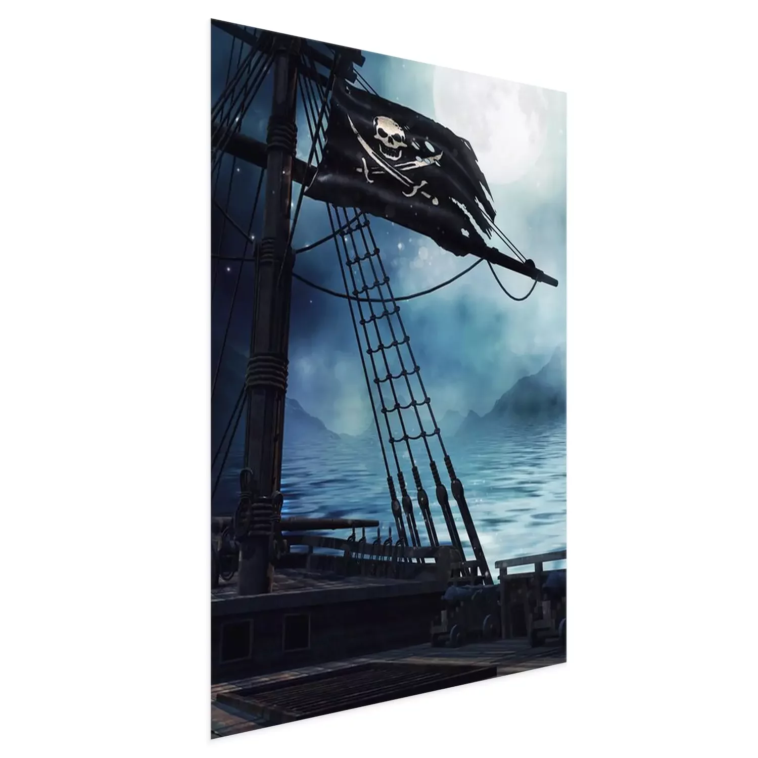 Poster: Schip en piratenvlag 's nachts