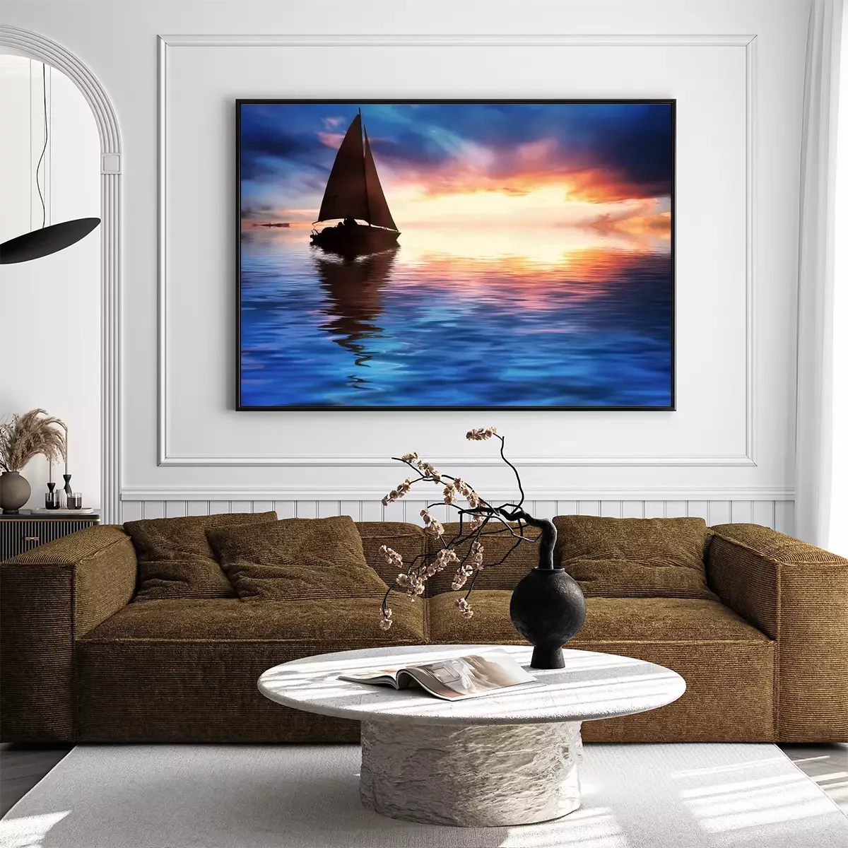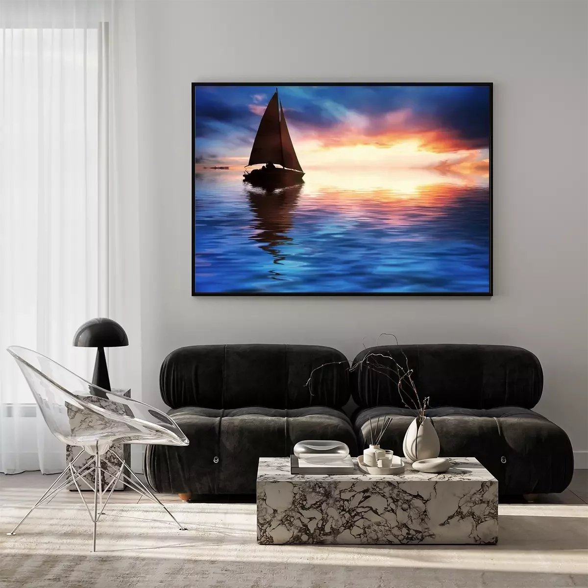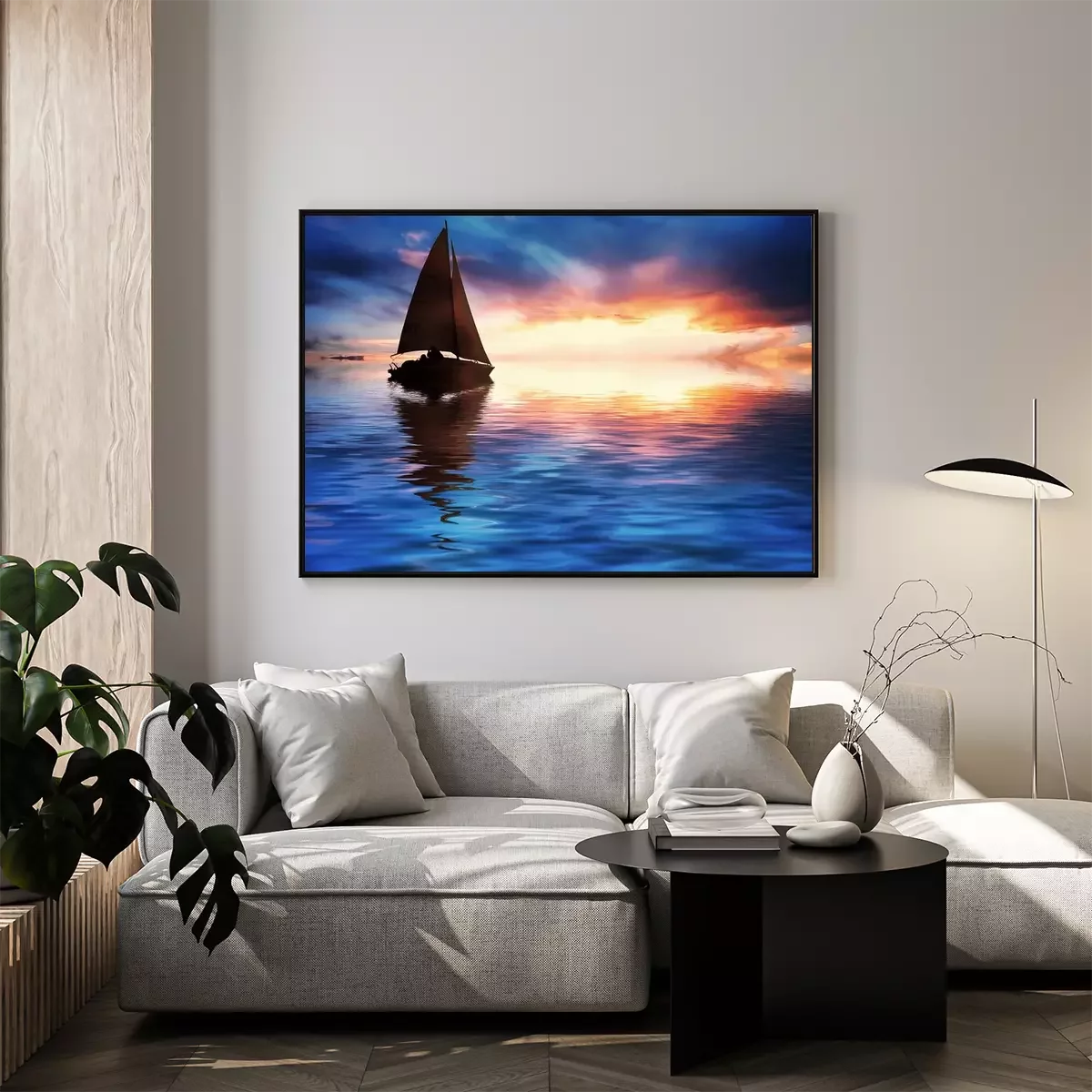 Zeilboot in de ondergaande zon