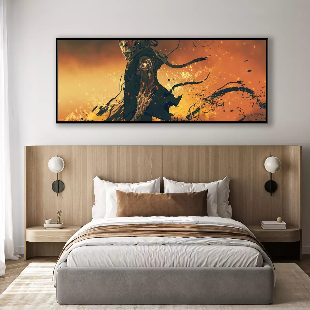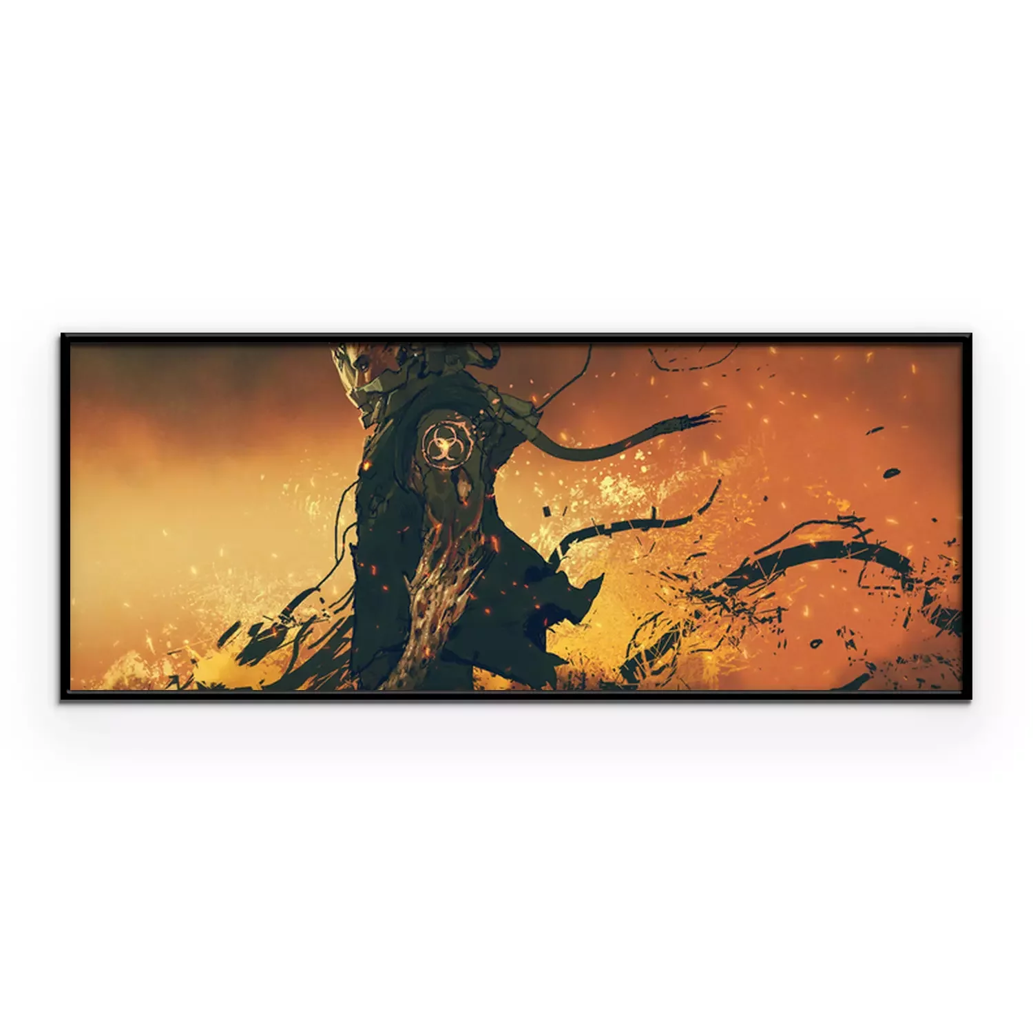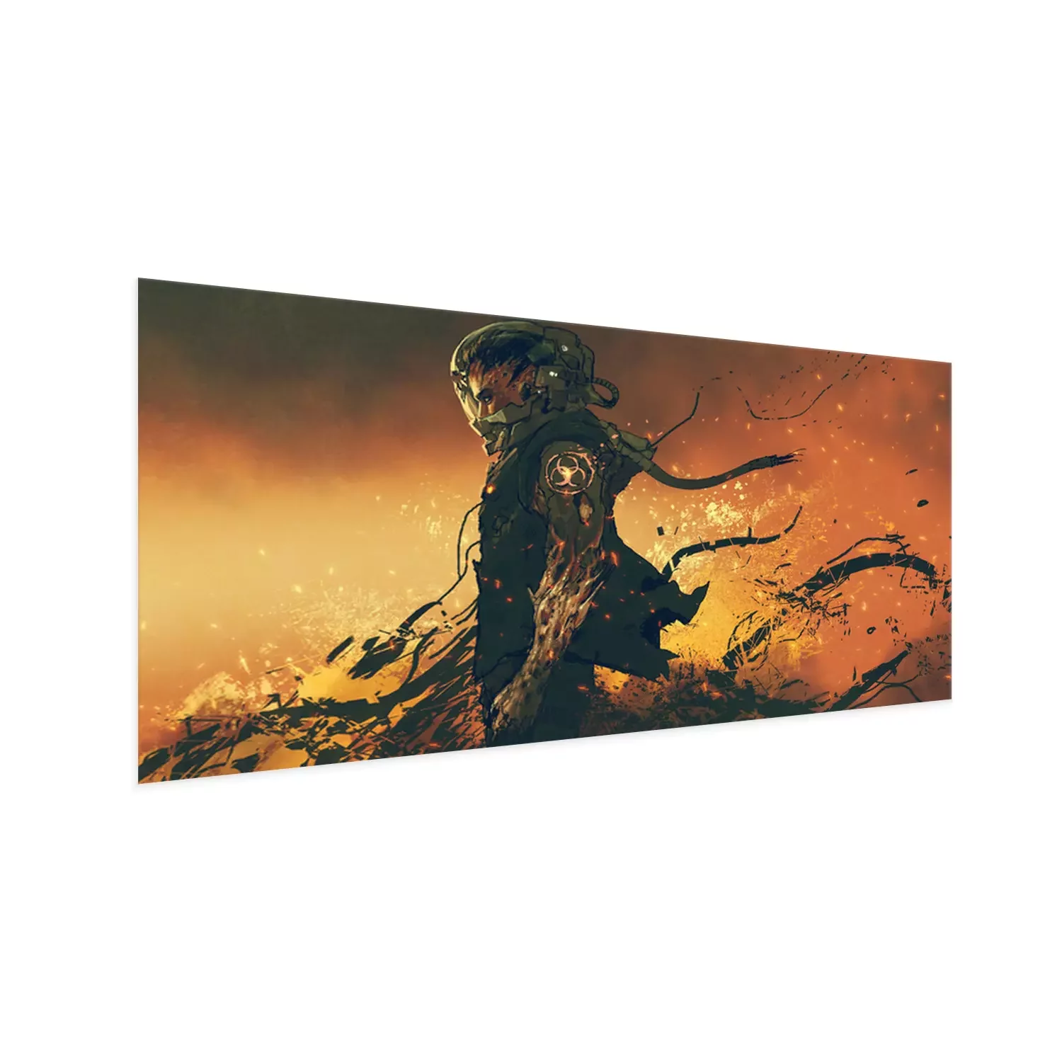 Poster: sci-fi character of an infected astronaut standing on fire, digital art style, illustration painting