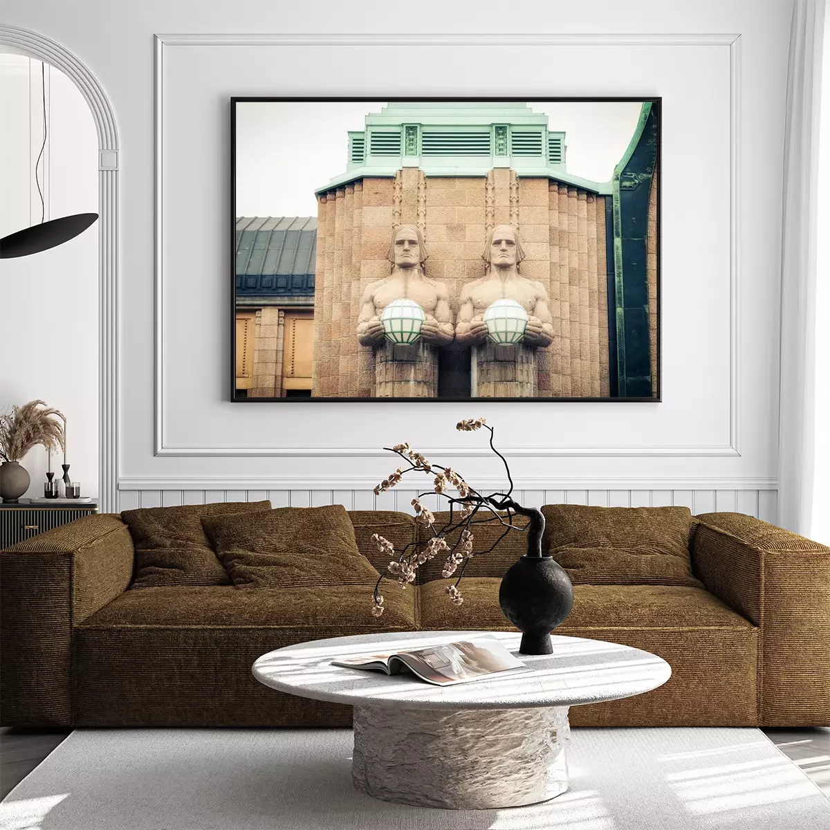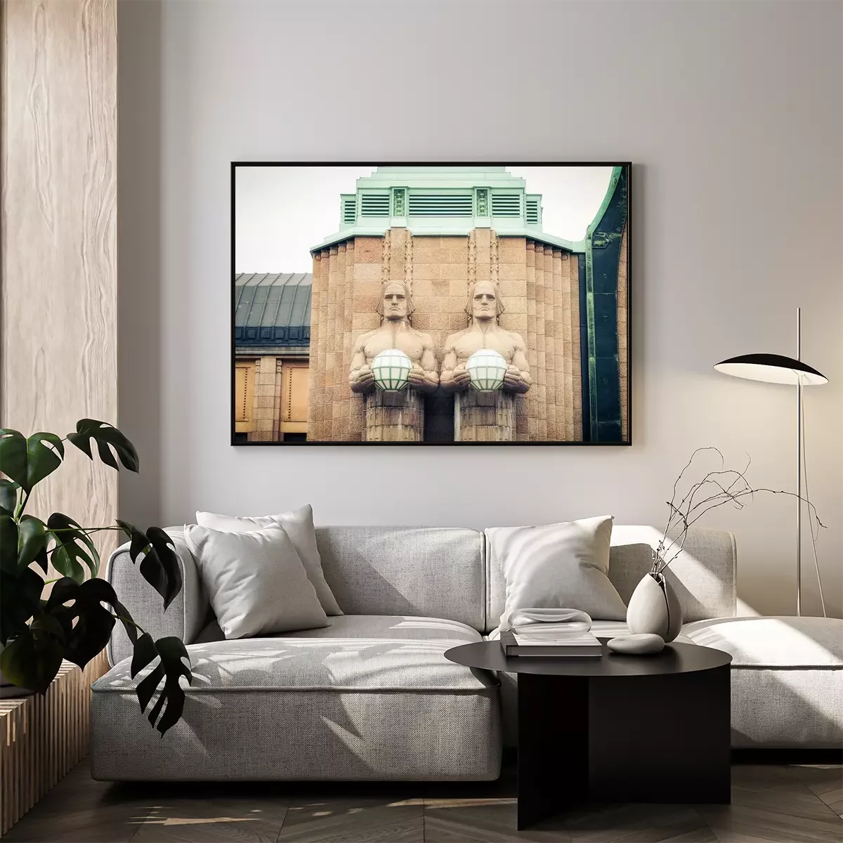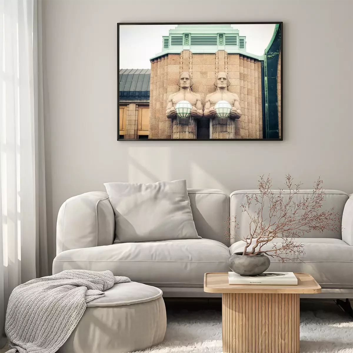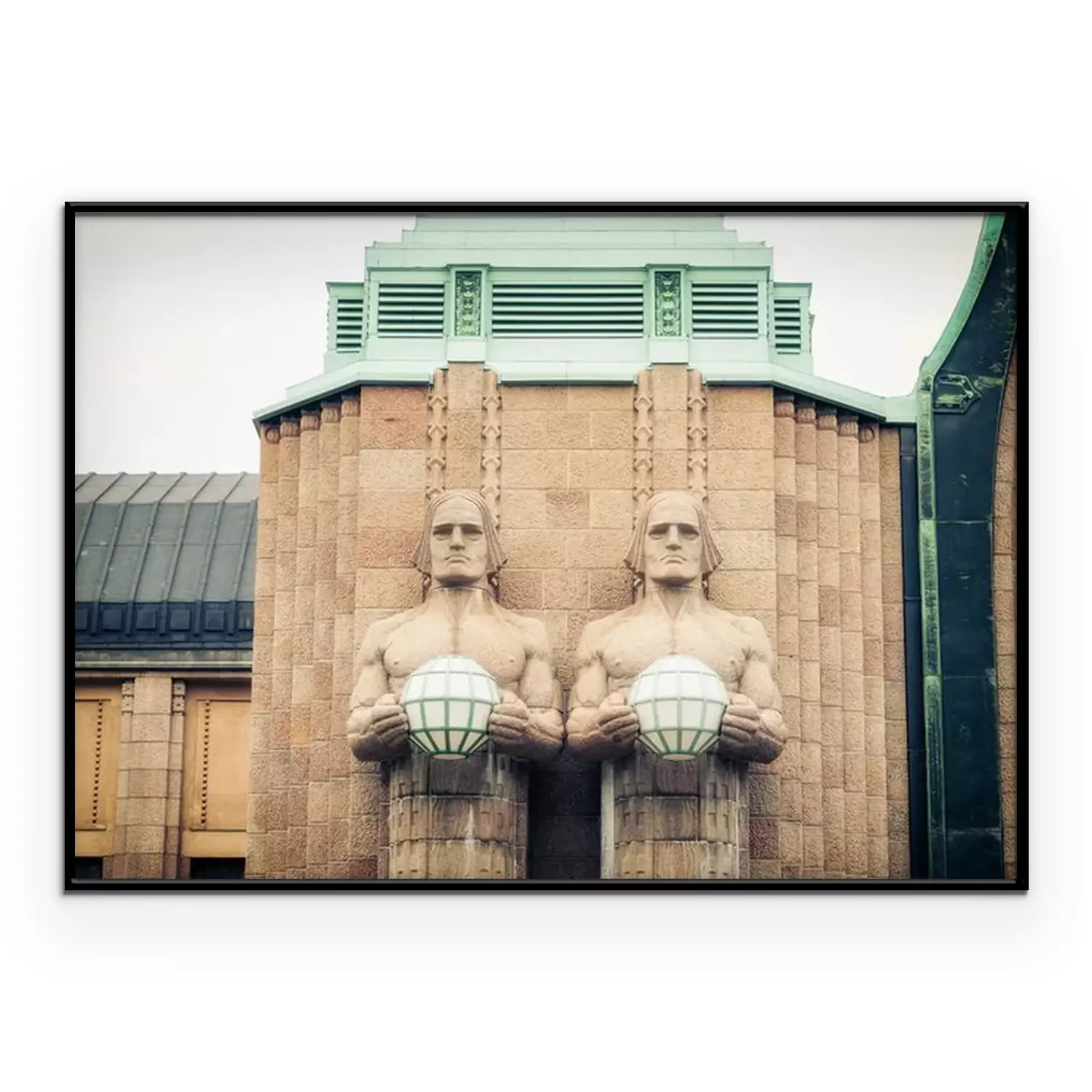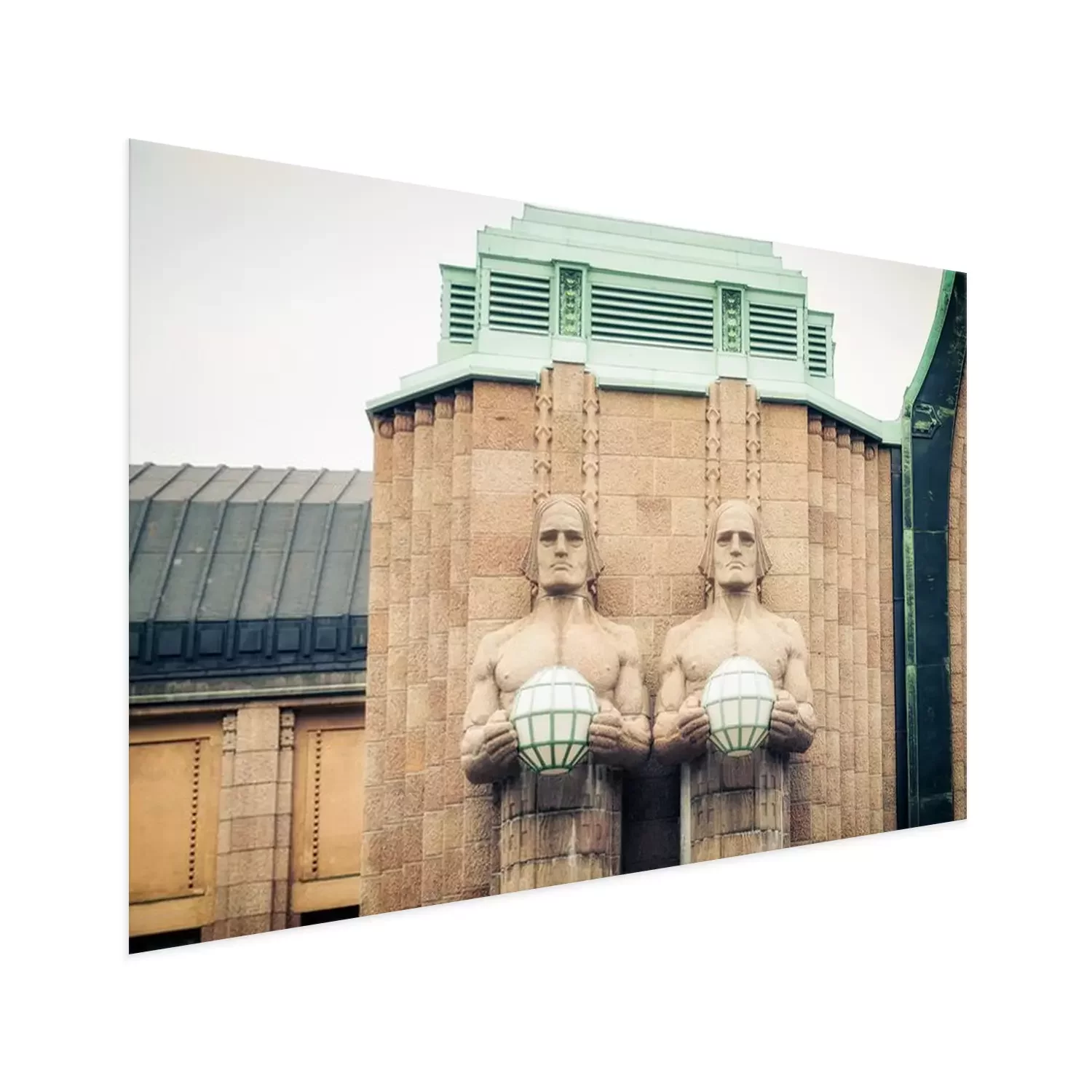 Poster: Sculpturen op de gevel van het centraal station van Helsinki