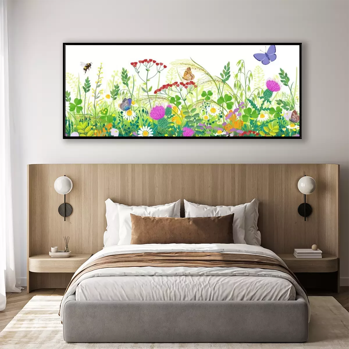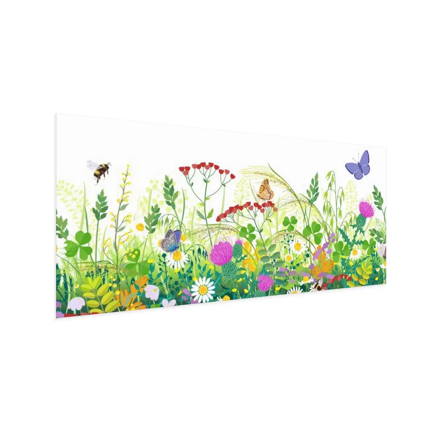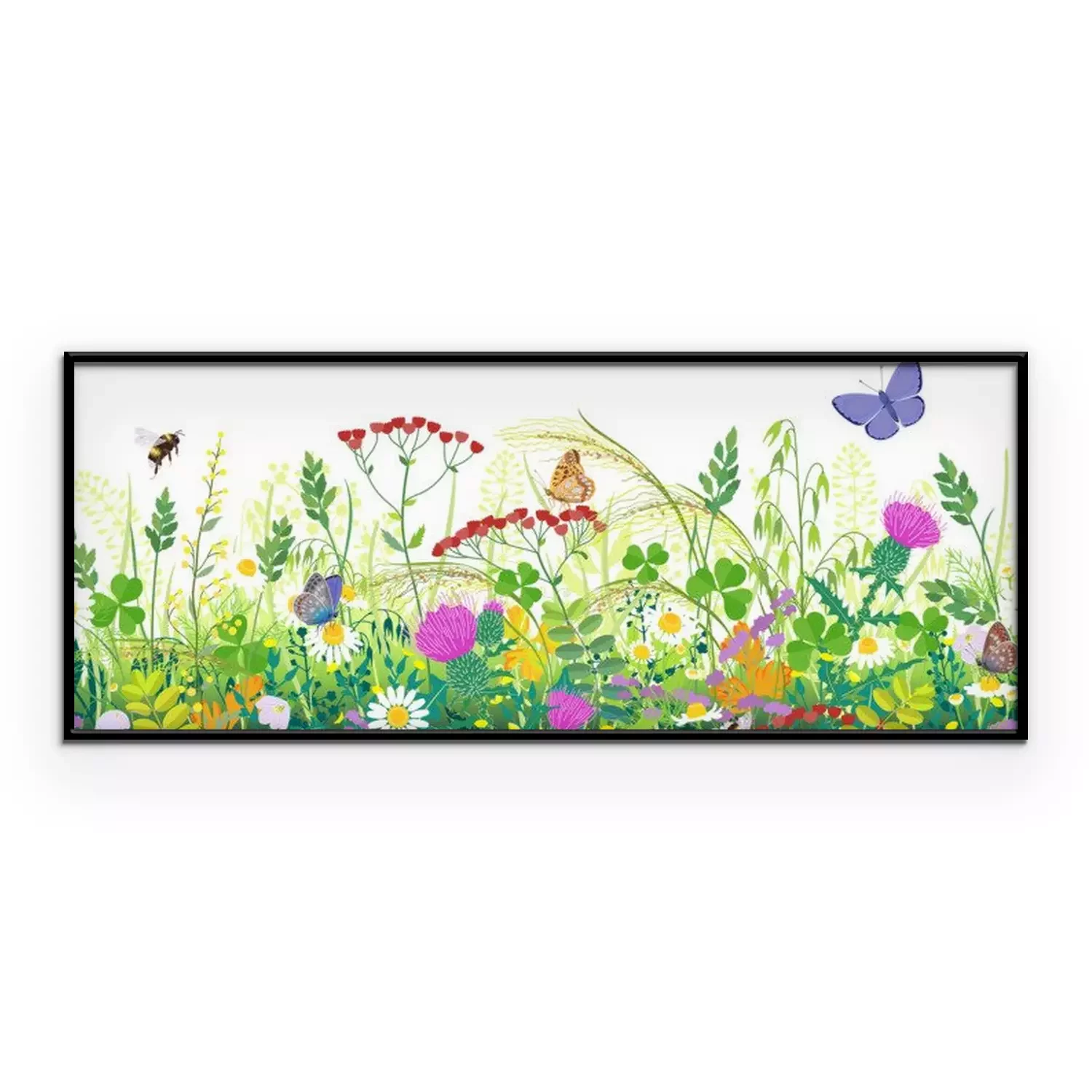 Poster: Seamless Border with Summer Meadow Plants and Insects