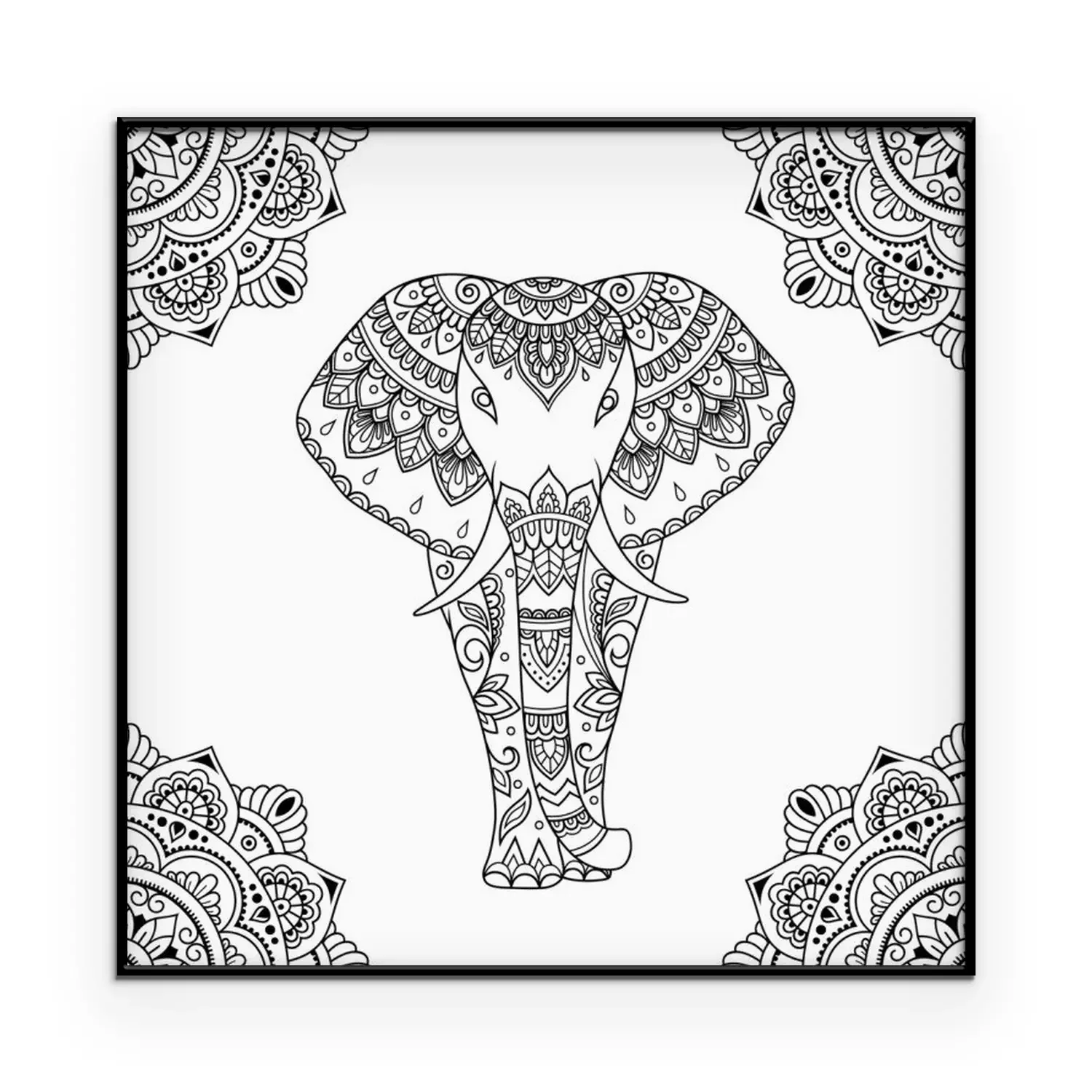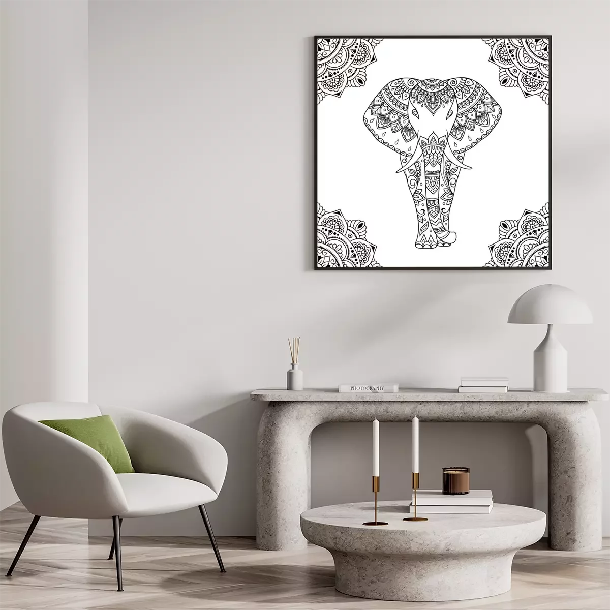 Poster Seamless decorative ornament in ethnic oriental style. Circular pattern in form of mandala and African elephant for Henna, Mehndi, tattoo, decoration.