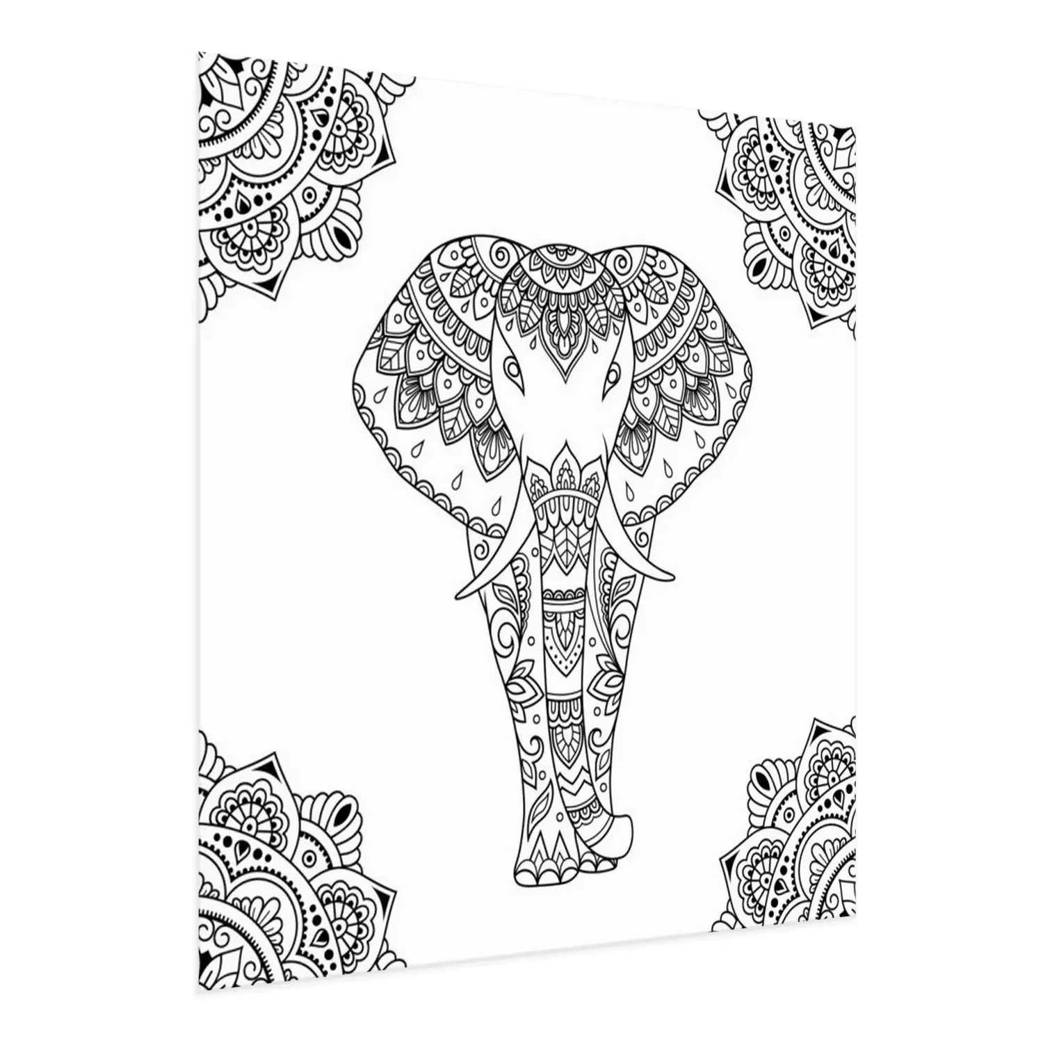 Poster: Seamless decorative ornament in ethnic oriental style. Circular pattern in form of mandala and African elephant for Henna, Mehndi, tattoo, decoration.