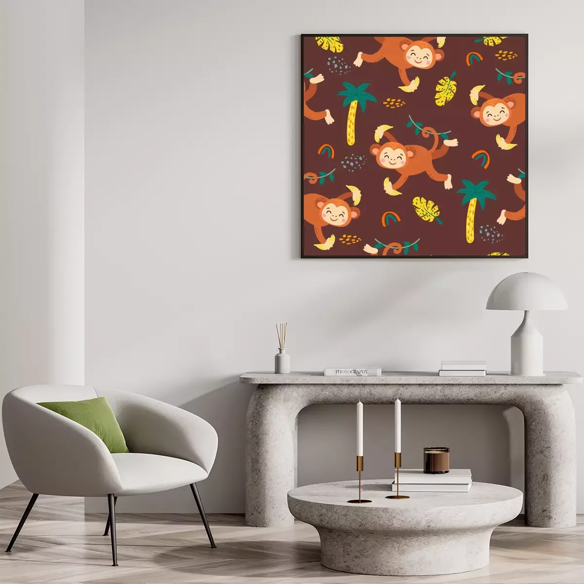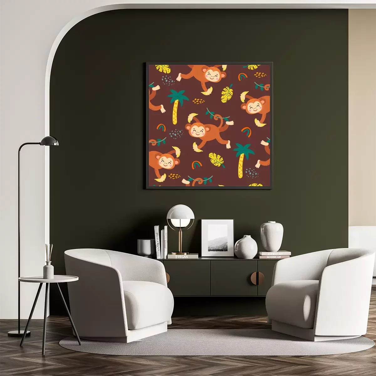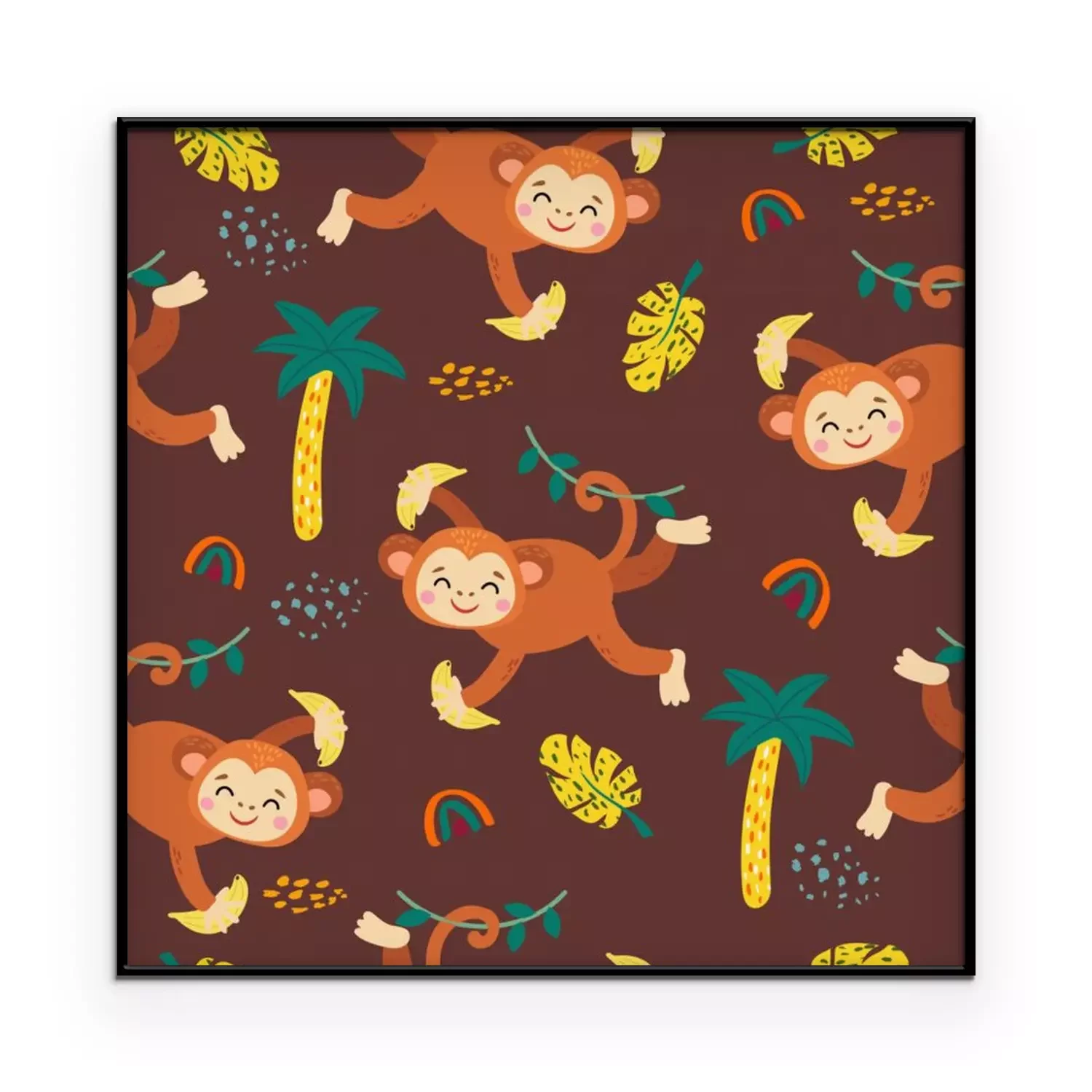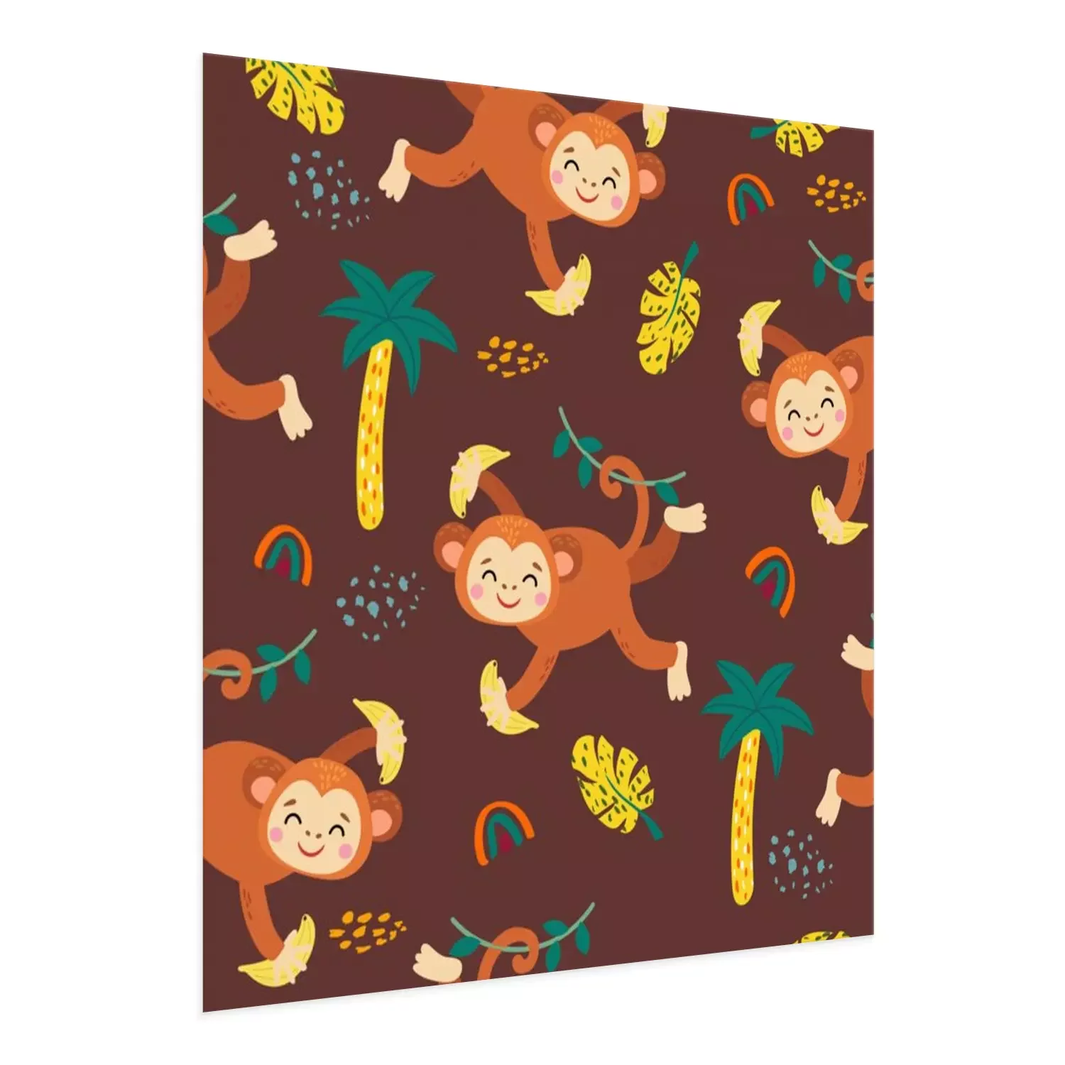 Poster: seamless pattern with monkey and plants in a childish cartoon style. vector illustration. for children's textiles and decoration
