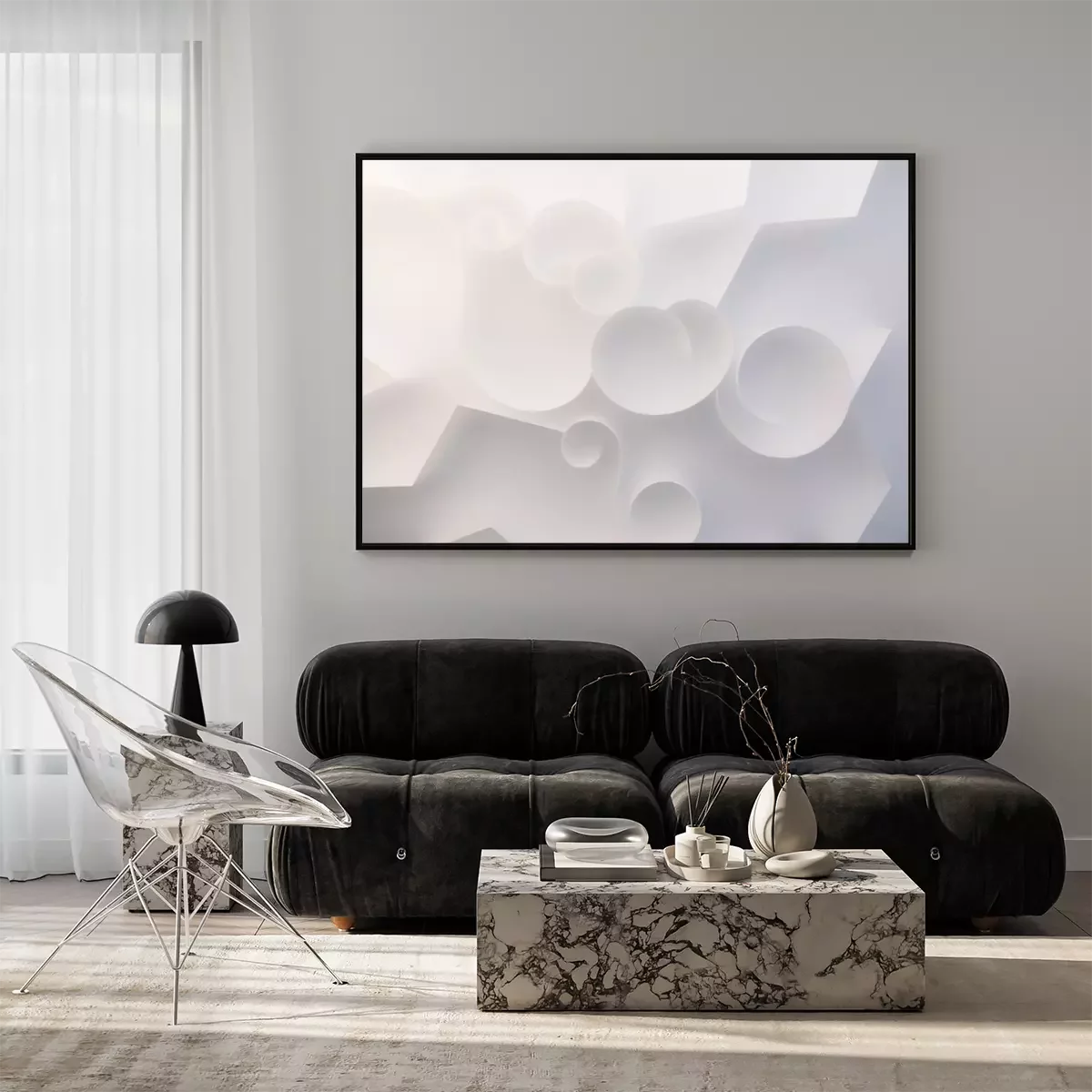 Poster: Shapes and lines on white background, abstract 3d illustration