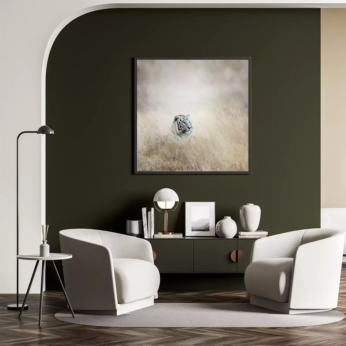Poster: Silhouet van een tijger in het gras