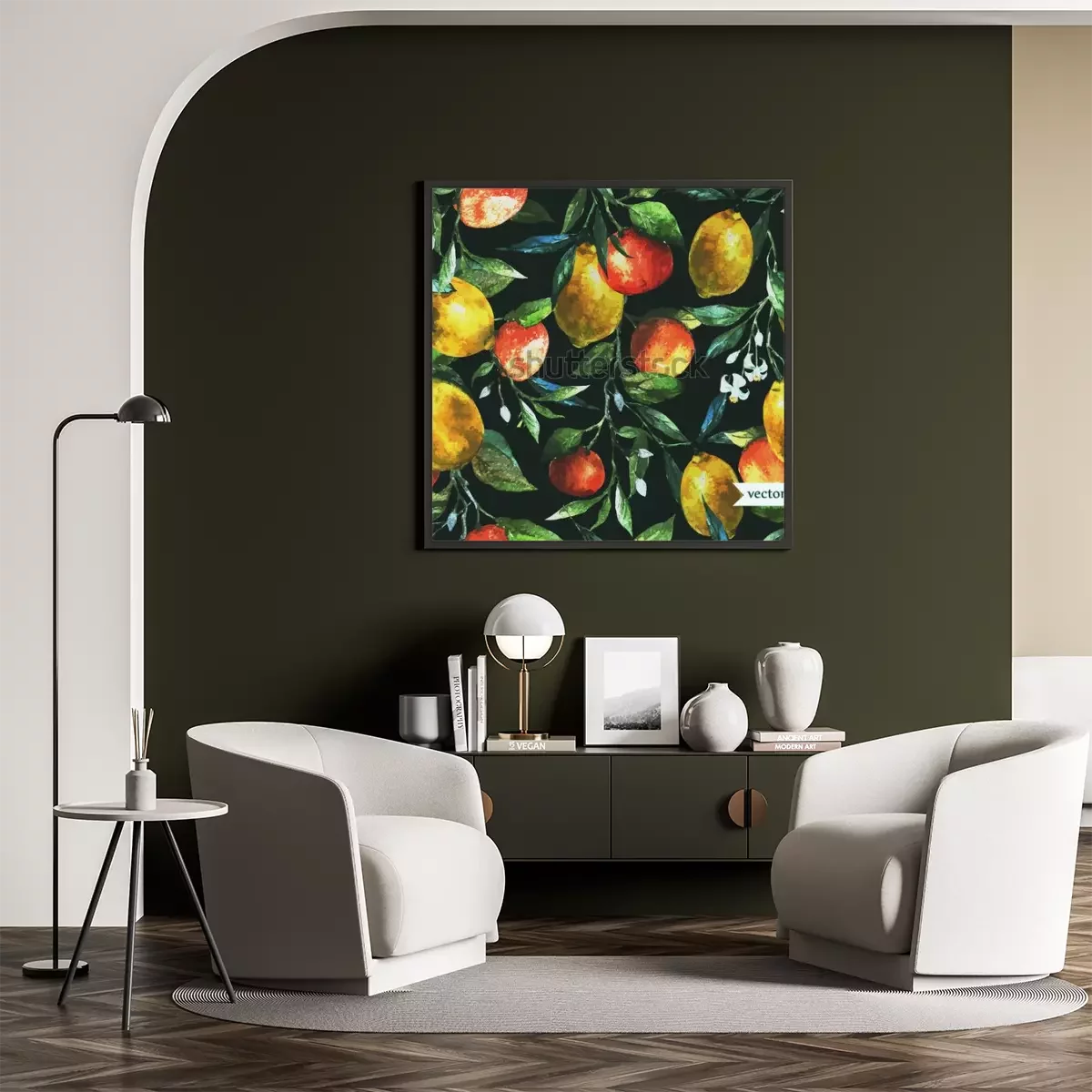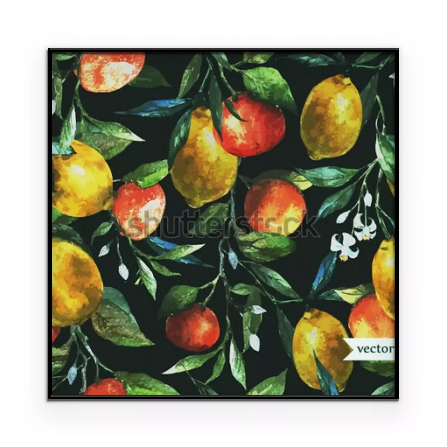 Poster sinaasappel, citroen, waterverf, achtergrond, donker, patroon