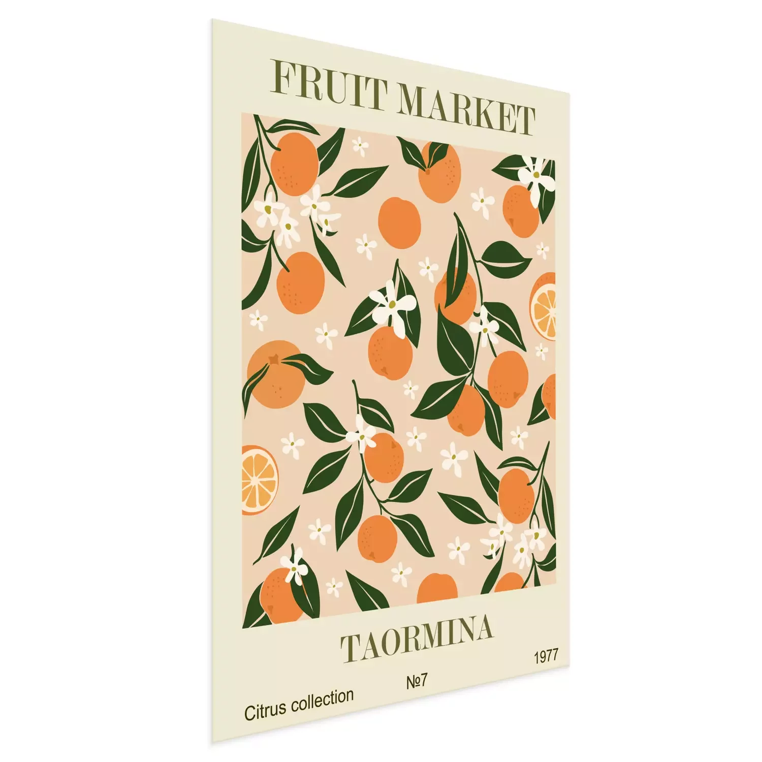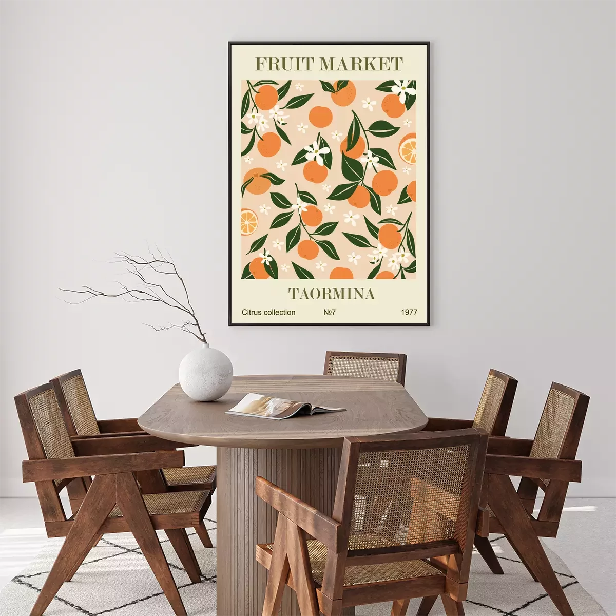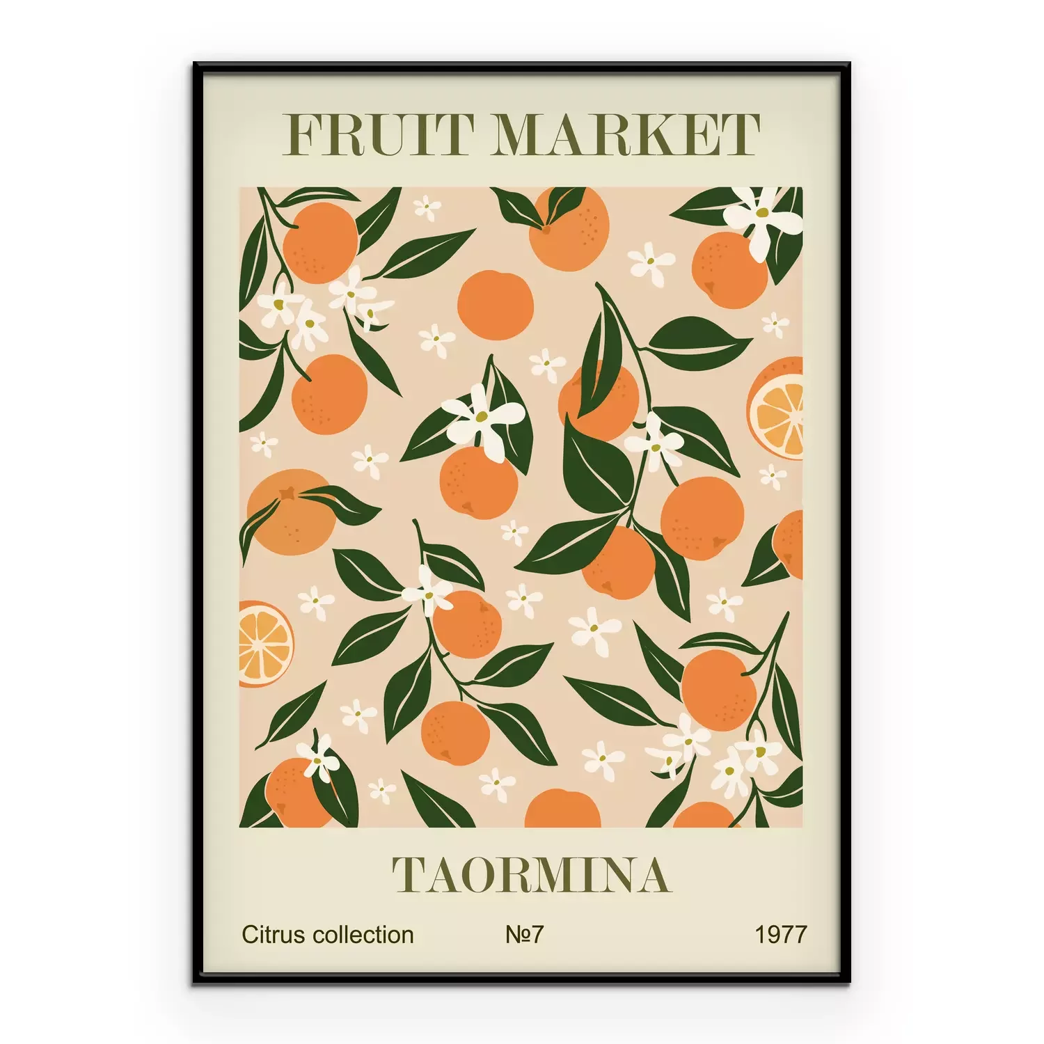 Poster: Sinaasappels en witte bloemen op boomtakken