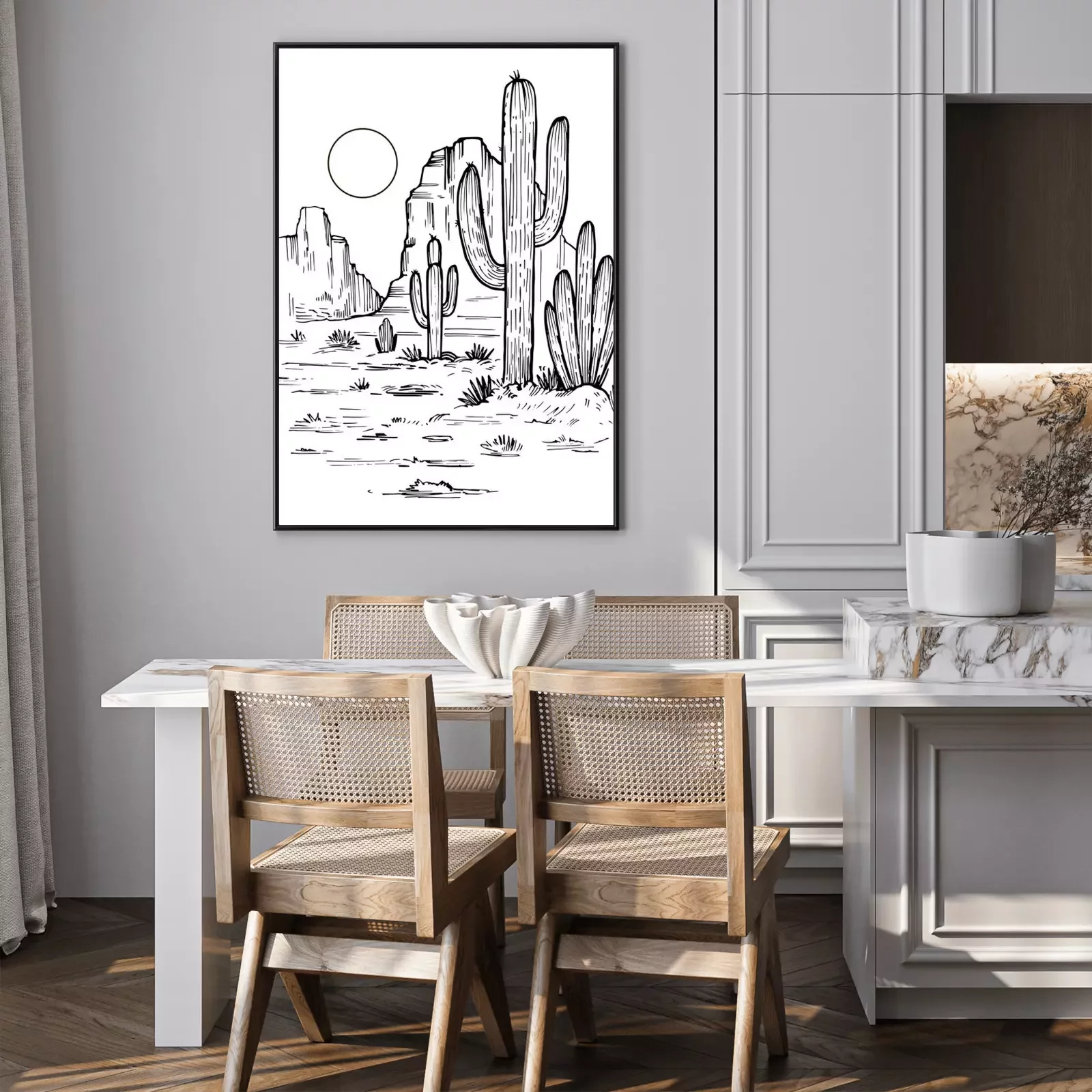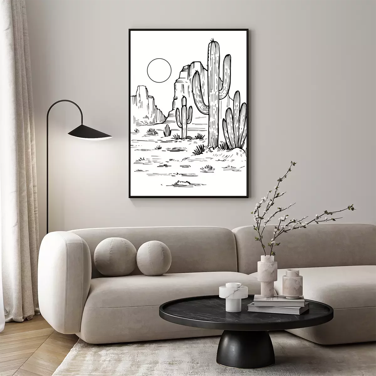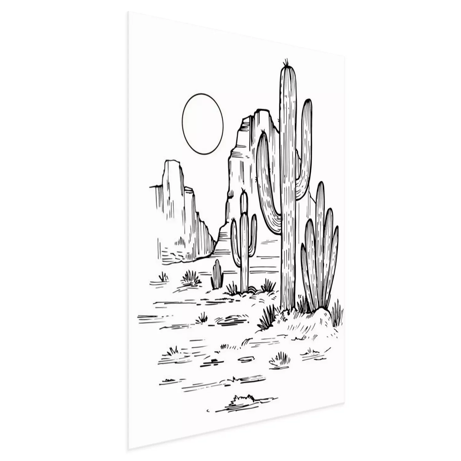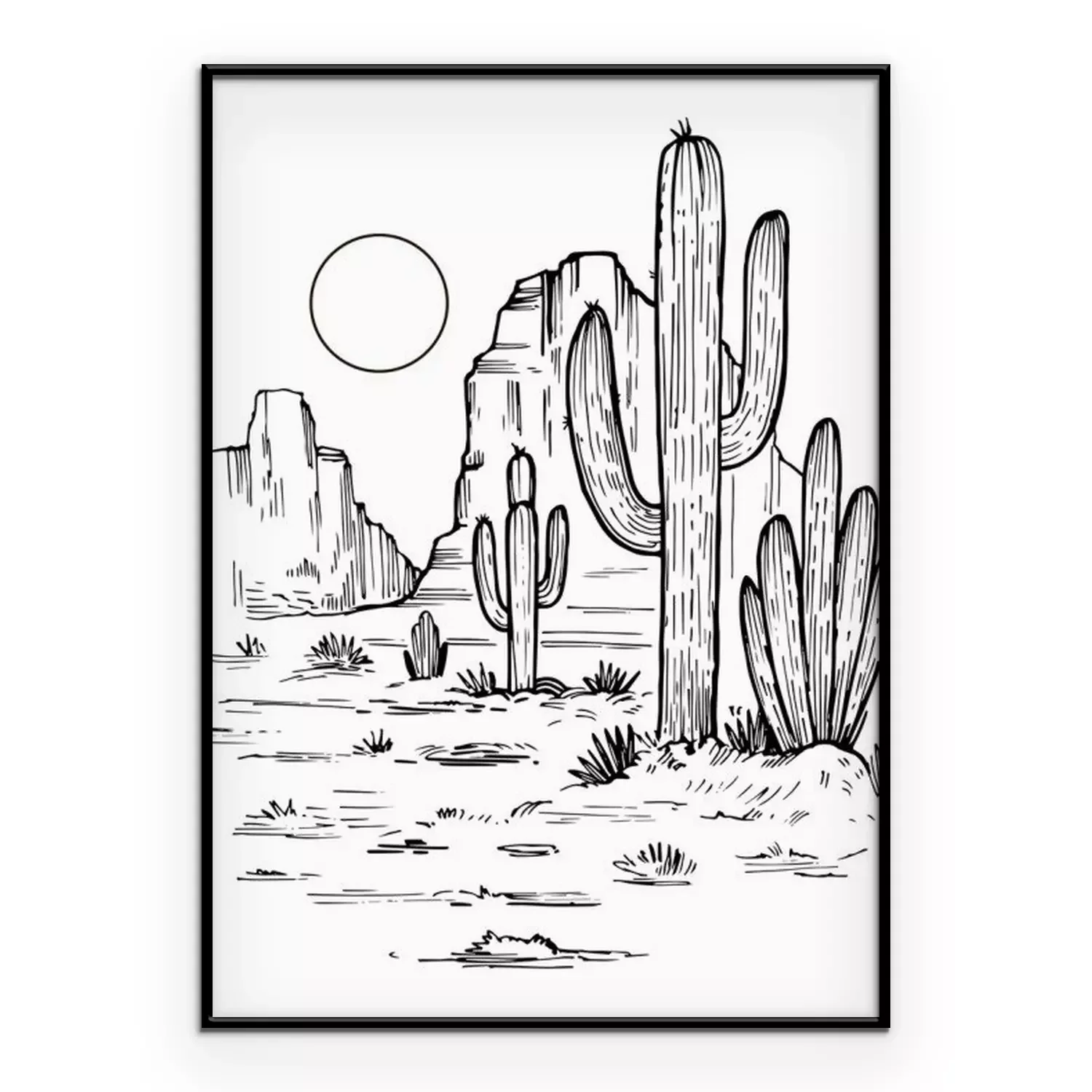 Poster Sketch of the desert of America with cacti. Prairie landscape. Hand drawn vector illustration