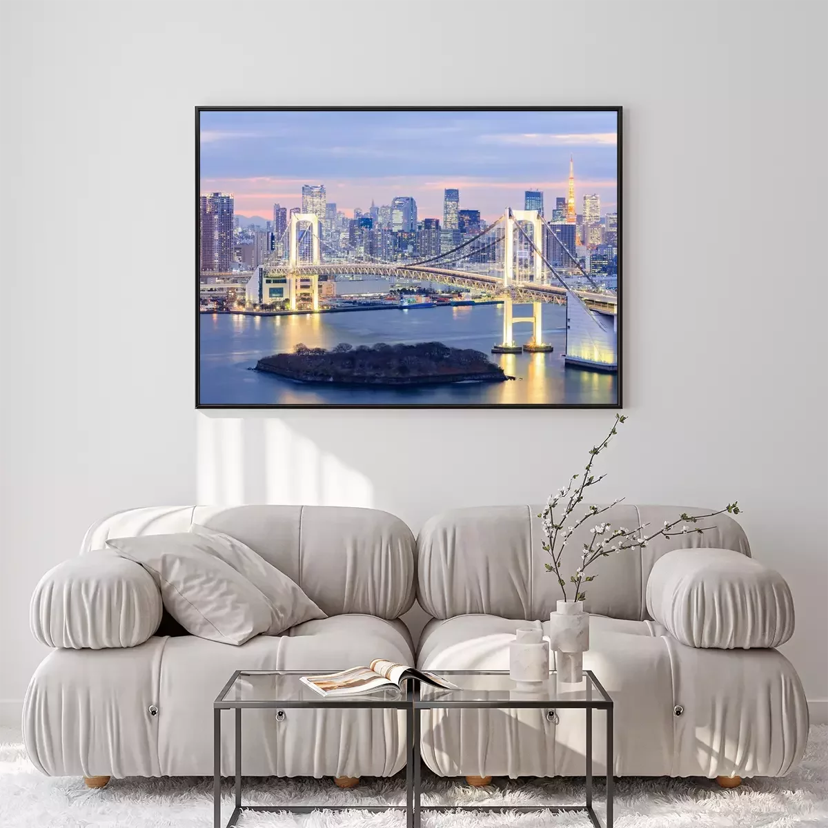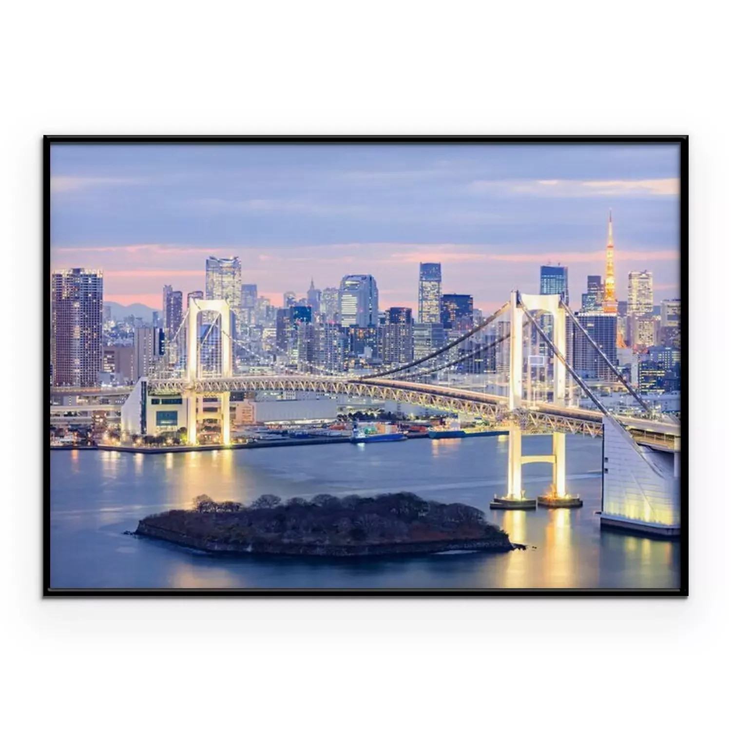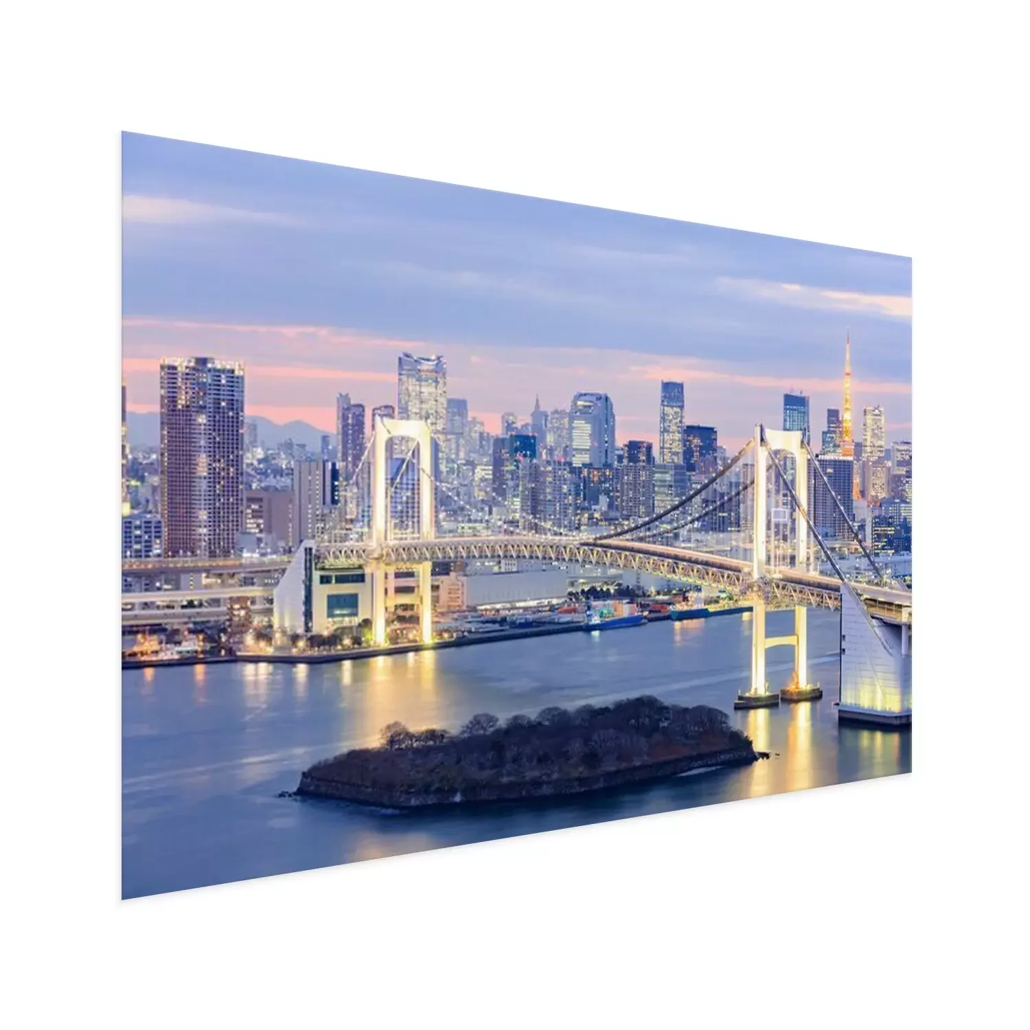 Poster skyline met Tokyo Tower en de regenboog brug van Tokyo