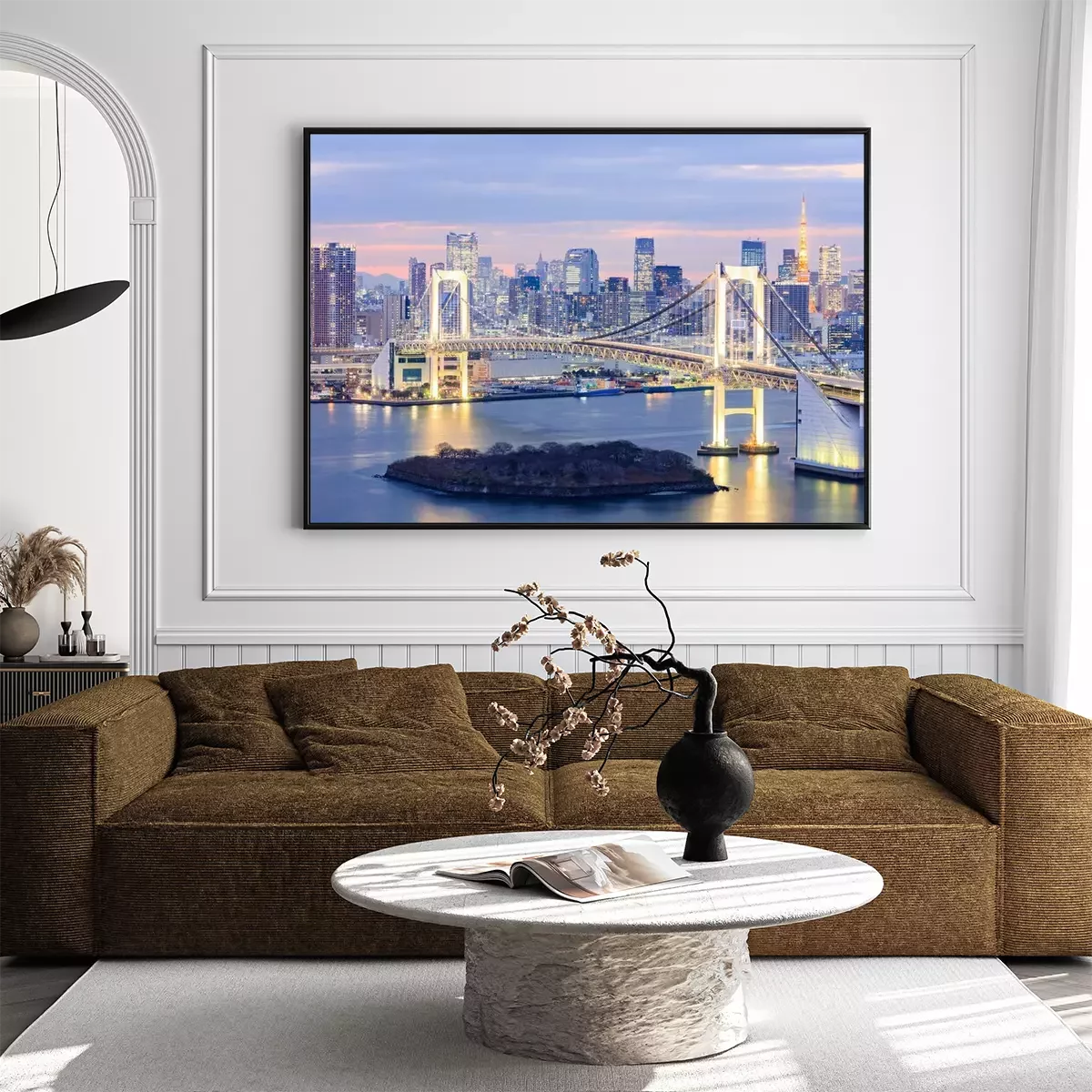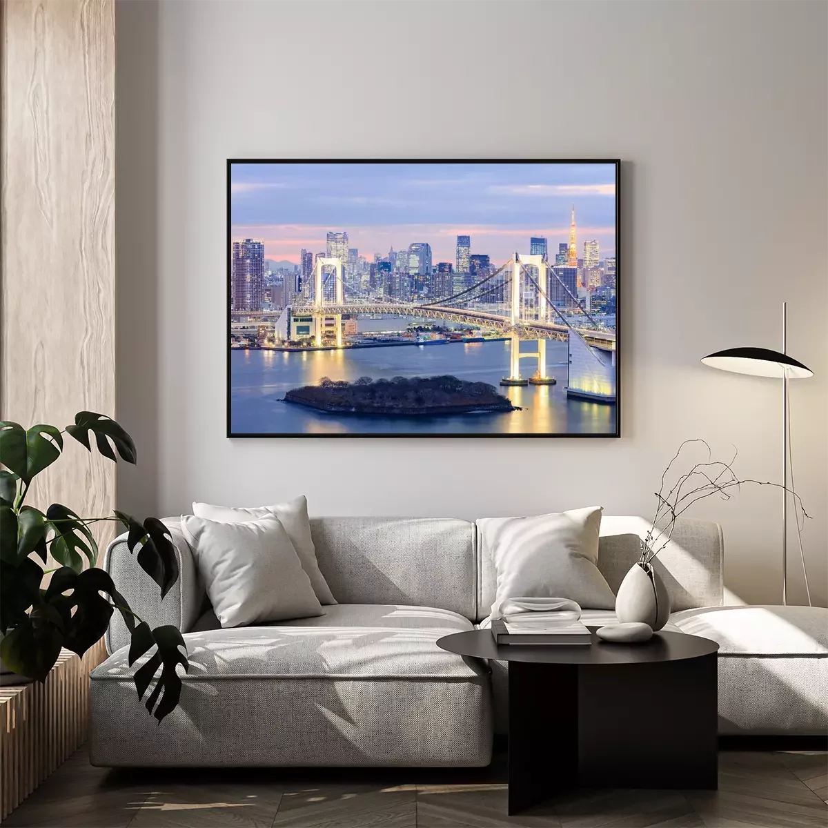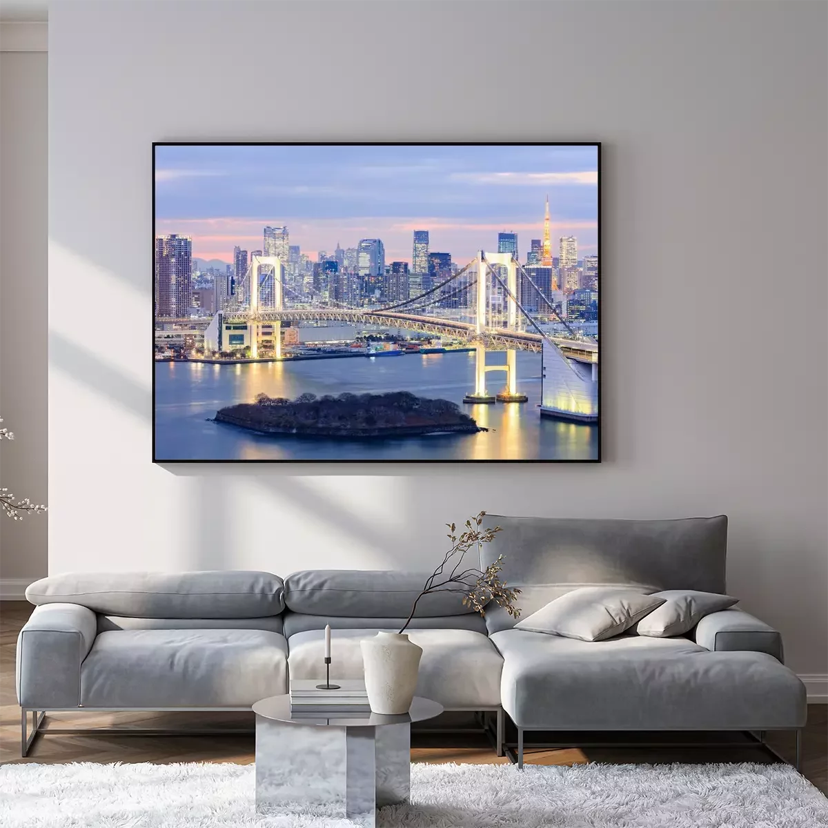 Poster skyline met Tokyo Tower en de regenboog brug van Tokyo