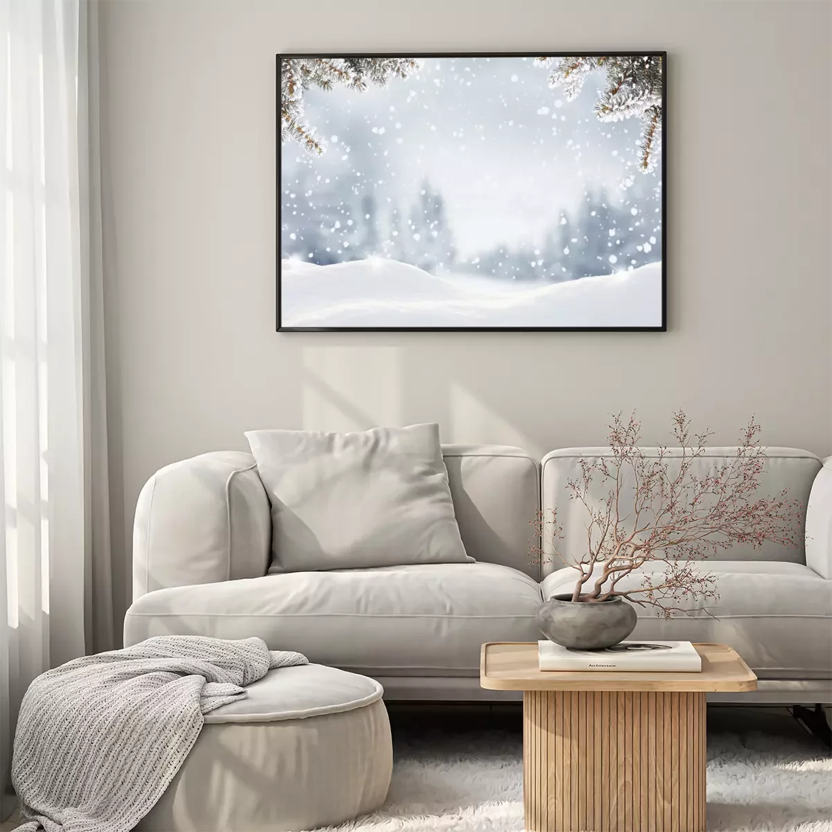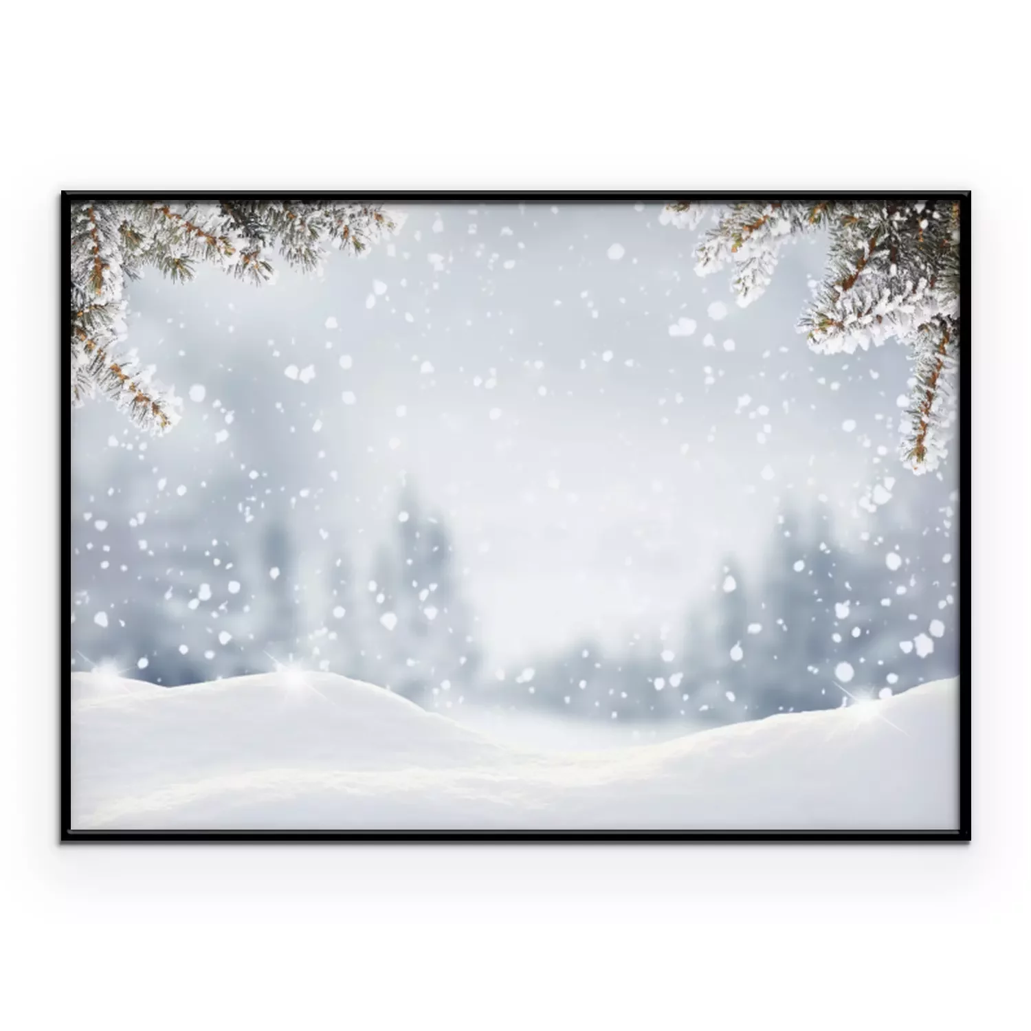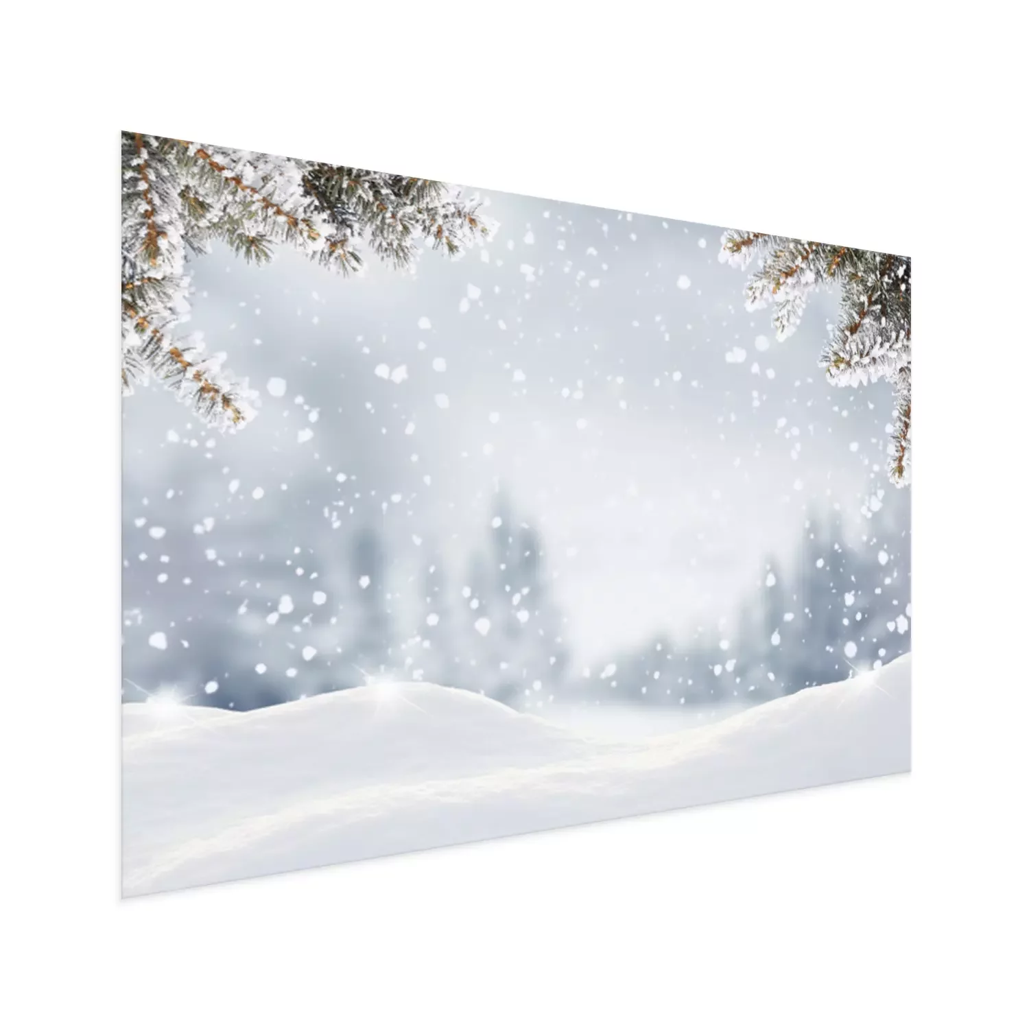 Poster: Sneeuwvlokken vallen van een naaldboom