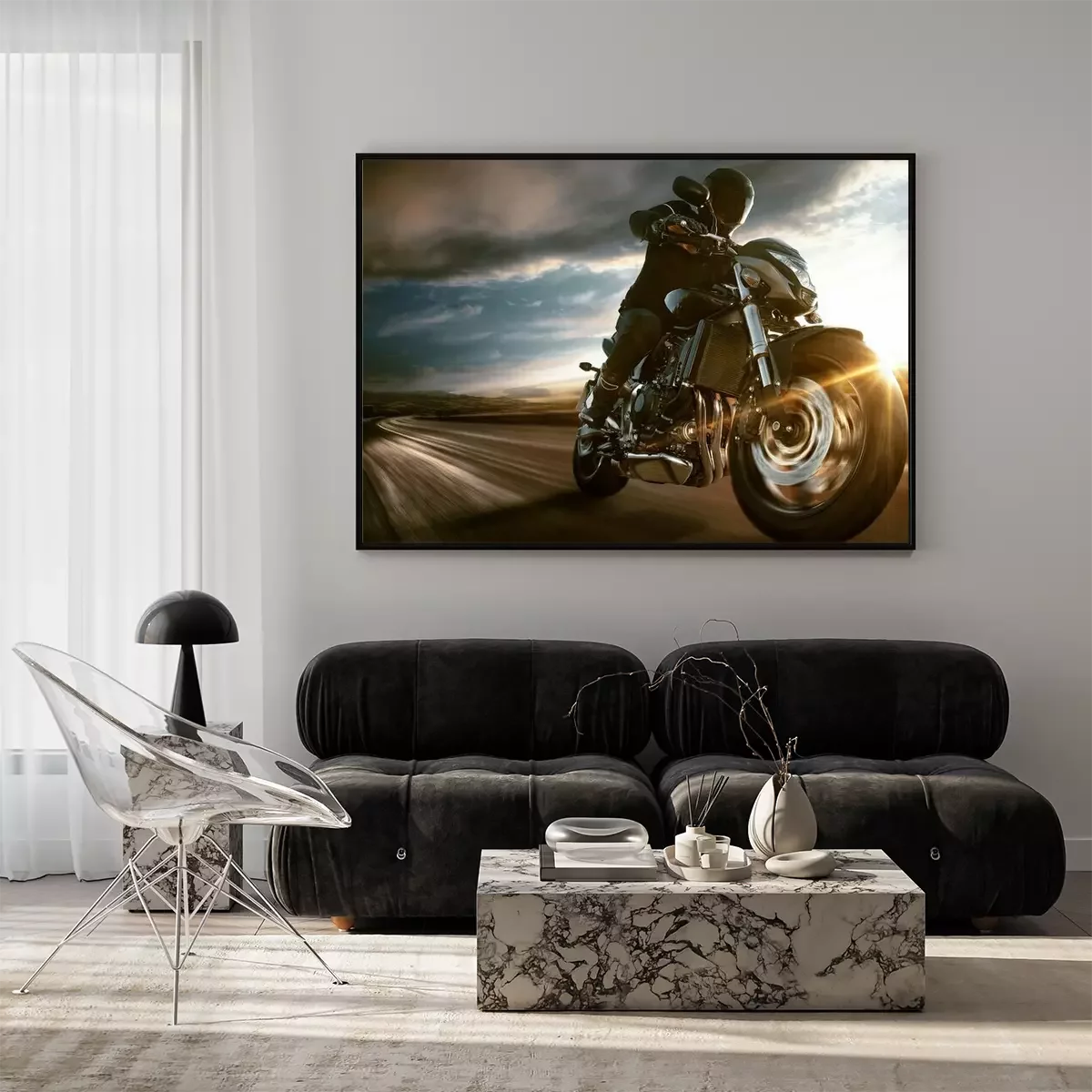 Motorfiets op de snelwegCanvas