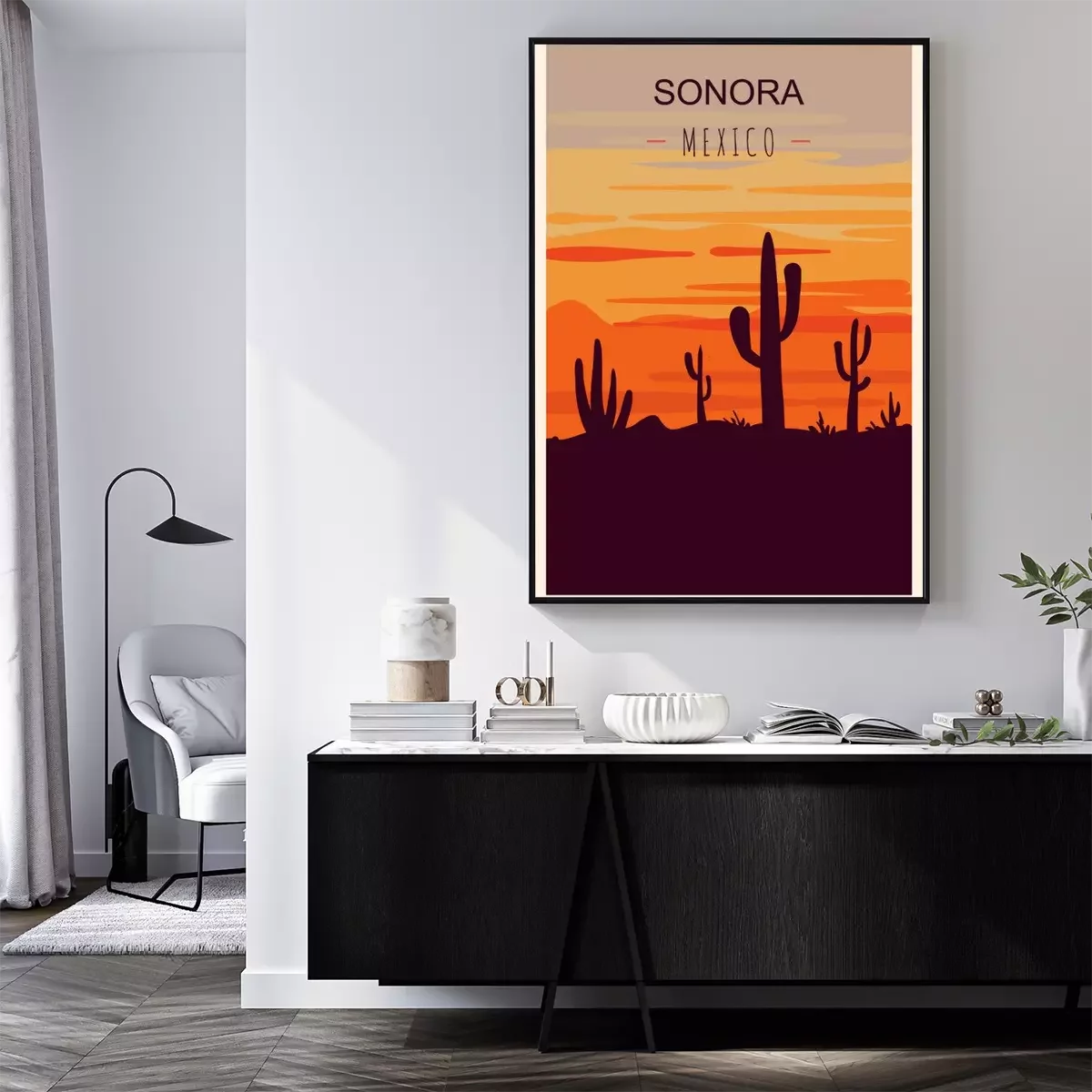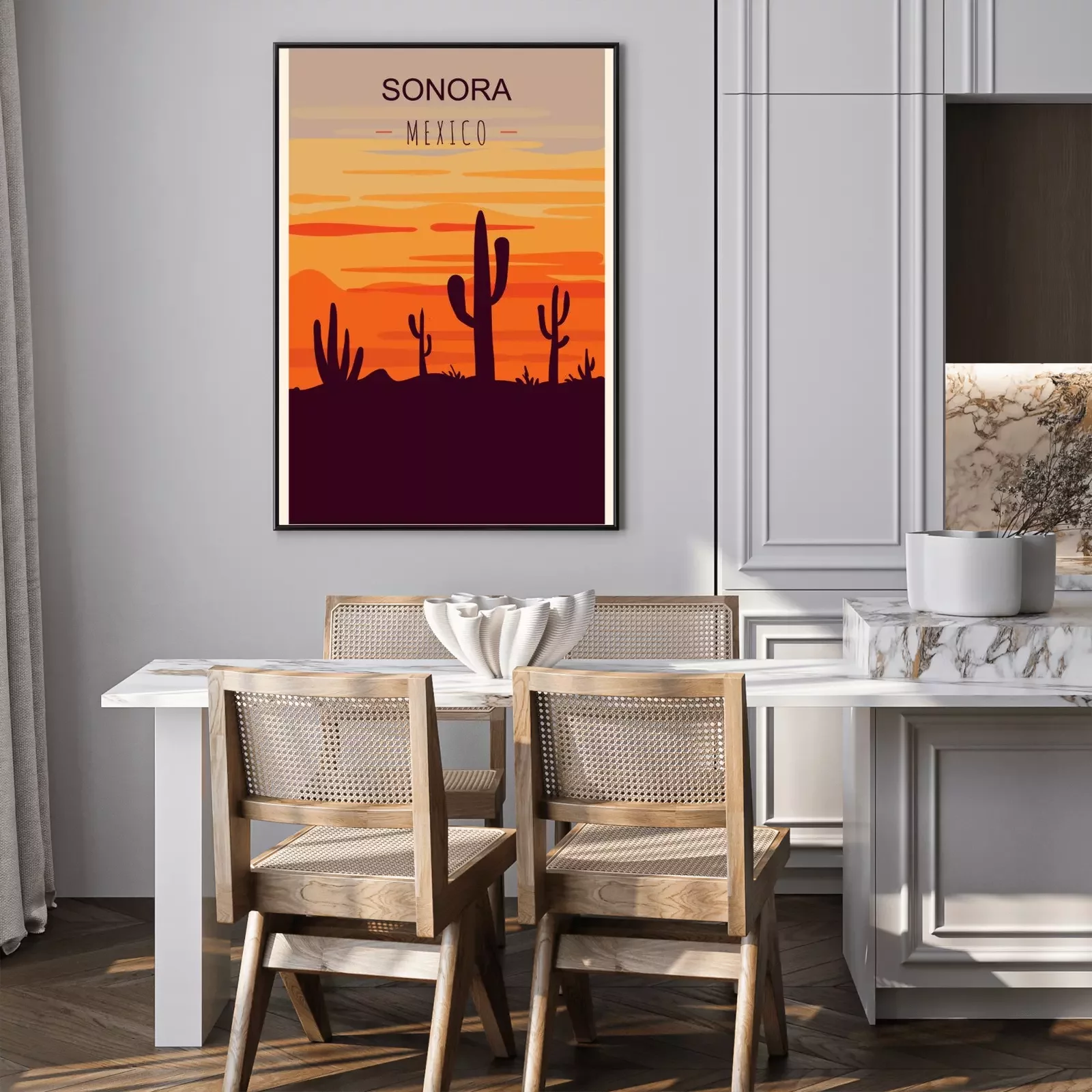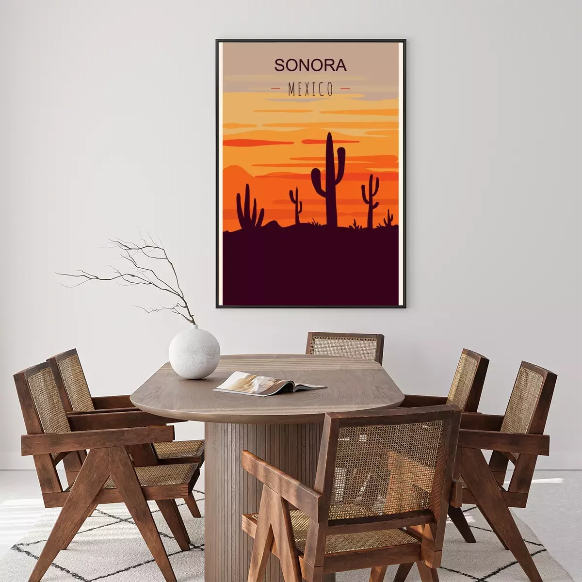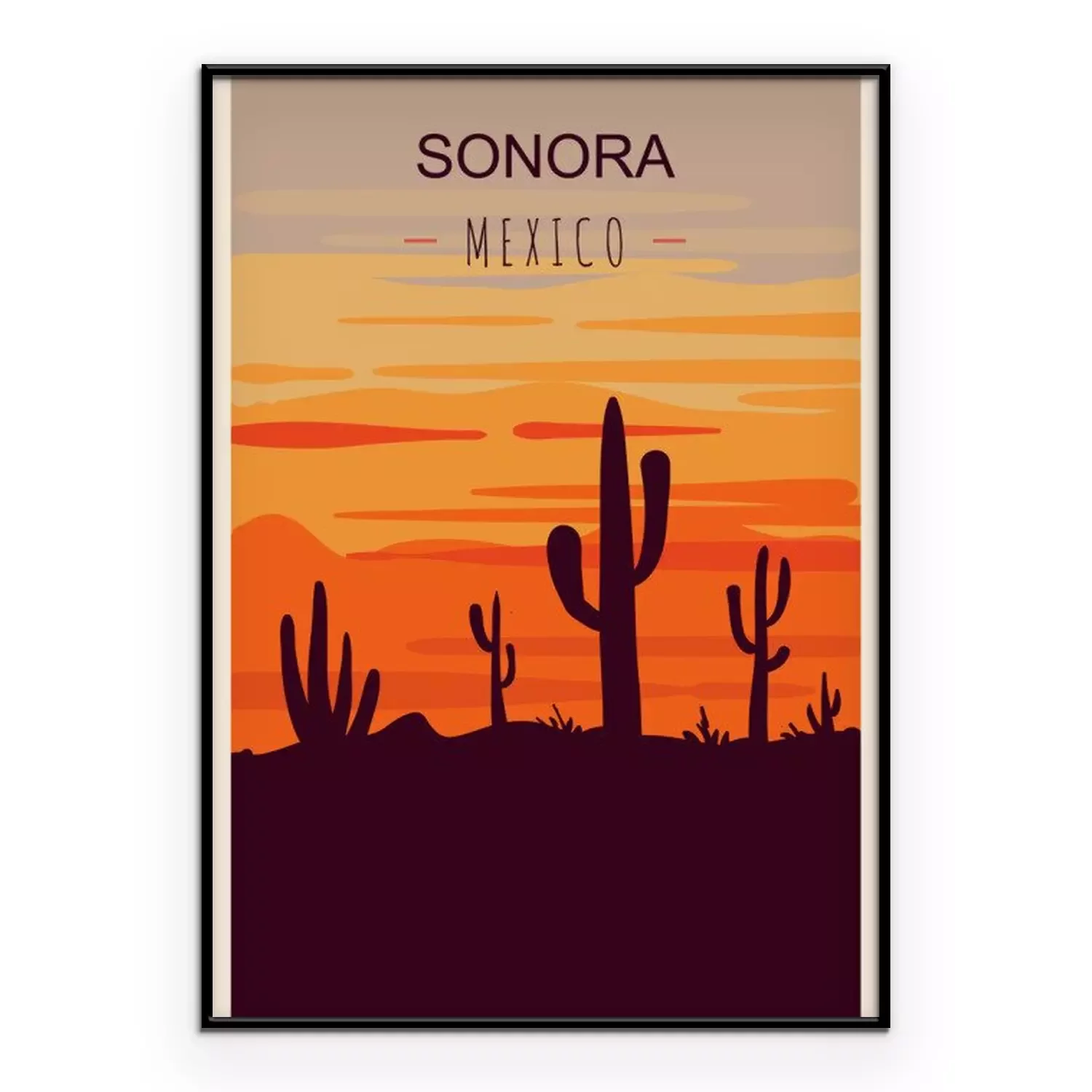 Poster: Sonora retro poster. Sonora travel illustration. States of Mexico