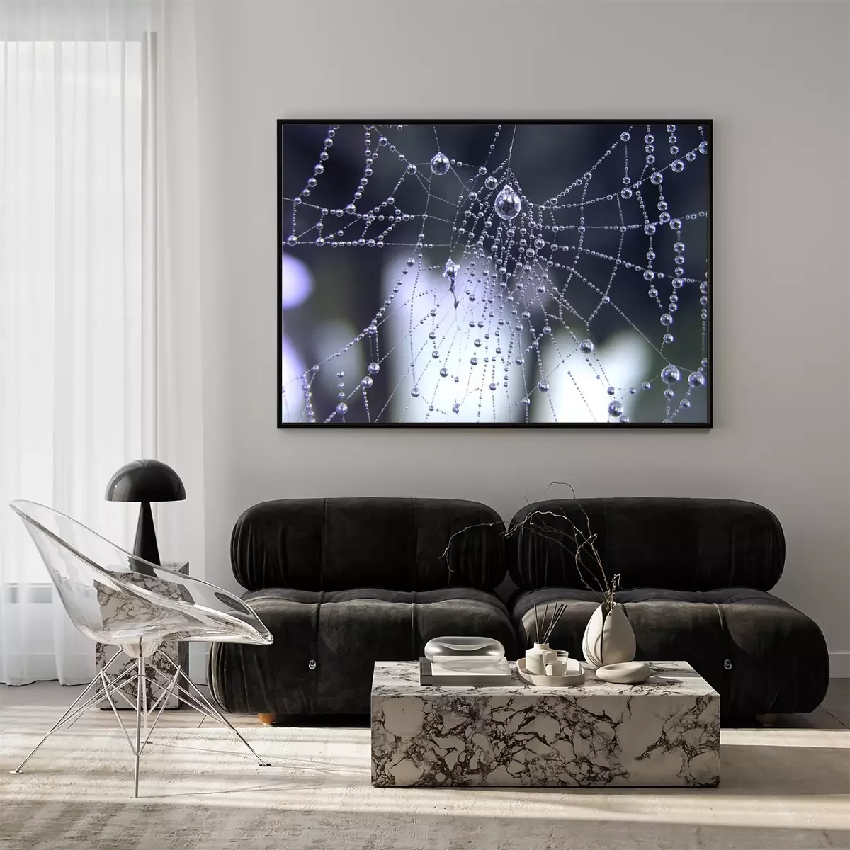 Poster: Spinneweb in de dauw