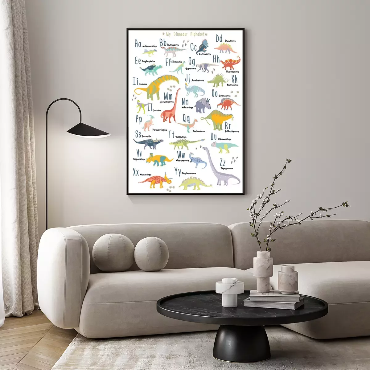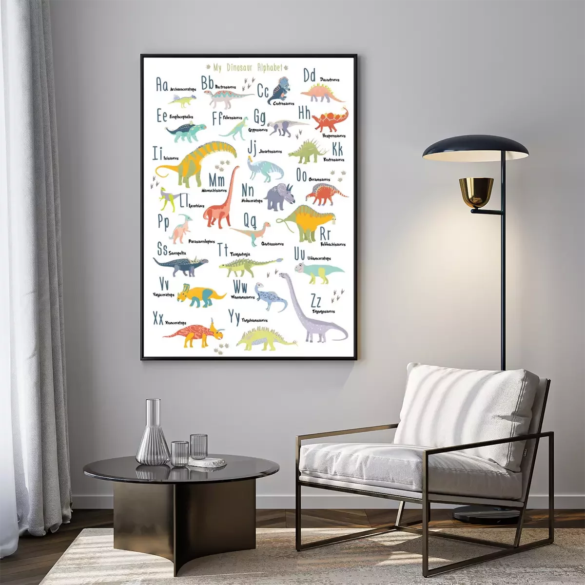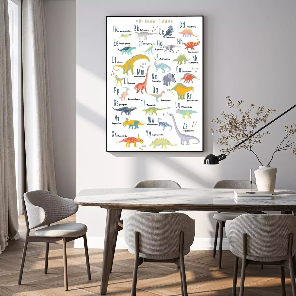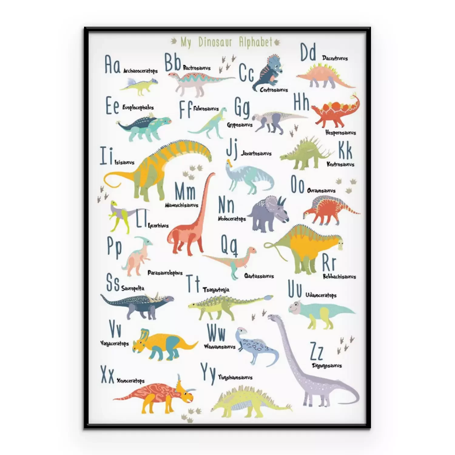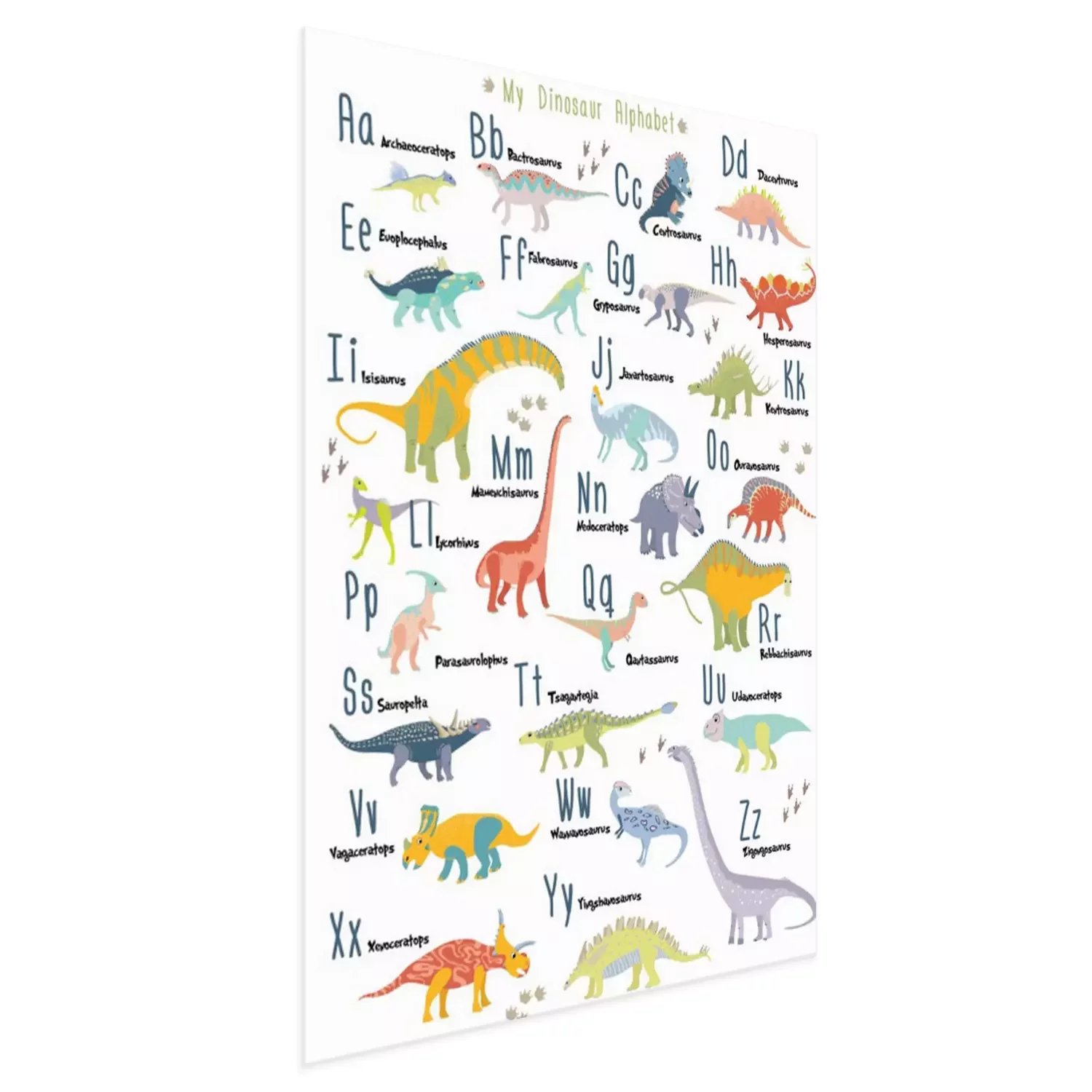 Poster: Sprookjesachtig dinosaurus kinderalfabet