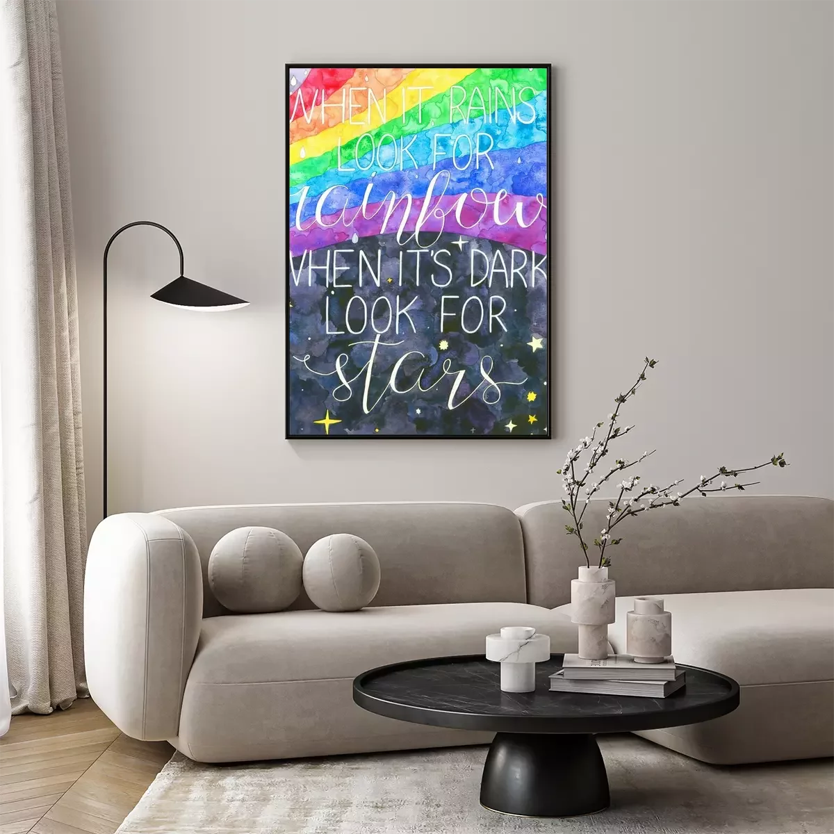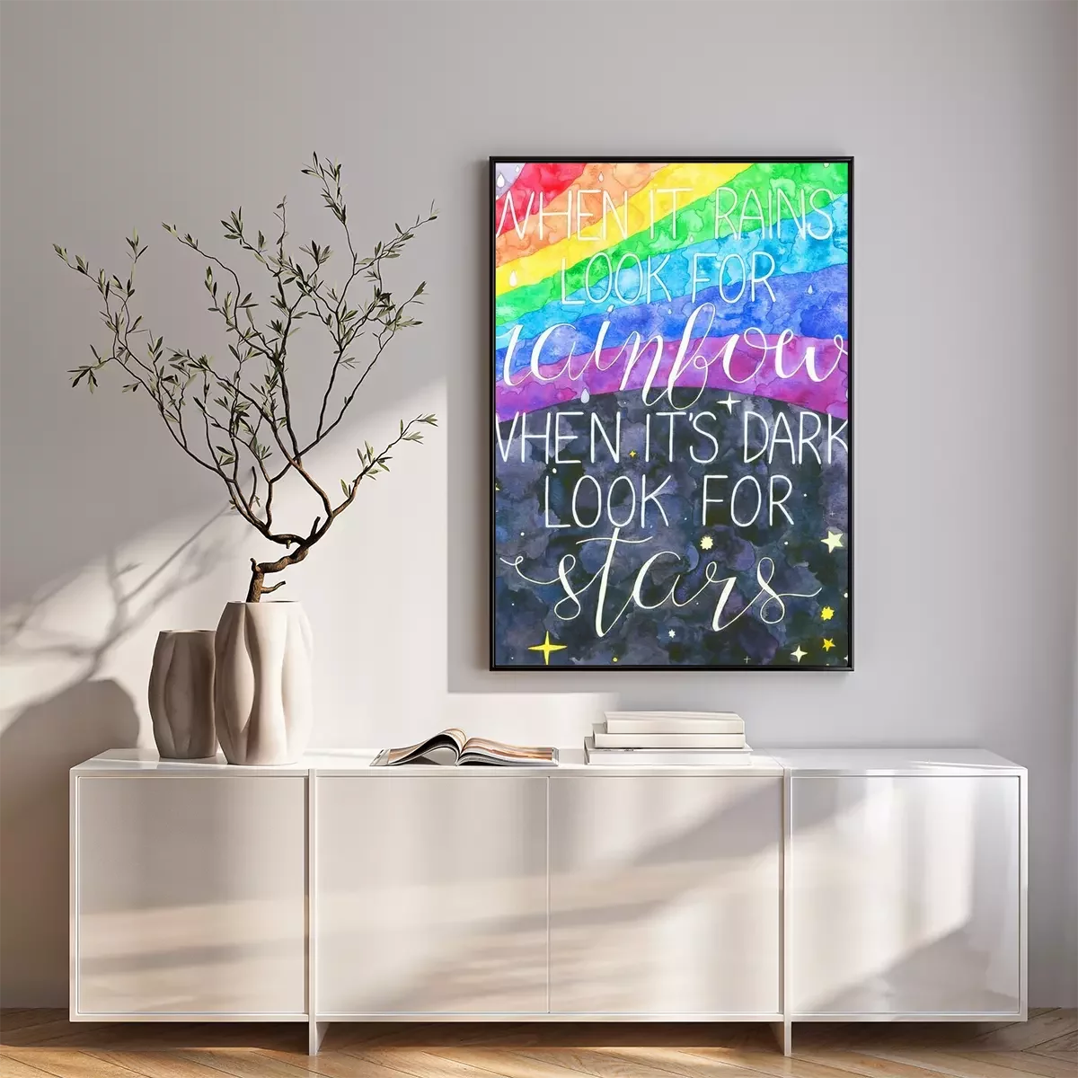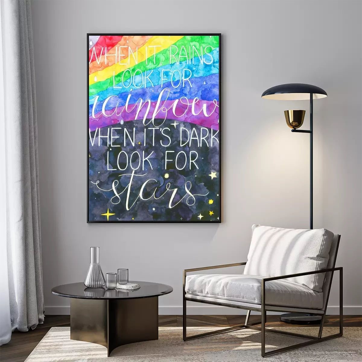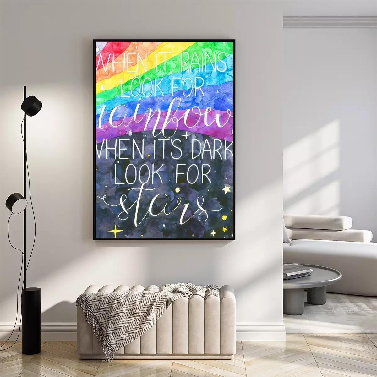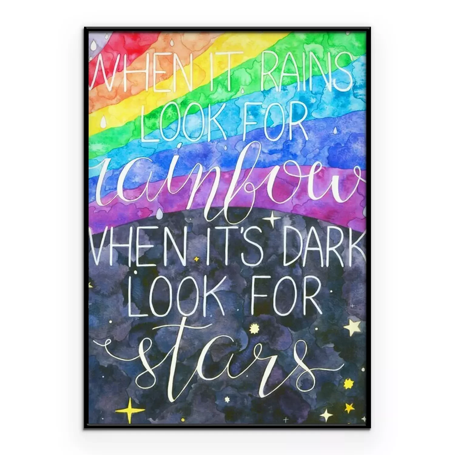 Poster: Sprookjesachtige achtergrond met regenboog en typografie