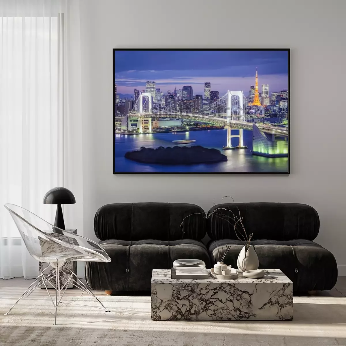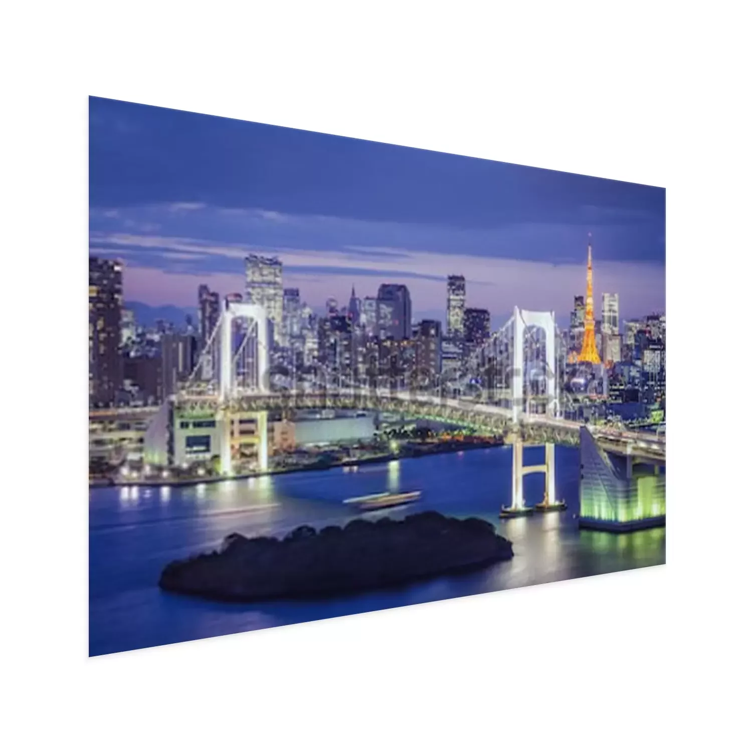 Poster: Stadsgezicht en brug in Tokio