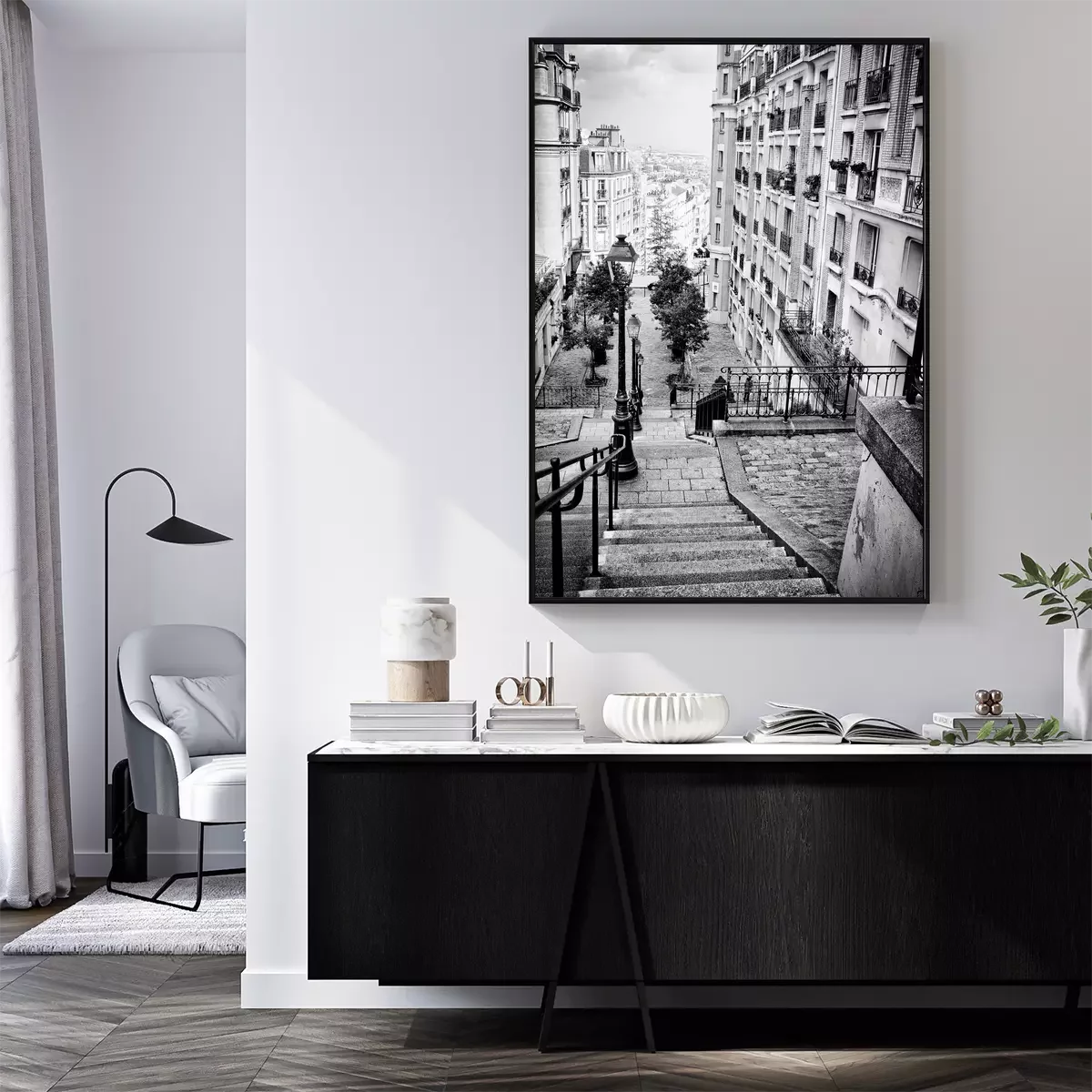 De standaardposter wordt gedrukt op papier met een gramgewicht van 200 g/m², terwijl de premiumposter wordt gedrukt op papier met een hoger gramgewicht van 300 g/m² en een zeer hoge resolutie van 1440 dpi biedt.