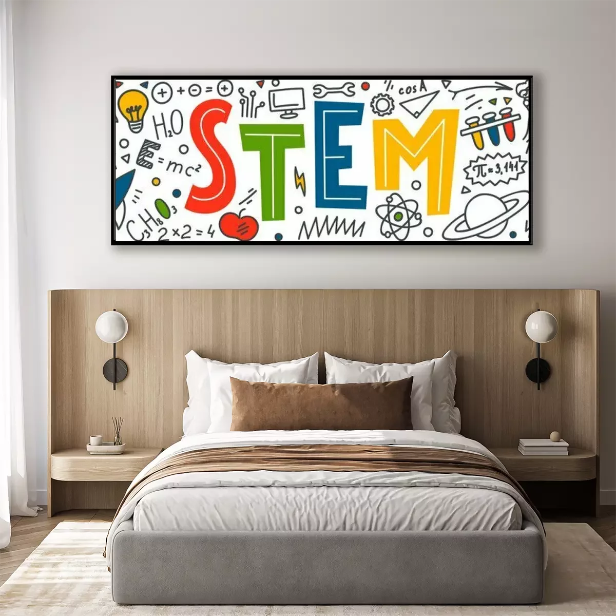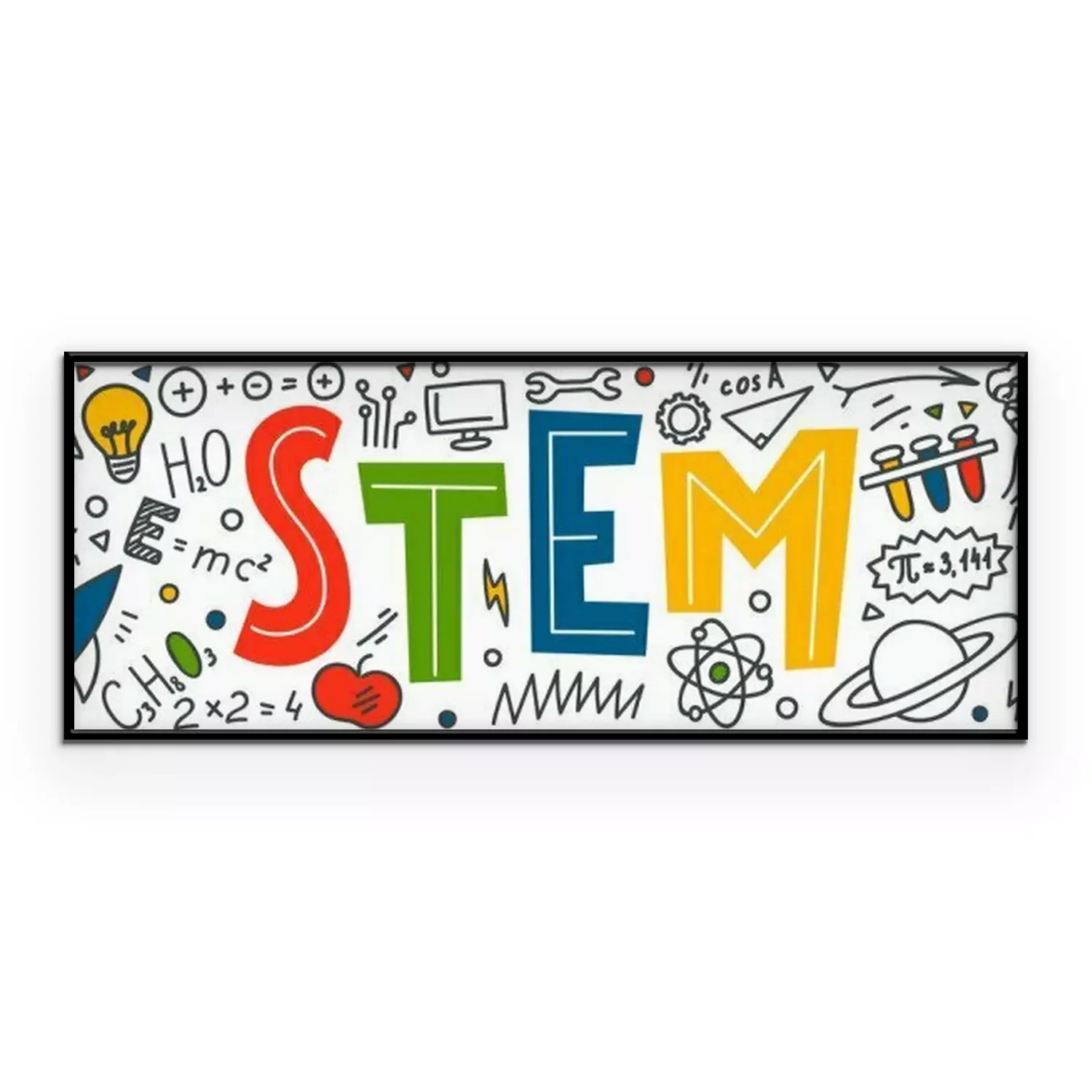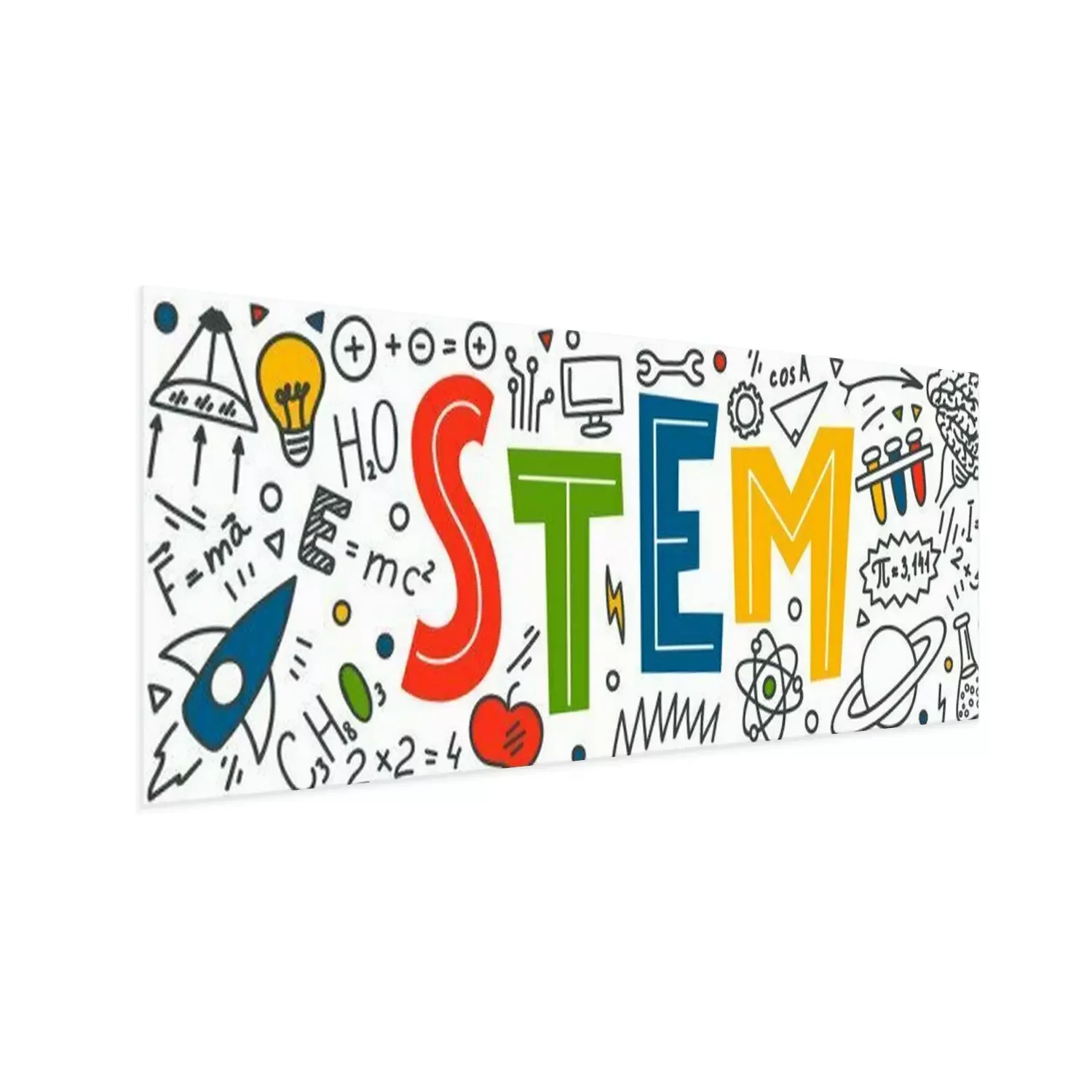 Poster: STEM. Science, technology, engineering, mathematics doodles.